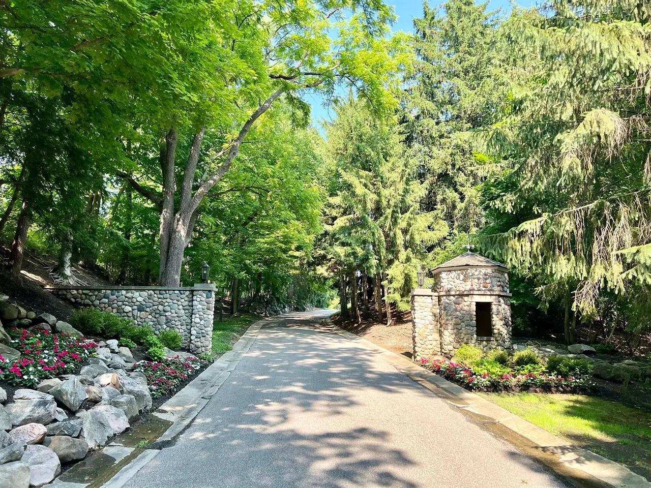 Grand estate situated on 1.47 acres at the very end of secluded, private Woodlynne Drive. Meander down the tree lined drive off of Bingham Road, to one of the most exclusive streets in town! Woodlynne Drive is ten, estate sized homes all on acre+ parcels. Wooded lot with lush landscaping flanking the driveway, providing complete privacy. Circular driveway, all brick exterior & cedar shake roof. Quality construction reflected in the details throughout. 10’ ceilings on the entry level, extensive crown molding, trim detail and hardwood floors. Solid wood front door. A true entertainer's home with the bar accessible from the foyer to serve guest drinks upon entry! 12’ ceiling in the great room with a floor to ceiling Fieldstone fireplace, flanked by floor to ceiling windows. Gourmet kitchen featuring quartzite counters, stainless steel farmhouse sink, Sub-Zero, Wolf gas range, convection oven, microwave & warming drawer and Bosch dishwasher. Breakfast nook door to back patio. Butler’s pantry with access to the bar and adjacent dining room. Stately wood paneled library, marble fireplace, built-in bookshelves & desk. Living room French doors opening to the screened in porch with beadboard ceiling. Two granite half baths on the entry level. Large primary suite, 12’x18’ walk-in closet, marble bathroom. Bedroom suite, and Jack-and-Jill bedrooms. 600 SqFt bonus room above the garage perfect for a home theater, kids playroom or exercise room. Daylight lower level, large rec room, wet bar, full bath, fifth bedroom, two flex rooms and plenty of storage. Brick paver patio. Wooded backyard has an 'Up North' feel! Three car side entry garage with 8’ garage doors. Garage EV charging electrical and can accommodate car lifts. Birmingham Schools: Bingham Farms Elementary, Berkshire Middle & Groves High. Very central location off Telegraph, access to major freeways. Exclusivity at its finest!