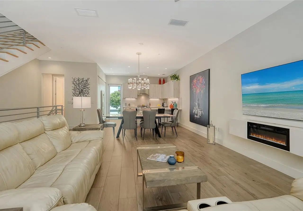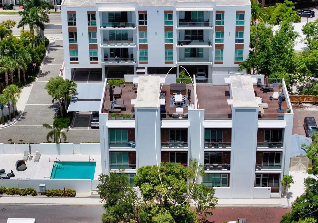 Sophisticated urban living awaits in this refined three-story townhouse with a PRIVATE ELEVATOR and expansive ROOFTOP DECK, located in the exclusive Townhomes of Orange Club in downtown Sarasota. Just steps from the historic Burns Court district and the city's vibrant Bayfront, this stylish residence offers 2,300 SF of thoughtfully designed living space, including 3 bedrooms each with their own ensuite bathroom. The private rooftop deck is a true sanctuary featuring a jacuzzi hot tub, outdoor kitchen, privacy wall, and 608 SF of additional outdoor living space - perfect for relaxing or entertaining under the stars, all with captivating city views. Designer finishes throughout, soaring 10-ft smooth-finish ceilings, Low-E impact windows and doors, contemporary baseboards and casings all enhance the home's clean aesthetic. A private two-car garage opens to a welcoming foyer and a guest bedroom with ensuite bath on the first level. The second floor is designed for effortless entertaining, with an open-concept great room, east- and west-facing balconies with frameless glass railings for unobstructed views, powder room, and a gourmet kitchen featuring imported Italian cabinetry, quartz countertops, and Jenn-Air stainless steel appliances, including a six-burner gas range. Upstairs, the third floor hosts a serene primary suite and a spacious second bedroom, both with ensuite baths and private balconies. A laundry closet with full-size washer and dryer adds convenience. Residents of Orange Club enjoy a secure, upscale community with surveillance cameras, a heated pool, and a sun lounge area. Located in the heart of Sarasota, you're just moments from the city's best, including a thriving arts and culture scene, award-winning dining, boutiques, nightlife, farmers market, and year-round festivals. This is downtown Sarasota living at its finest.