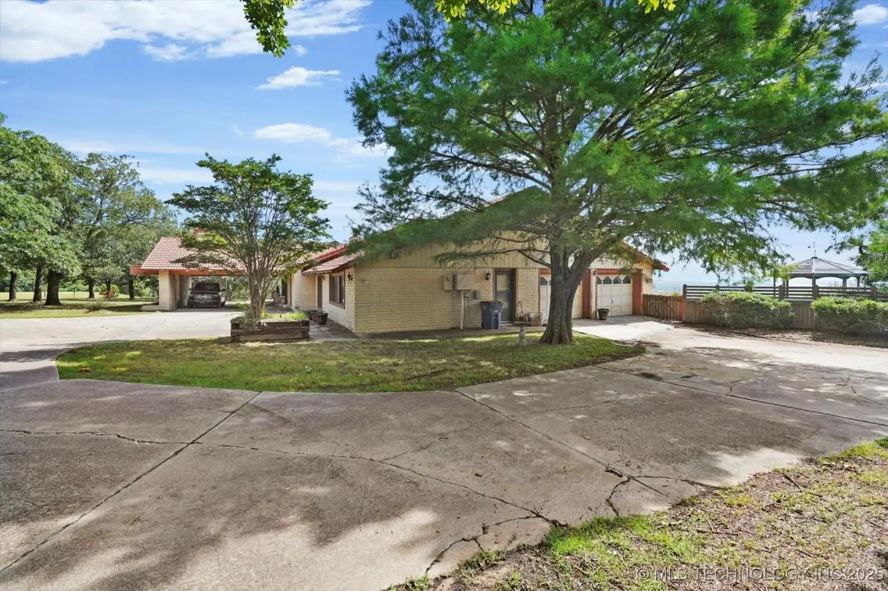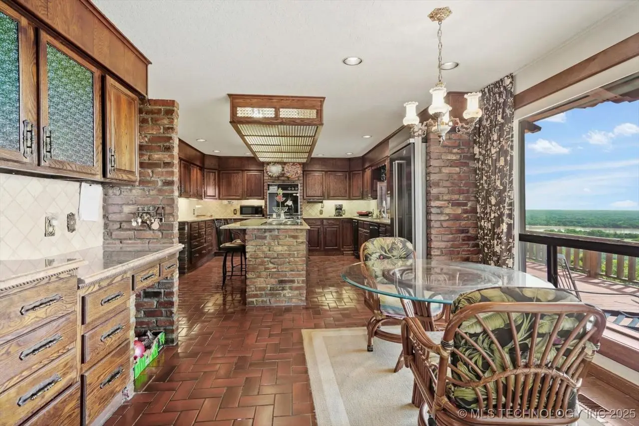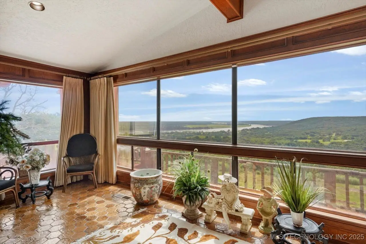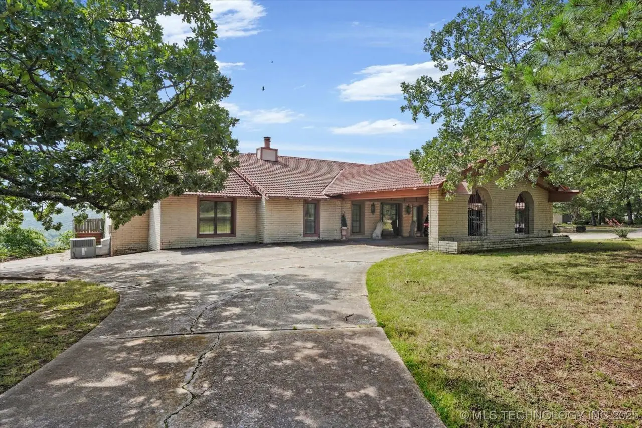 This isn't just a home-it's a retreat. Perched high on a hill, this property offers breathtaking views and unmatched tranquility. From the expansive back deck, enjoy a front-row seat to nature's beauty, with frequent wildlife sightings and a haven for birdwatchers. Whether you're taking a peaceful moment to admire the Arkansas River on the horizon or cooling off with an evening swim in the resort-style diving pool, every day here feels like a getaway. This vintage ranch-style residence was built to last, with solid steel and concrete construction and a full tile roof. Inside, you'll find timeless character throughout-arched doorways, hand-carved wood doors, built-ins, and rich wood accents. The brick-walled kitchen blends classic charm with tasteful updates, offering a cozy yet functional space to gather. For lovers of well-preserved vintage design, this home is a rare gem. And for those with a more modern vision, the possibilities for transformation are endless. With million-dollar views and a foundation built for generations, this is a truly special place to call home.