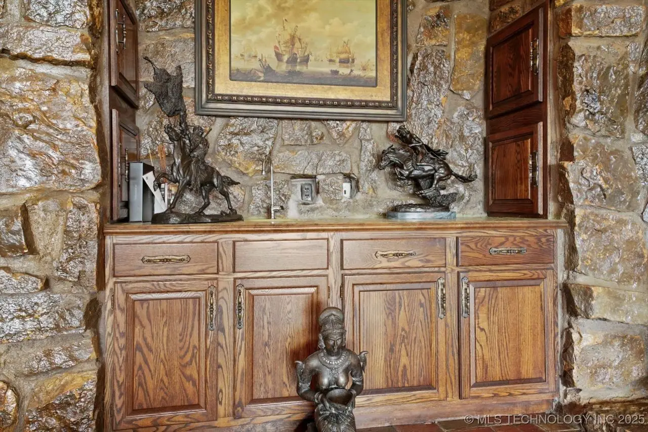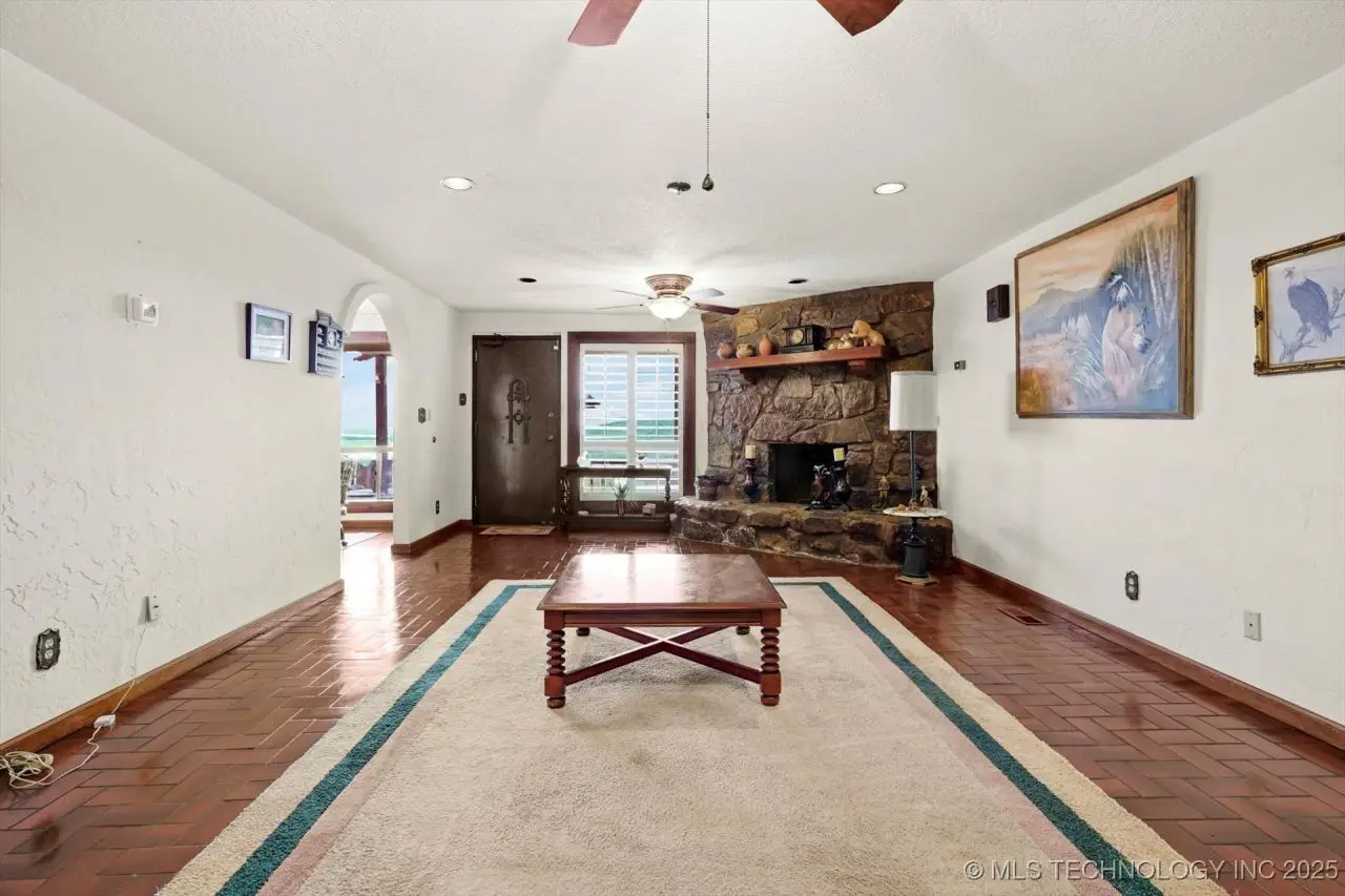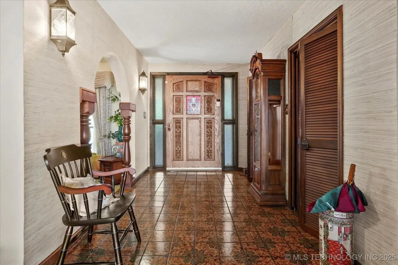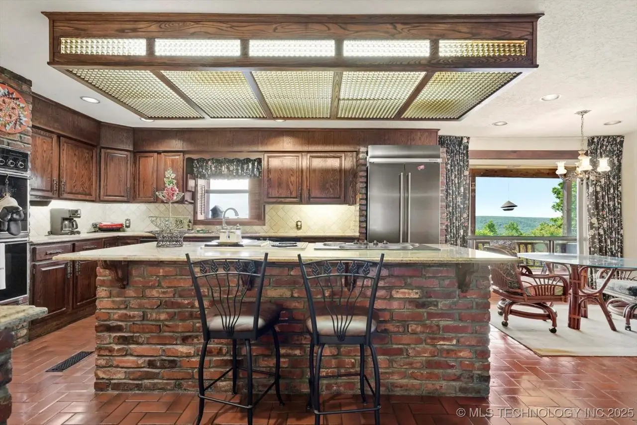This isn't just a home-it's a retreat. Perched high on a hill, this property offers breathtaking views and unmatched tranquility. From the expansive back deck, enjoy a front-row seat to nature's beauty, with frequent wildlife sightings and a haven for birdwatchers. Whether you're taking a peaceful moment to admire the Arkansas River on the horizon or cooling off with an evening swim in the resort-style diving pool, every day here feels like a getaway. This vintage ranch-style residence was built to last, with solid steel and concrete construction and a full tile roof. Inside, you'll find timeless character throughout-arched doorways, hand-carved wood doors, built-ins, and rich wood accents. The brick-walled kitchen blends classic charm with tasteful updates, offering a cozy yet functional space to gather. For lovers of well-preserved vintage design, this home is a rare gem. And for those with a more modern vision, the possibilities for transformation are endless. With million-dollar views and a foundation built for generations, this is a truly special place to call home.