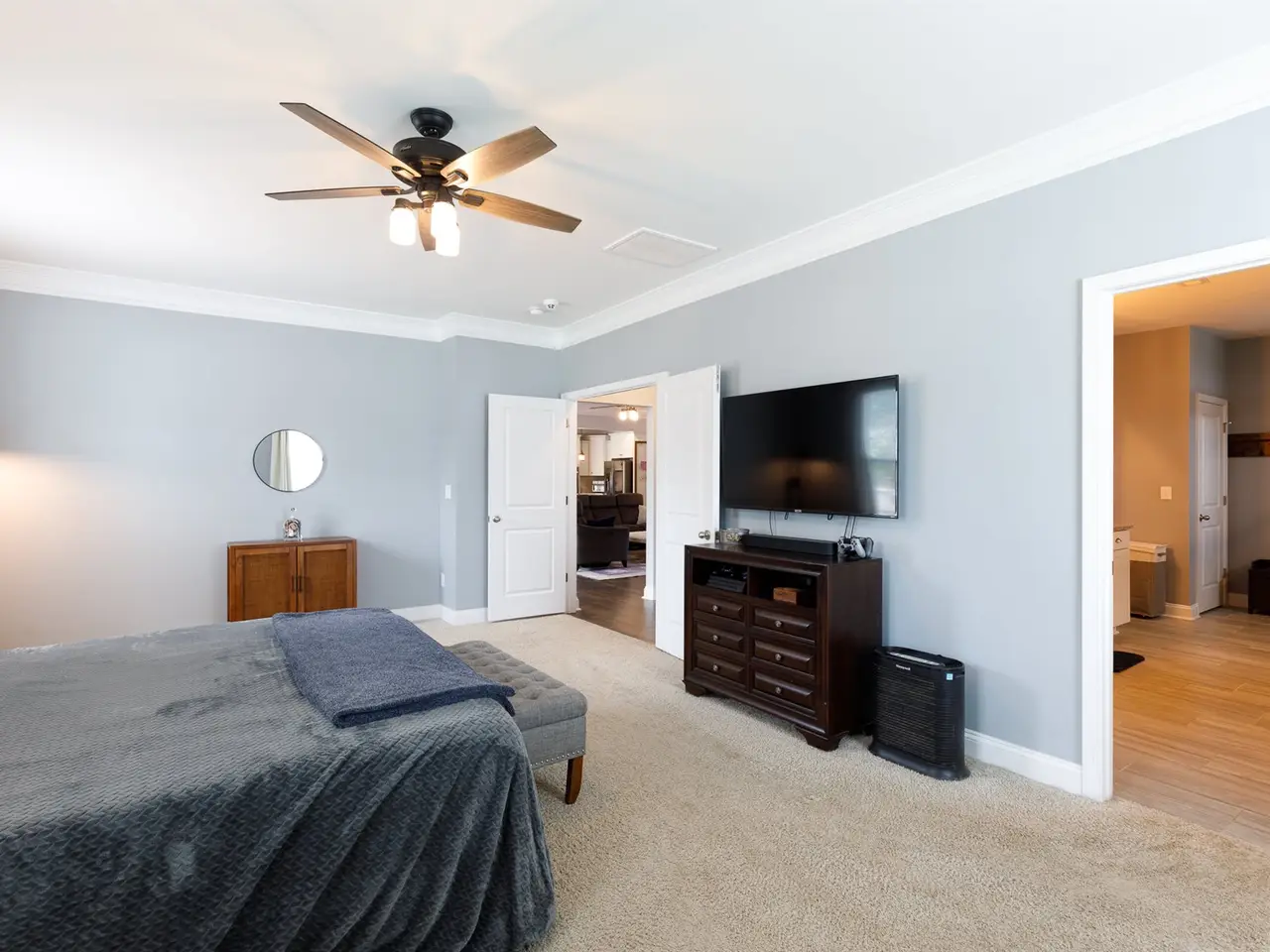 Located in the desirable Cypress Point subdivision in Lake Wylie, this stunning 5-bedroom, 4.5-bath home offers a spacious and functional layout with high-end finishes throughout. The main level features a luxurious primary suite with dual vanities, a tiled shower, and a walk-in closet, plus a secondary bedroom with a private ensuite?perfect for guests or multi-generational living. The open-concept main living area boasts a chef's kitchen with quartz countertops, gas cooktop, double wall ovens, and a walk-in pantry. Upstairs, a generous bonus room offers flexible living space. Step outside to a private backyard retreat complete with a covered rear porch, paver patio, firepit, and a resort-style pool with integrated spa. Additional highlights include an oversized side-load 2-car garage, drop zone, and both front and rear porches. Cypress Point amenities include a clubhouse, pool, fitness center, game court, picnic area, and playground. This one checks all the boxes!