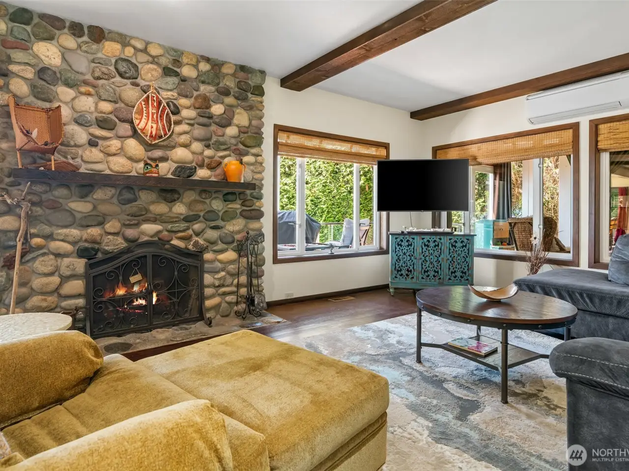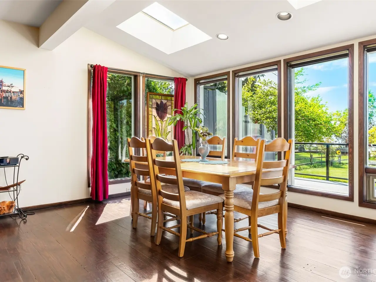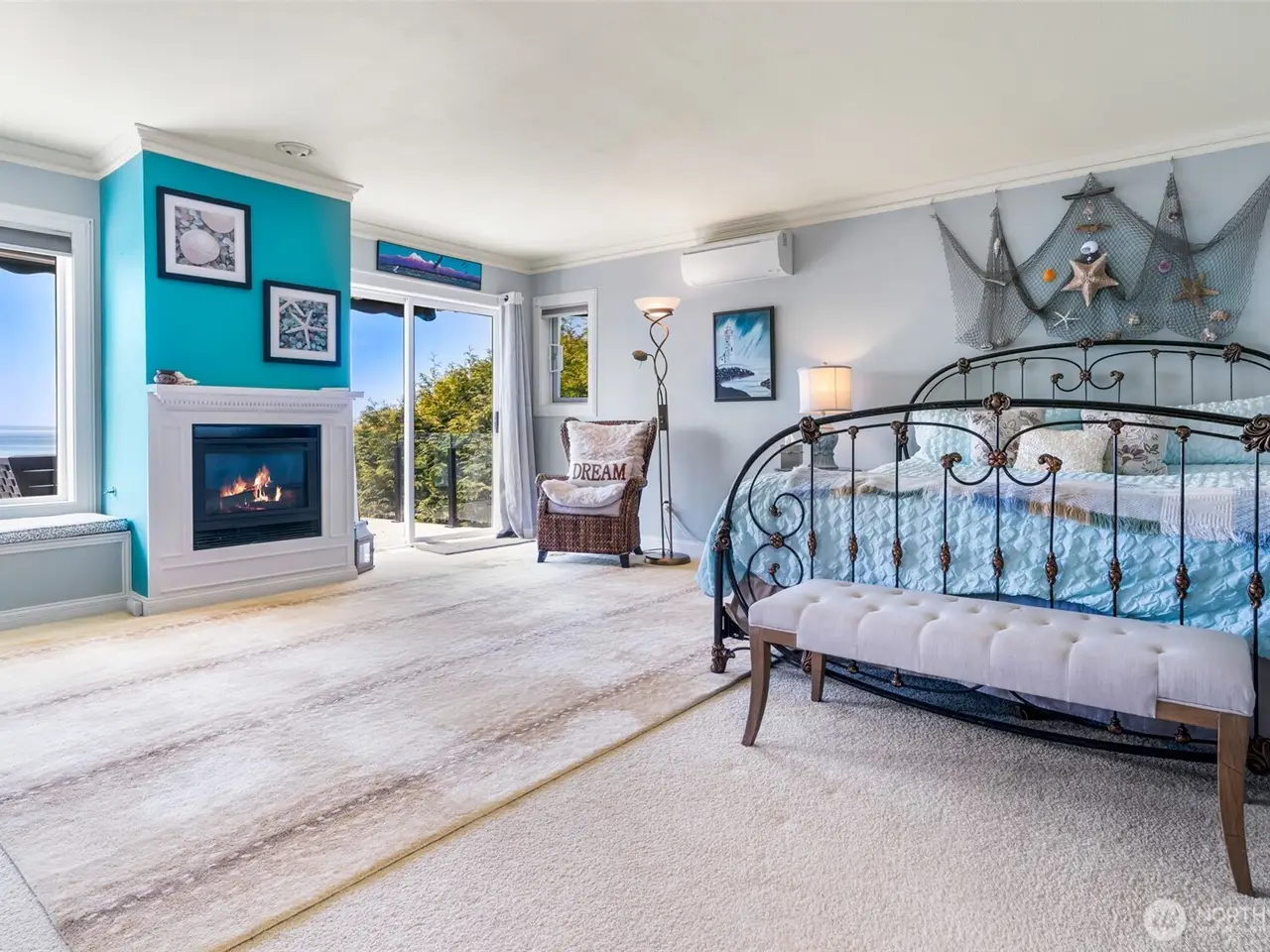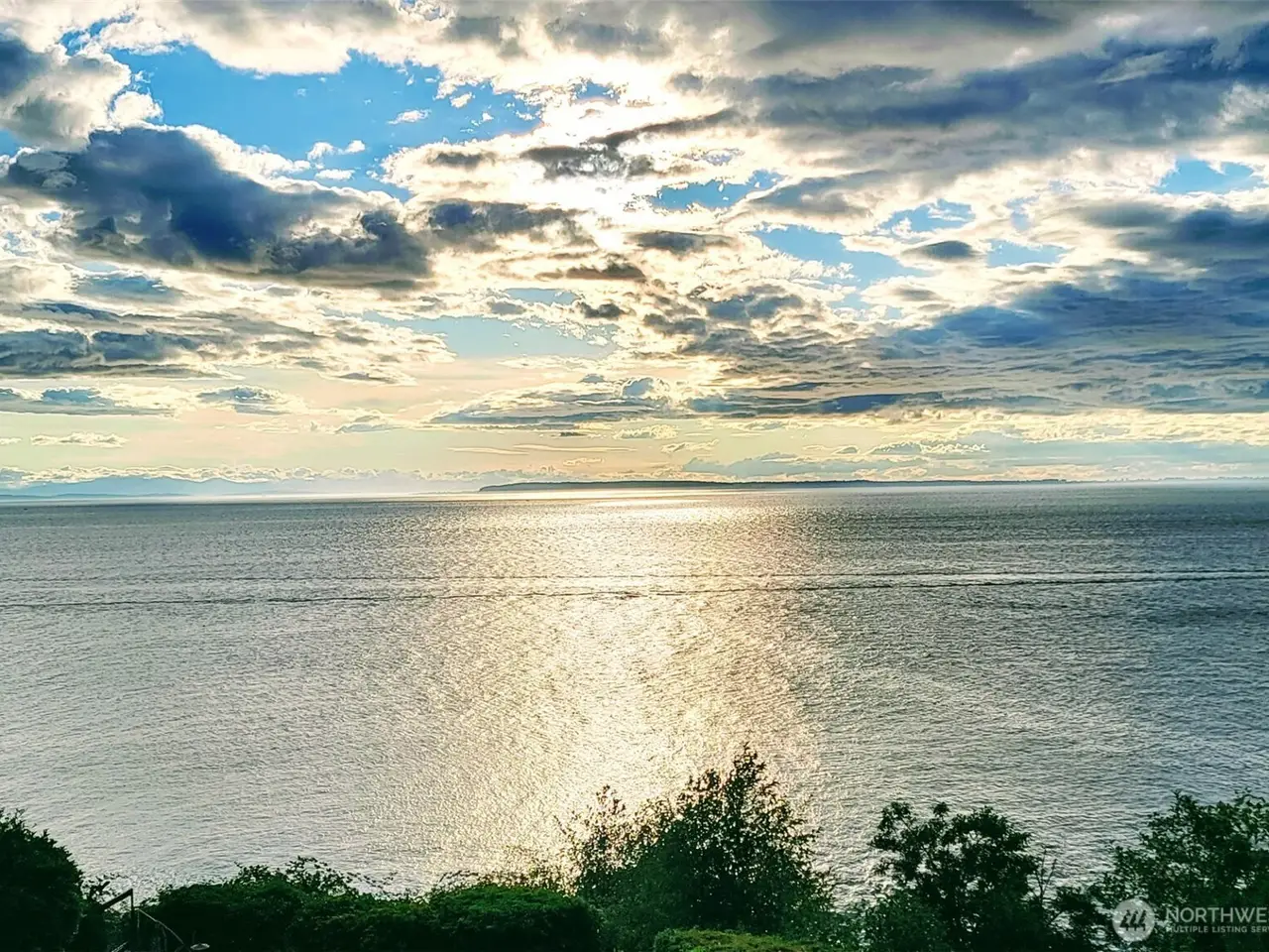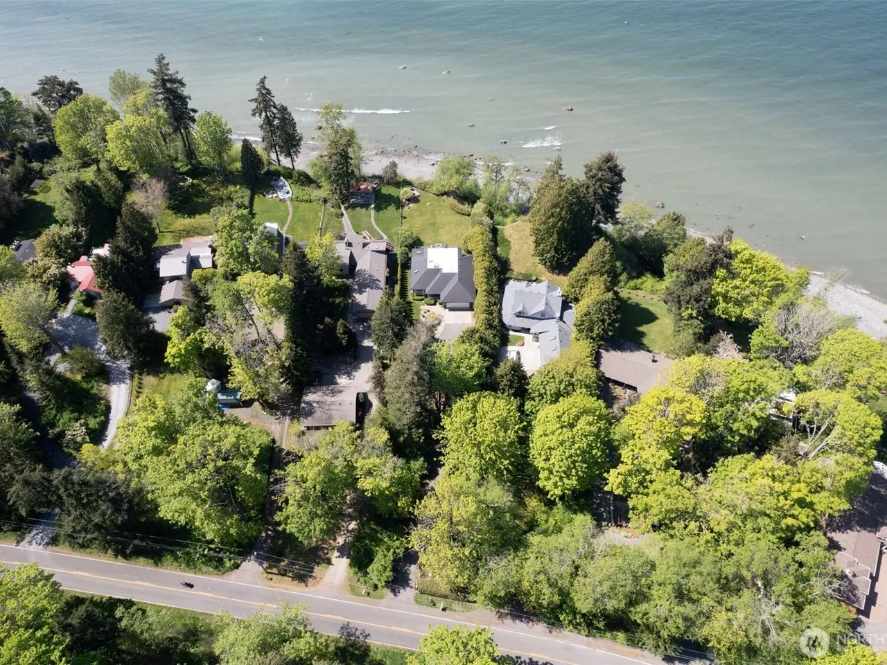 Waterfront Dream Home with picturesque sunset views across 850 ft. of gorgeous view decks! Grand river rock fireplace highlights impressive interiors: 3 comfortable bedrooms, water view kitchen, dining sunroom, vaulted ceiling entry, yoga room. Elegant master suite w/ fireplace, generous walk-in closet, extra bonus space, private decks. Skylights/picture windows infuse natural light. Minutes from Bellingham or White Rock (BC), a stunning waterfront drive carries you into this high-caliber enclave of cottages & handsome estates. Nestled in the trees, just below towering eagle trees, this tranquil private setting is a quiet oasis from noise. Edged w/ green forest; generous sunshine for flowers & outdoor living. Low taxes. Near Semiahmoo Golf.