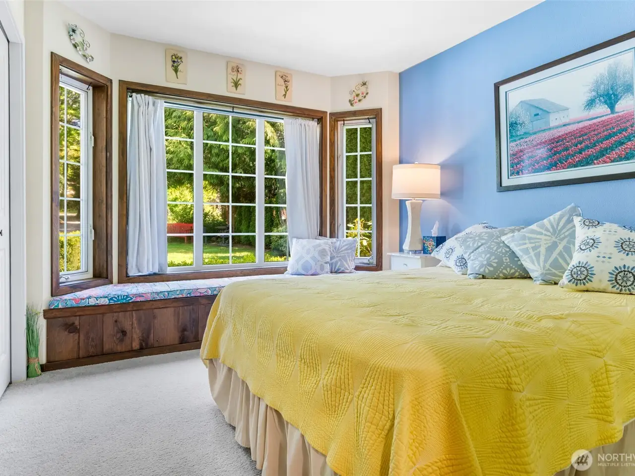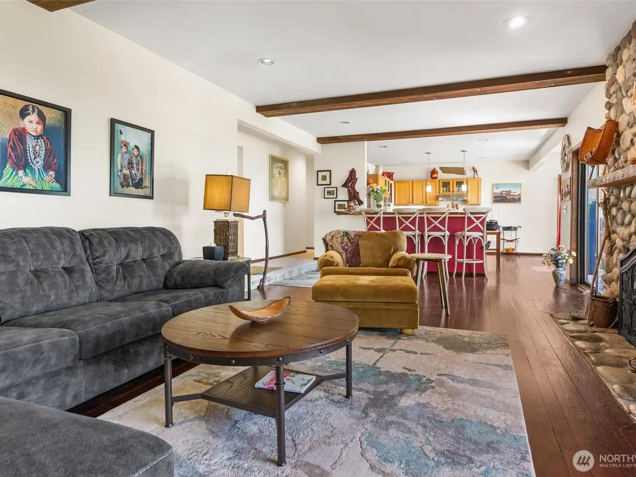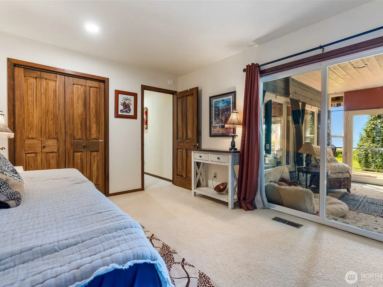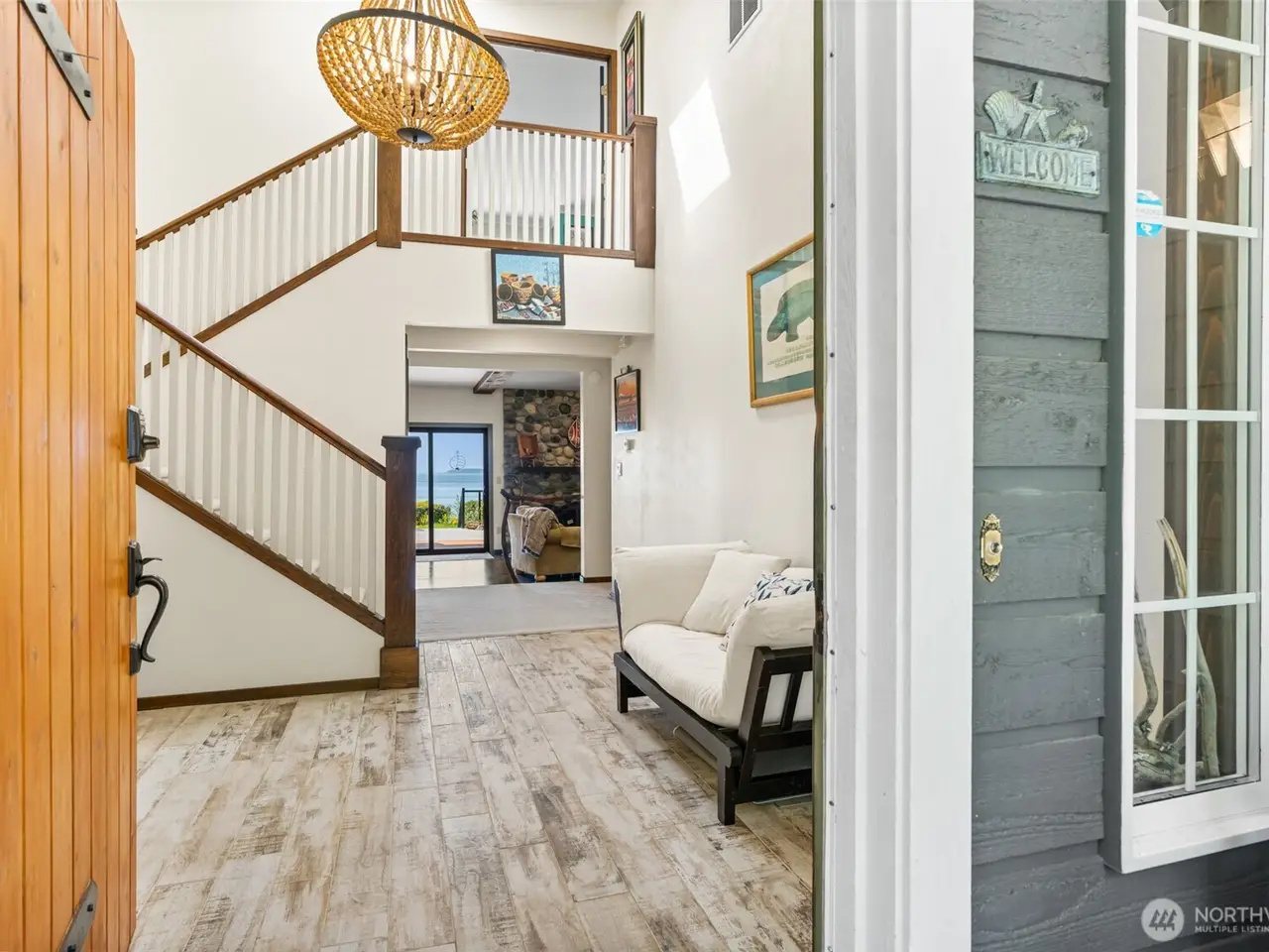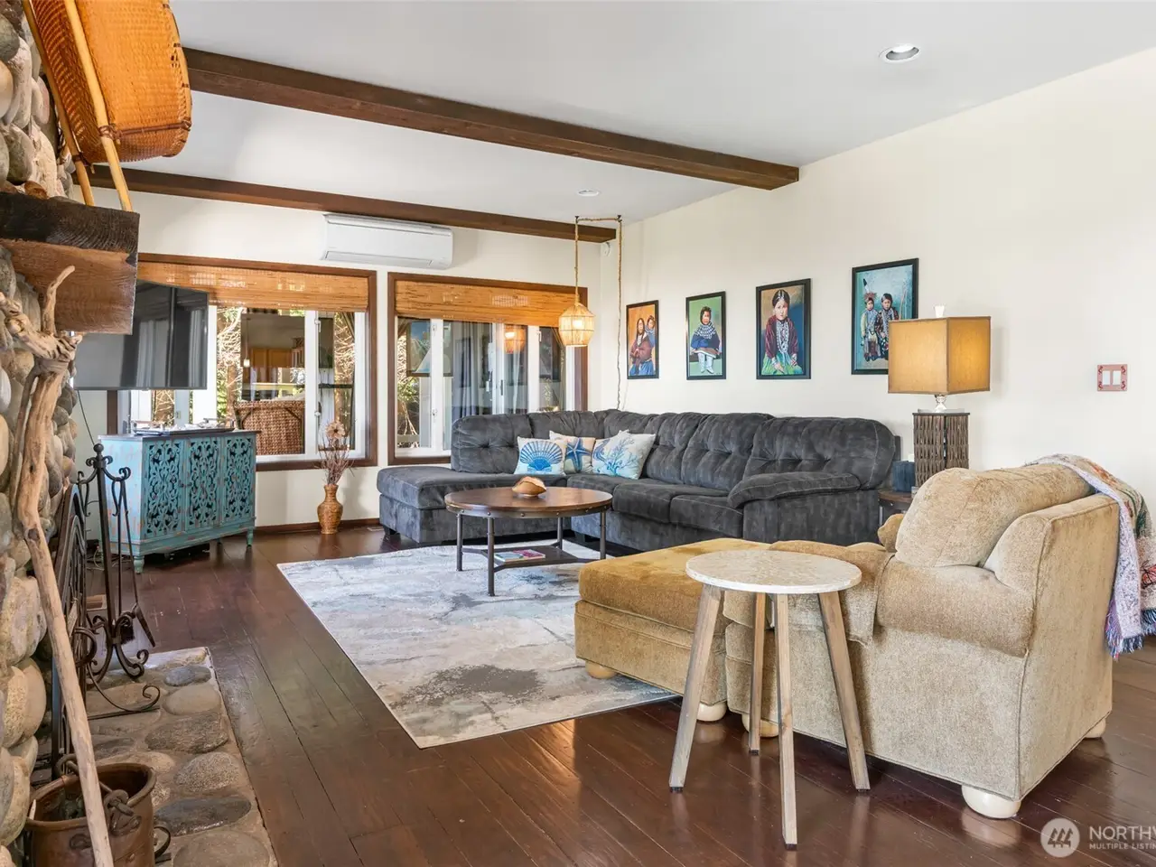 Waterfront Dream Home with picturesque sunset views across 850 ft. of gorgeous view decks! Grand river rock fireplace highlights impressive interiors: 3 comfortable bedrooms, water view kitchen, dining sunroom, vaulted ceiling entry, yoga room. Elegant master suite w/ fireplace, generous walk-in closet, extra bonus space, private decks. Skylights/picture windows infuse natural light. Minutes from Bellingham or White Rock (BC), a stunning waterfront drive carries you into this high-caliber enclave of cottages & handsome estates. Nestled in the trees, just below towering eagle trees, this tranquil private setting is a quiet oasis from noise. Edged w/ green forest; generous sunshine for flowers & outdoor living. Low taxes. Near Semiahmoo Golf.