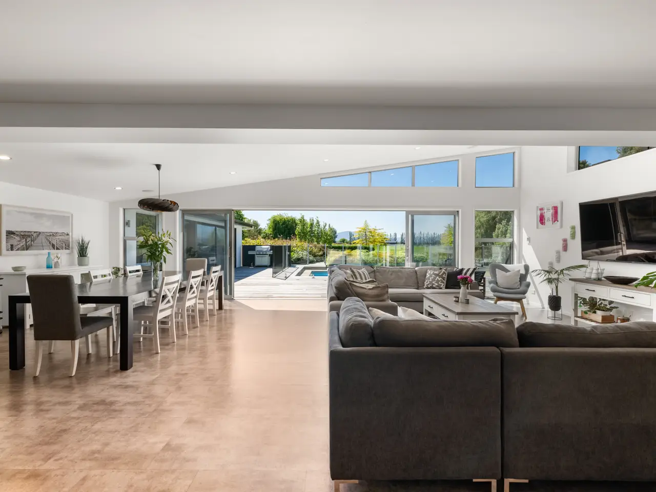 Flooded with natural light, the home offers seamless indoor–outdoor living, effortlessly blending relaxed daily life with refined entertaining. At its heart, a striking hardwood (Kwila) deck frames a resort-style pool and spa, set against manicured lawns and breathtaking rural views. An all-seasons pool room makes the most of Marlborough’s celebrated climate, while a private sauna provides the perfect retreat on cooler evenings.