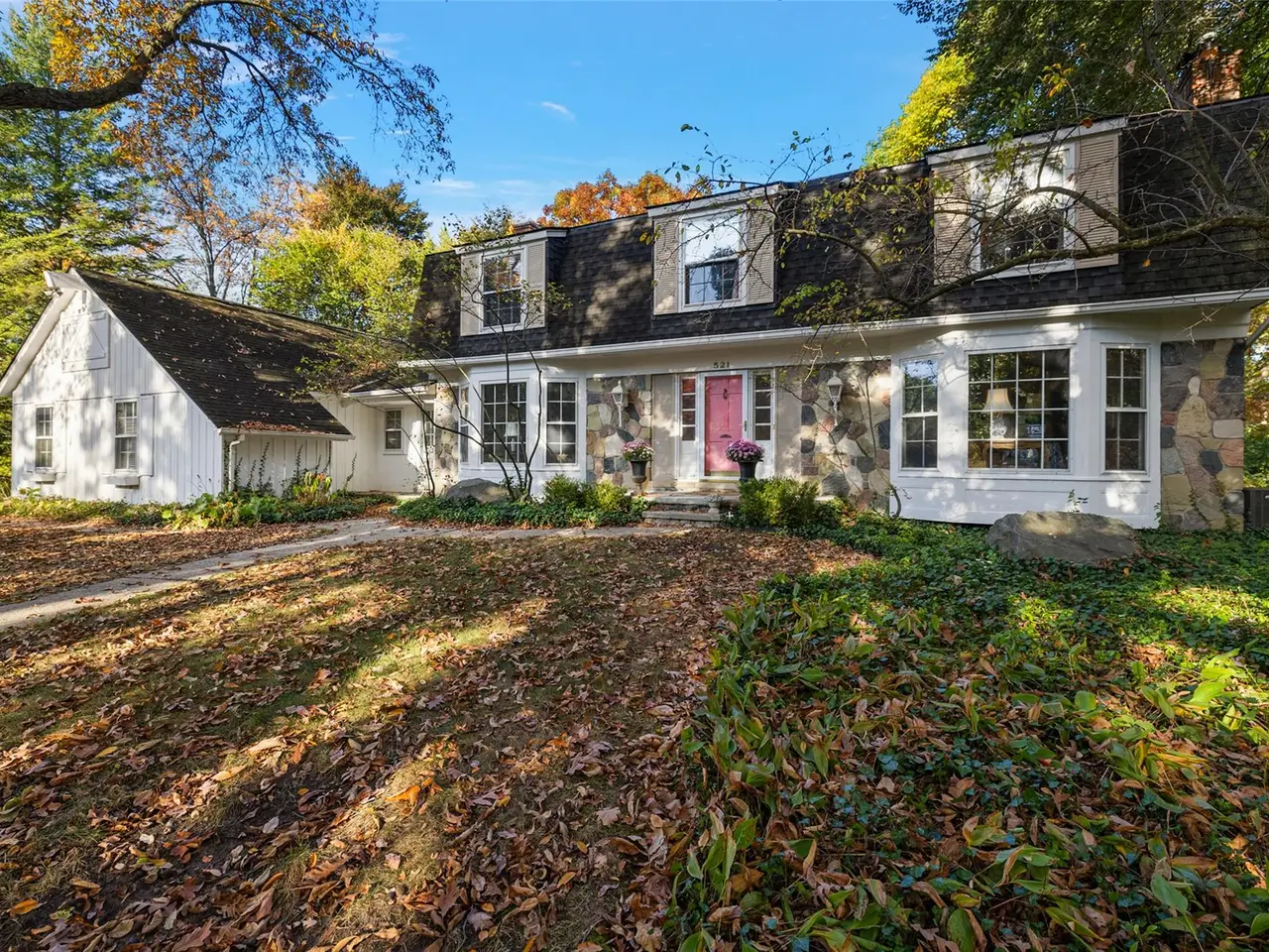 Welcome to this amazing opportunity to own over an acre in Bloomfield Hills! This Vermont-style, tastefully appointed home tucked away in a storybook setting, is a true classic loaded with character and charm, showcasing four fireplaces, an incredible floor plan, and a one-of-a-kind Cotswold fieldstone fireplace imported from England in the walk-out lower level. Elegance and functionality abound in this thoughtfully designed home, featuring a gracious foyer with wainscoting and crown moldings throughout. Two sets of bay windows on each side of the home welcome and invite sunlight and stunning views. The formal living room with fireplace flows into the adjacent dining room, where views of the vast grounds will delight. The rolling lawn and brick terrace including lighting system in the flower beds, allow ease in maintenance as well as entertaining. The bright kitchen with custom cabinetry, granite center island, two pantries, serving area, cafe door, and pocket doors are ideal for hosting. The family room also offers remarkable views, built-in bookshelves, bay window and impressive 5-foot fireplace with an incredible brick surround. Entertaining is a true pleasure in this generous family room with wet bar, beamed ceilings and wide-planked hardwood flooring, that lead to the expansive brick terrace overlooking the rolling lawn. Upstairs, five spacious bedrooms include a primary suite with cozy fireplace, vanity area, soaking tub, and separate shower. Additional bedrooms feature window seats and charming arched double doors connecting two of the rooms. The walk-out lower level boasts the spectacular stone fireplace, built ins and a secondary full kitchen with a gorgeous marble serving area. The lower level also includes a home office and updated full bath. The first-floor laundry/mud room also provides access to the rear yard. A 3-plus car garage completes the home. This home has endless potential for its next owners. Schedule your private tour today!