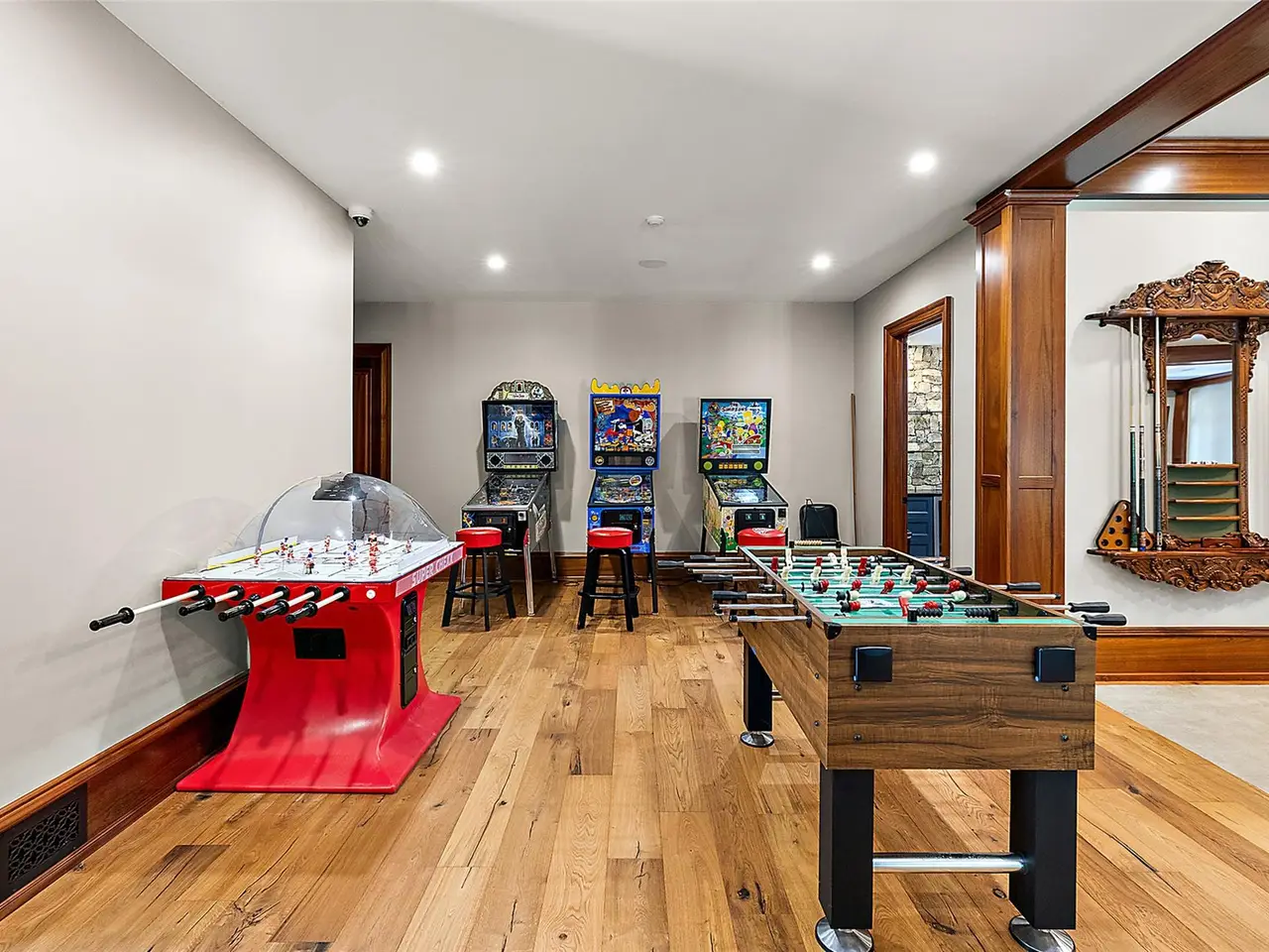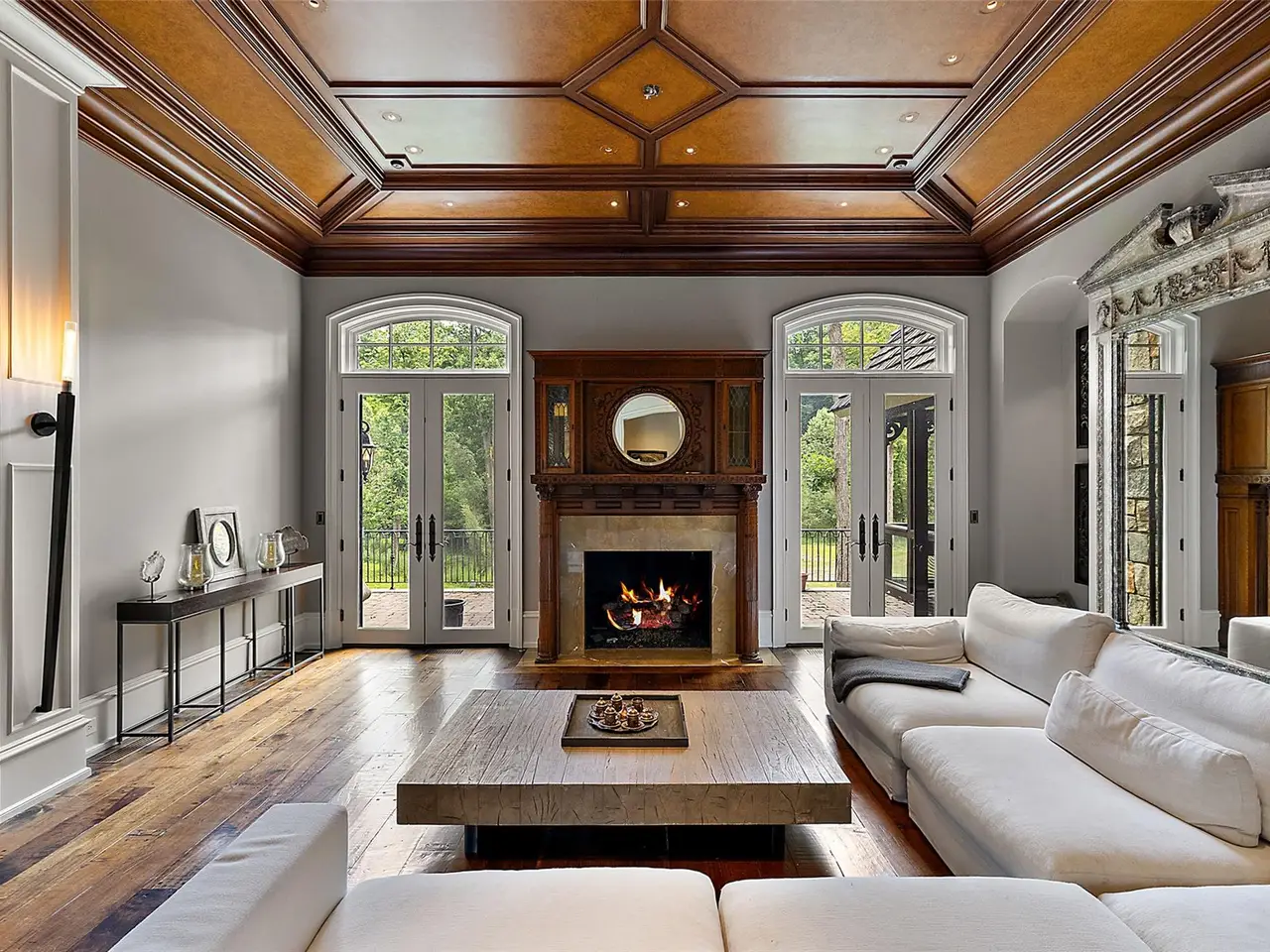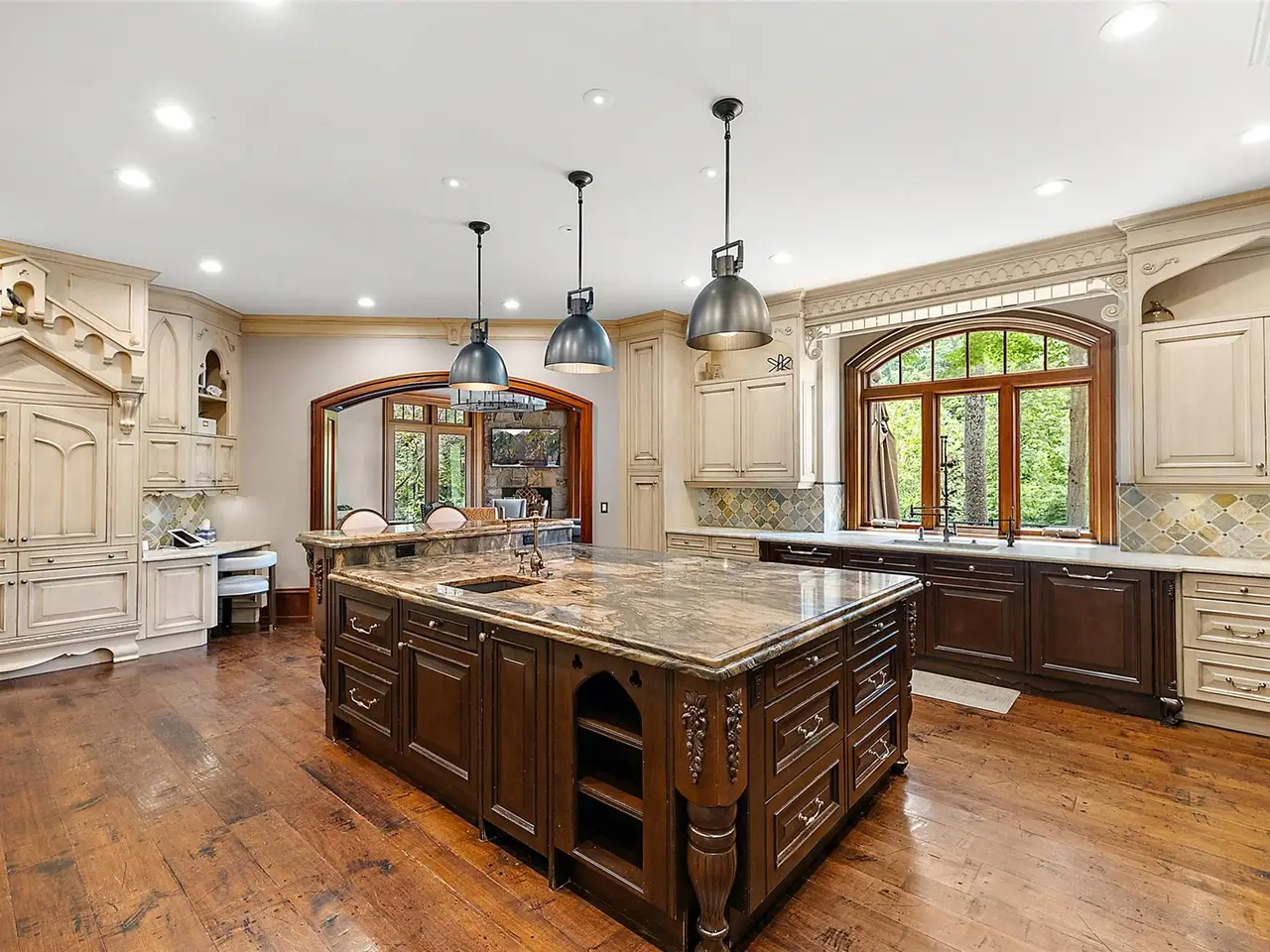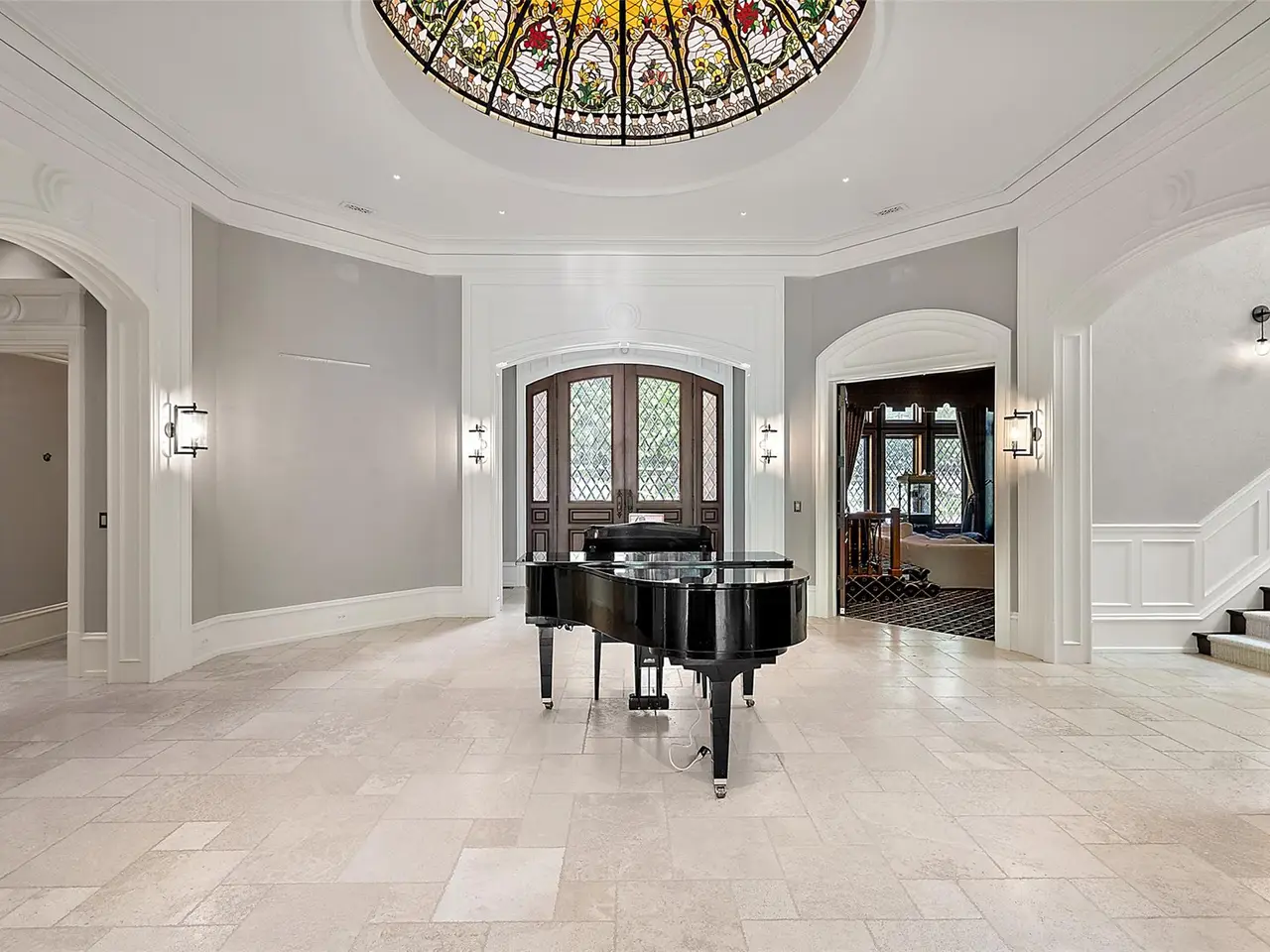 Experience luxury living at this private estate nestled along the Franklin Branch of the Rouge River. Offering over 16,000 square feet of beautifully crafted living space. Nestled on more than 10 serene acres, this property is defined by its tranquil natural surroundings, with the river gracefully winding throughout the grounds. Designed with comfort and grand entertaining in mind, the home features many amenities, including a state-of-the-art theater room and a two-story library, complete with a spiral staircase and exceptional millwork. Intricate moldings and custom woodwork are showcased throughout, reflecting superior craftsmanship at every turn. The inviting three-season room provides a peaceful spot to take in the beauty of the property, while the expansive rear patio spans the length of the home, offering panoramic views of the natural landscape. The expansive lower level is an entertainer’s paradise, boasting a huge great room, a fully equipped second kitchen, a custom bar, a stylish powder room, a game room, and a dedicated craft room. An elevator conveniently services all levels of the home. This one-of-a-kind estate offers a rare combination of privacy, elegance, and resort-style amenities in a truly picturesque setting. Recently renovated with fresh paint, new carpeting, and updated decorative features. The space has undergone a transformation.
