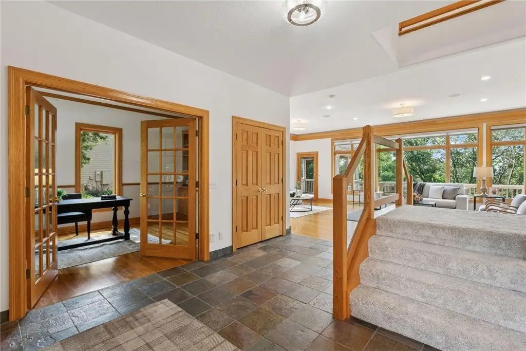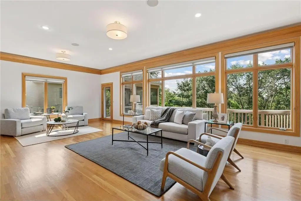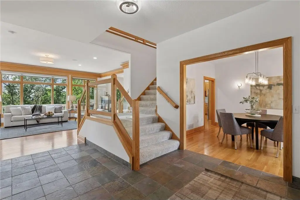 Space, privacy, and natural beauty—without leaving the city behind. This stately one-of-a-kind, custom-built home sits on 3.5 lush, wooded acres perched above the majestic Minnesota River Valley, offering stunning views, sunsets, and total serenity just 20 minutes from downtown Minneapolis. Built in 2001 and recently updated with many new improvements, the home offers an estate-like feel with understated elegance and timeless charm. It features large rooms, high ceilings, and an abundance of natural light and views through walls of oversized, south-facing windows. Inside, watch the oasis of wildlife as the birds fly high and mature trees of the sanctuary blow against the sky. The floorplan is great—efficient, yet flowing, spacious and flexible. The light and bright kitchen is recently updated with gorgeous quartz countertops, a modern backsplash, and new appliances to compliment the Wolf cooktop. The large primary ensuite is fully remodeled with a spa-like Jacuzzi tub, spacious waterfall shower, dual vanity and enormous walk-in closet. The size of the suite and treetop, atmospheric views in the summer and expansive river valley views in the winter make it uniquely special. Cozy up to the dual-sided gas fireplace—there is one on each floor. All bedrooms and laundry are conveniently located on one level. Enjoy peaceful mornings on the sunny deck, unwind in the elevated 3-season porch, or wander the Zen gardens and acreage that is your secluded retreat—or canvas. It’s a huge lot that gives you options—to expand, split, or simply enjoy the abundance of natural space. The backyard is newly fenced, landscaped, and has a freshly poured concrete patio to enjoy the sunshine and beauty with friends and family. This property is truly a private retreat and one of its kind.