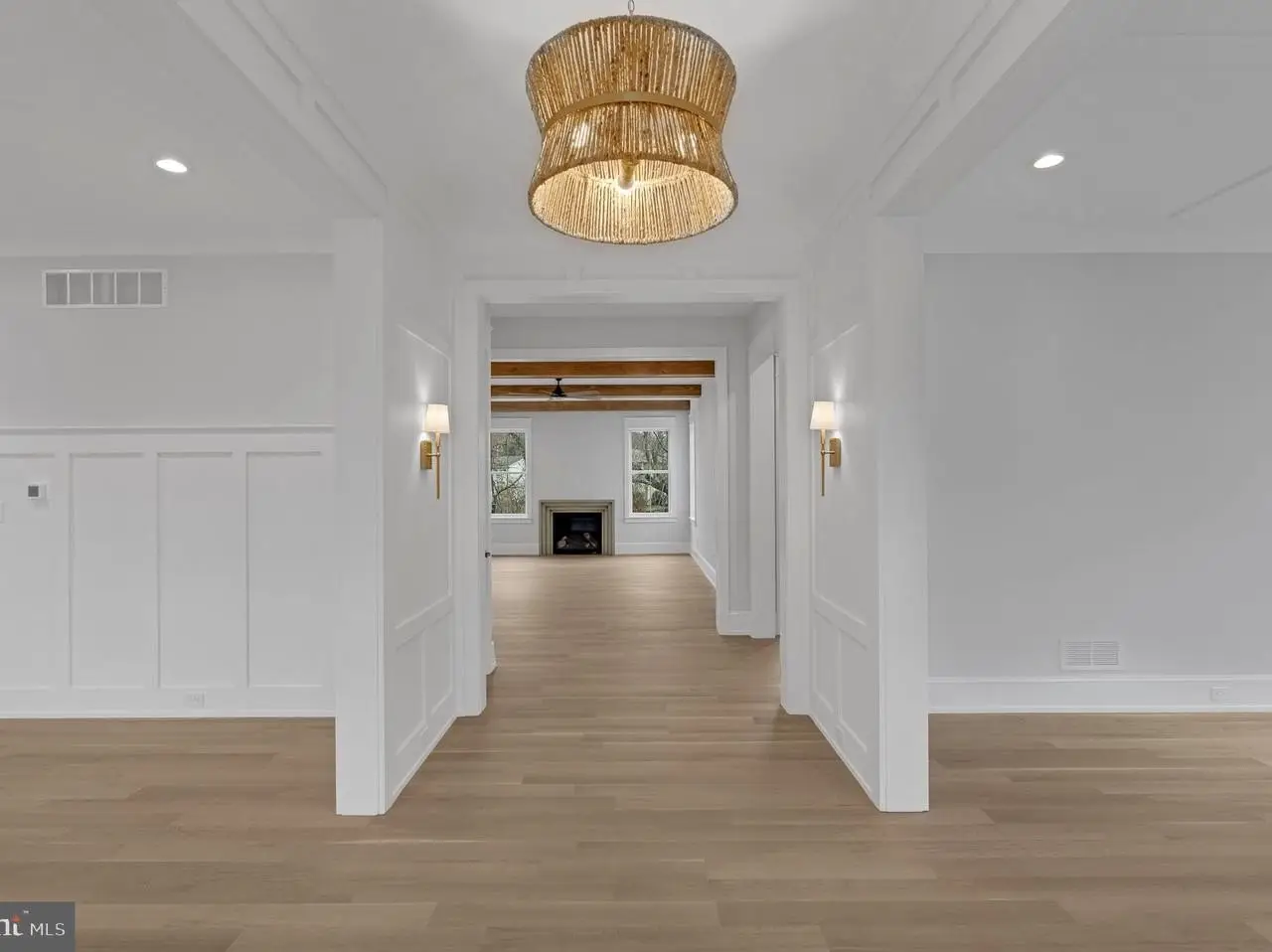 Beamed ceiling in great room