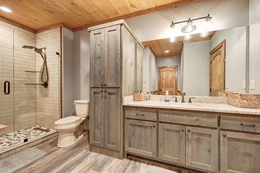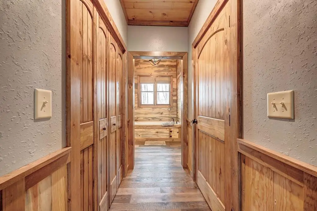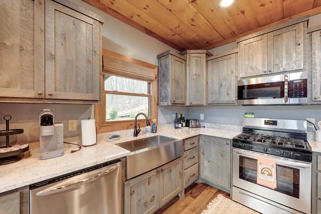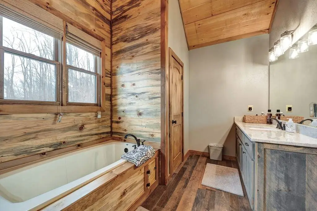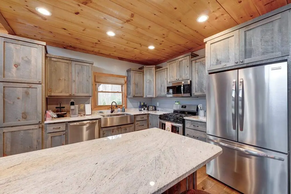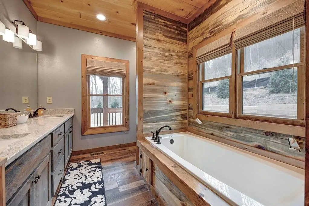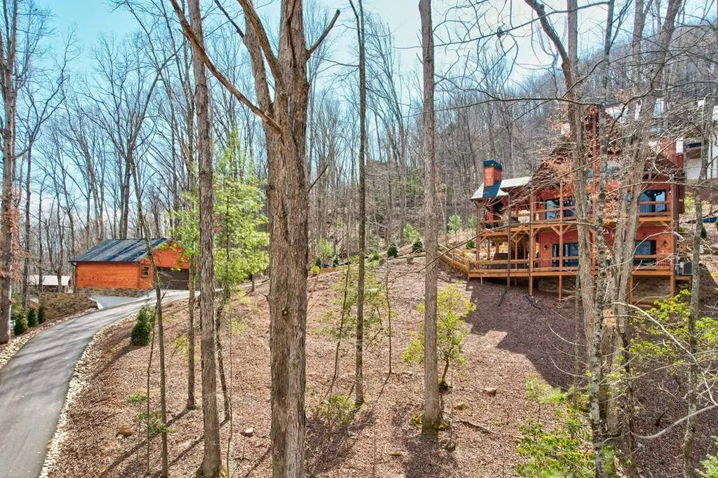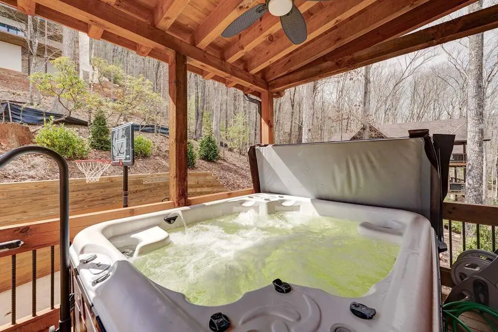 This stunning prow-front cabin features a window wall that brings the outdoors inside. The cabin offers a spacious Garage and multiple outdoor living areas, including a Party Porch with a wood-burning fireplace, a Hot Tub porch, wraparound decks, and a generator. The direct access to Lake Blue Ridge is ideal for kayaking and paddle boarding. The great room boasts a majestic stone fireplace with a cedar mantel that seamlessly flows into the dining area: the kitchen has granite countertops, custom cabinetry, and stainless-steel appliances. The cabin showcases beautiful "Blue Buggy" tongue-and-groove (T&G) interior walls, bark accents, tiled showers, and granite countertops. The terrace level includes a family room featuring a wet bar, pool table, and rocked fireplace. Each level has a spacious bedroom with a full bath and an additional half bath on the main floor. The laundry is conveniently located on the main level, and ample storage space ensures you have room for all your gear and belongings. The cabin is situated in an established neighborhood with all-paved access, this cabin is just a short walk from the Necowa Cove community access. You can take advantage of the nearby Aska Trail System for hiking, mountain biking, and immersing yourself in nature while only ten minutes away from downtown Blue Ridge. Public boat launch and the Toccoa River are just minutes away. Fully furnished and offering seasonal views of the mountains and shimmering light off of the lake, this cabin is the perfect getaway. Short-term rentals are allowed.