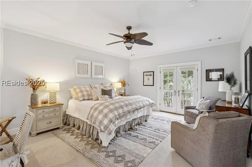 Spectacular marsh-to-river views framed by live oaks in this beautifully updated custom home. Enter through a gated garden into soaring 12’ ceilings, abundant light, and elegant living spaces. The chef's kitchen boasts a Wolf range, 4 ovens, Sub-Zero fridge, wine fridge, 10' island, 2 dishwashers, and more. First-floor primary suite has dual walk-in closets and a private laundry. Bonus room, custom closets, second laundry, new carpet (2023), HVAC (2020), pool heat/cool pump (2024), UV window film, custom built-ins, fire pit, and more. It's an ideal layout for entertaining and hosting family.