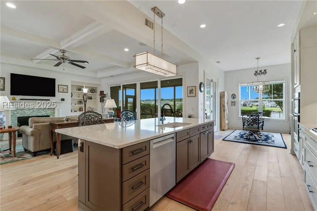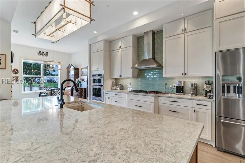 Stunning lakefront home on a prime cul-de-sac lot in Hampton Lake. Built in 2016 and fully remodeled since, this 4BR home offers 3,500+ Sqft of luxury living, plus a large 4-season porch. Features include: chef's kitchen with quartz counters, gas cooktop, and wine bar; a great room with coffered ceilings; and a spacious primary suite with water views, spa bath, and custom closet. Extra storage includes two walk-in attics, a 3-car garage, and large laundry room. Enjoy a private dock, firepit, fenced yard, and expansive lake views.