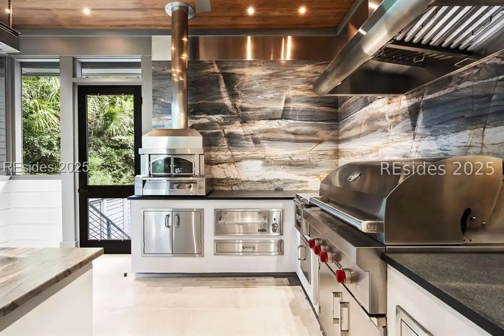 Welcome to 115 Mount Pelia--an award-winning, private oasis tucked on the banks of the May River. With its winding drive and inviting courtyard entrance, including a koi pond, this home welcomes you in with stunning architecture and floor to ceiling windows showcasing the sweeping waterfront views. The main floor features the ultimate chef's kitchen with a large island, work sink and entertaining sink, warming drawers, oversized Wolf range and built-in SubZero refrigerator and freezer. The scullery provides additional work space, sink and refrigerator, while the full back kitchen is stocked with pizza oven, grill, sink, refrigeration and more. Just off the kitchen is a large dining space with fireplace and living space with views of the water. The main floor screened-in porch offers 180 degree views of the May River while featuring additional living and dining space and a fireplace. Also on the main floor, you will find a sprawling primary wing with a large bedroom and spa-like bathroom, both with breathtaking river views, plus a private office. Downstairs provides additional living space with gorgeous views of the water, a game room, a media room, a wine cellar, a large exercise room plus sauna, additional laundry and two guest suites. The screened-in porch that opens to the pool provides even more entertaining space with a dining area, sitting area and fireplace. The large pool is perfect for lounging or laps and the outdoor shower that connects to the indoor half bath provides guests the perfect spot to shower off after a day in the sun.With an additional guest suite over the garage that includes a large sitting area and kitchenette plus a separate guest cottage with an additional bedroom, bathroom and kitchenette, there is plenty of room for family and friends to have space and privacy while they share in the beauty of this property. Don't miss the ultimate Palmetto Bluff retreat in the highly sought-after May River Forest neighborhood!