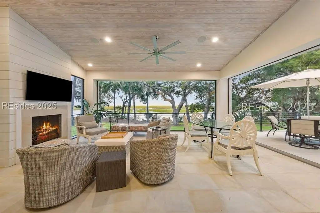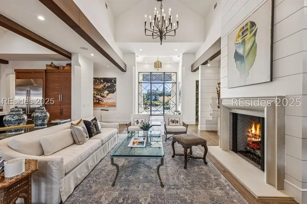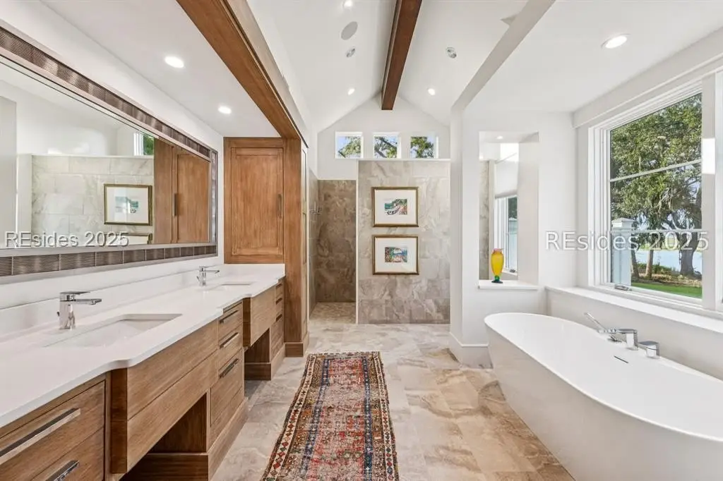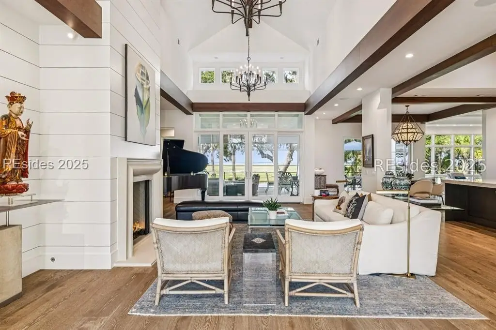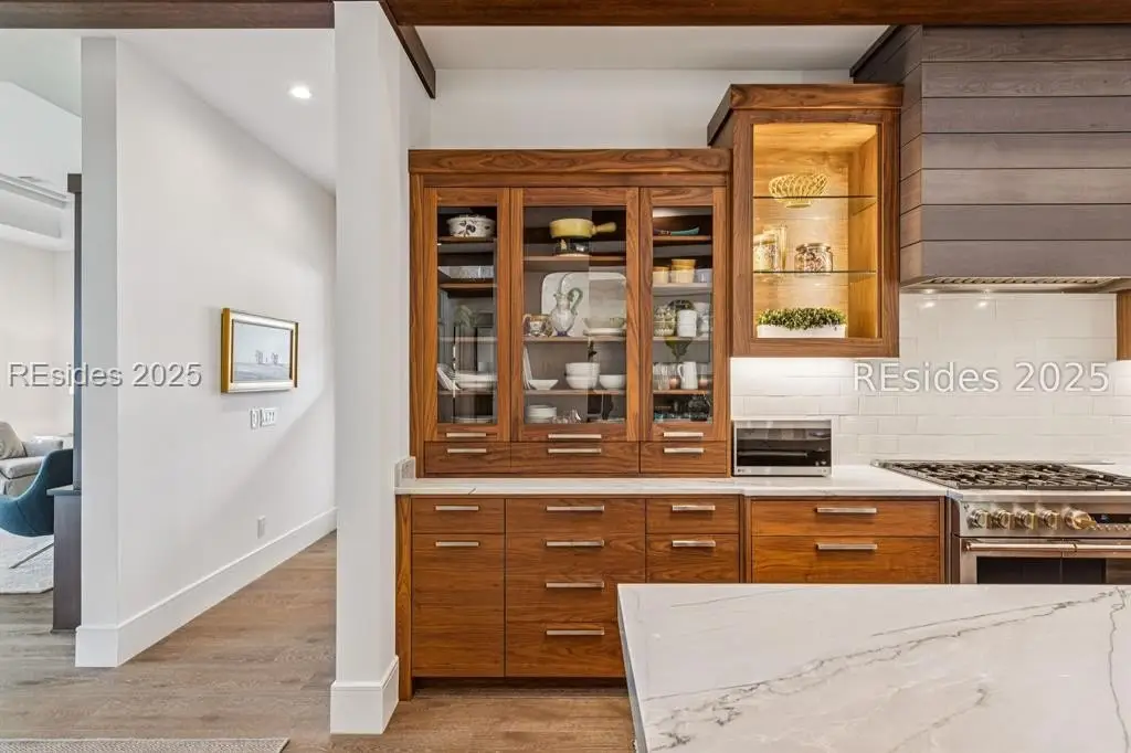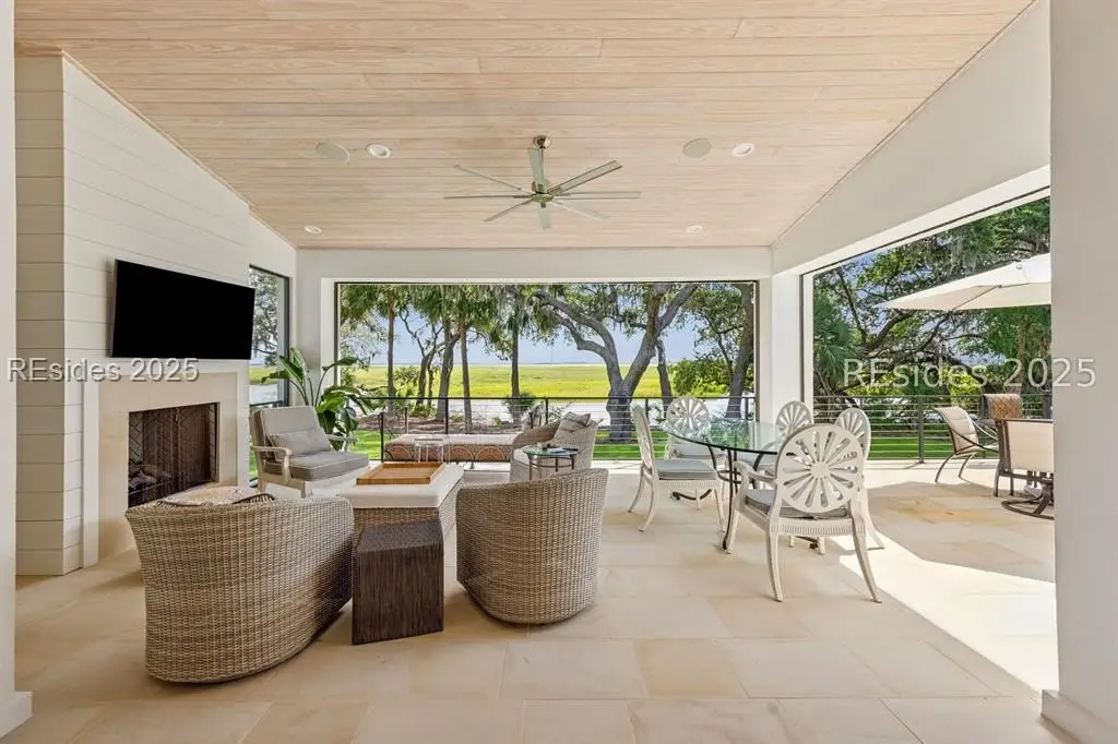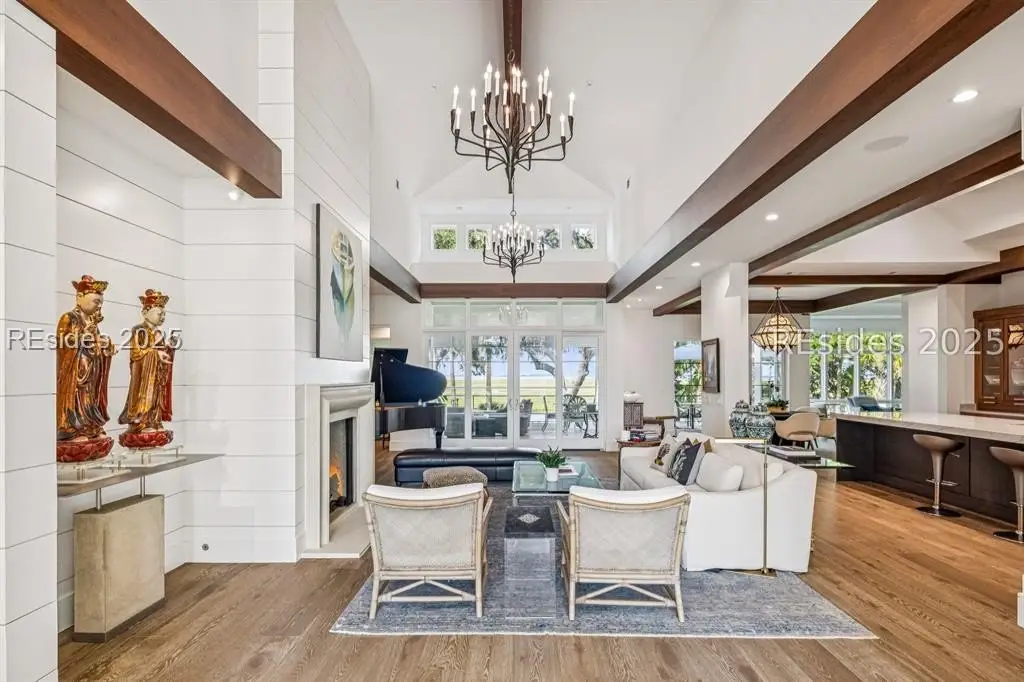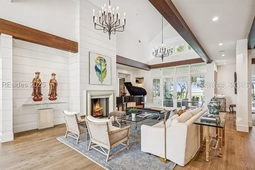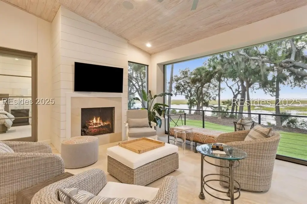 Experience refined Lowcountry living in this award-winning 2023 custom-built masterpiece, designed by a renowned Dallas architect and nestled amidst breathtaking marsh and river views. Showcasing exceptional craftsmanship with bespoke black walnut and white oak cabinetry and beams, this home earned the 2023 Light House Award for Best Kitchen, Best Bathroom, Best Exterior, and Best Overall. Every detail speaks to luxury--from the architect-designed entry door and three ensuite bedrooms to two elegant wood-burning fireplaces with gas options, custom cast stone surrounds, and dual private offices. Entertain effortlessly on limestone patios, a screened rear porch with electric screens, and enjoy the oversized three-car garage with epoxy floors, Sonos sound system, art lighting, and stunning ceiling designs. This is coastal elegance at its finest.