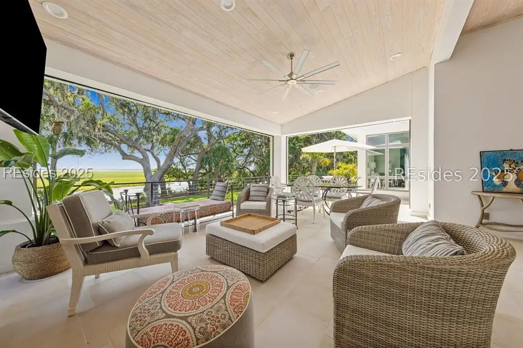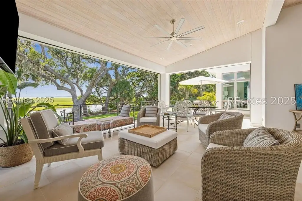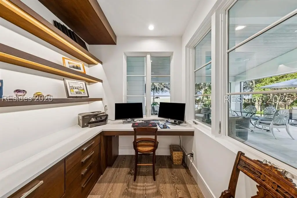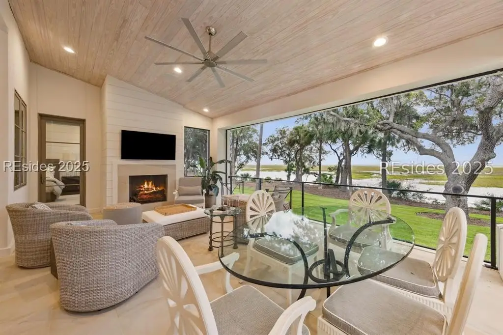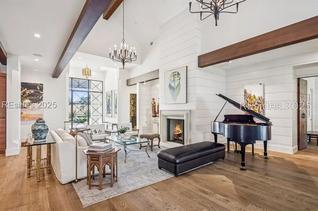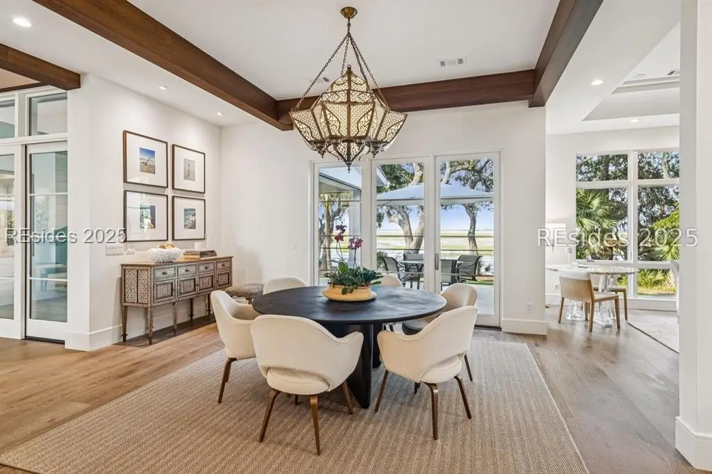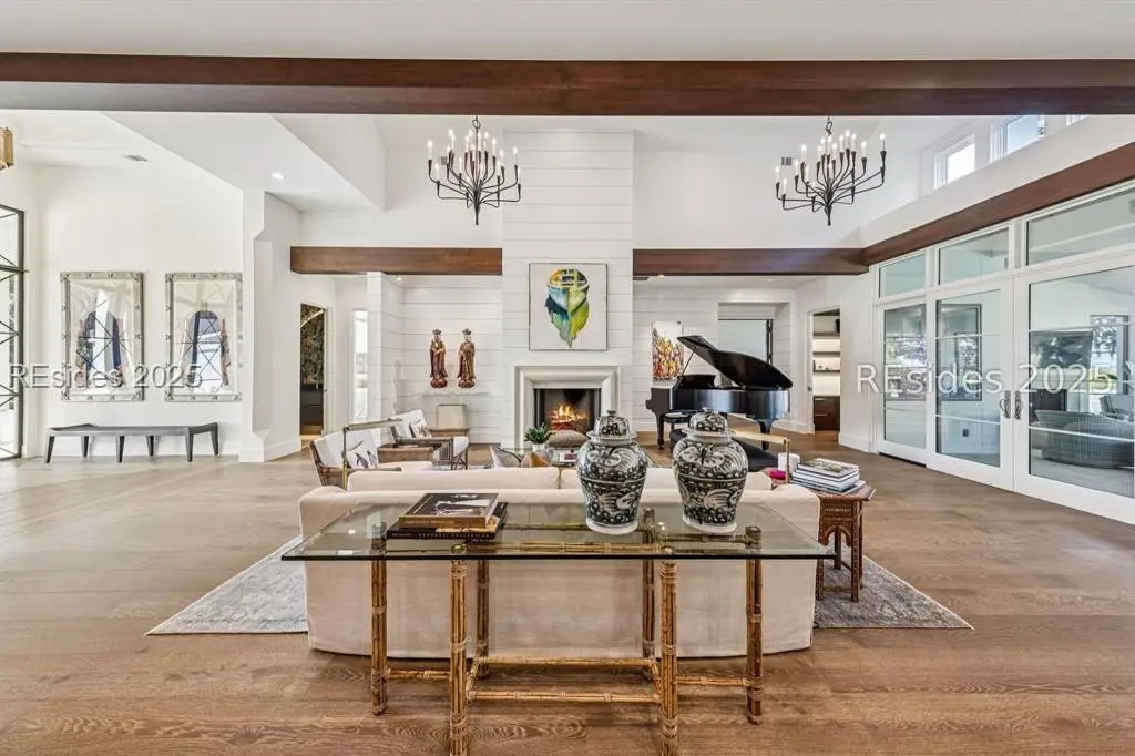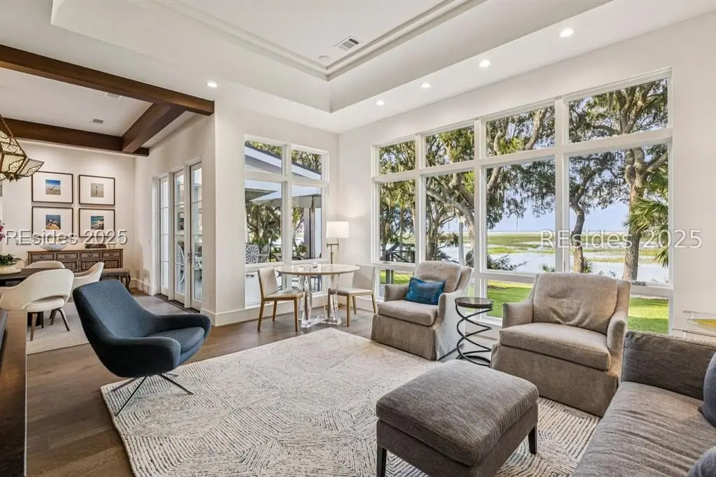 Experience refined Lowcountry living in this award-winning 2023 custom-built masterpiece, designed by a renowned Dallas architect and nestled amidst breathtaking marsh and river views. Showcasing exceptional craftsmanship with bespoke black walnut and white oak cabinetry and beams, this home earned the 2023 Light House Award for Best Kitchen, Best Bathroom, Best Exterior, and Best Overall. Every detail speaks to luxury--from the architect-designed entry door and three ensuite bedrooms to two elegant wood-burning fireplaces with gas options, custom cast stone surrounds, and dual private offices. Entertain effortlessly on limestone patios, a screened rear porch with electric screens, and enjoy the oversized three-car garage with epoxy floors, Sonos sound system, art lighting, and stunning ceiling designs. This is coastal elegance at its finest.