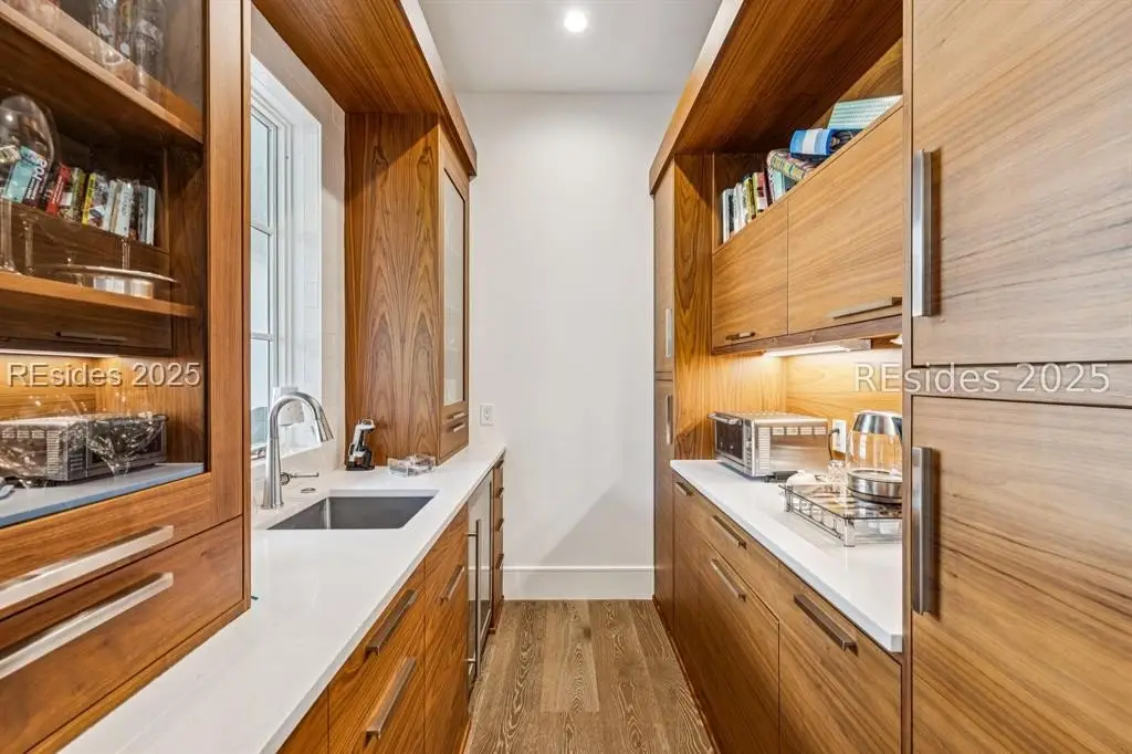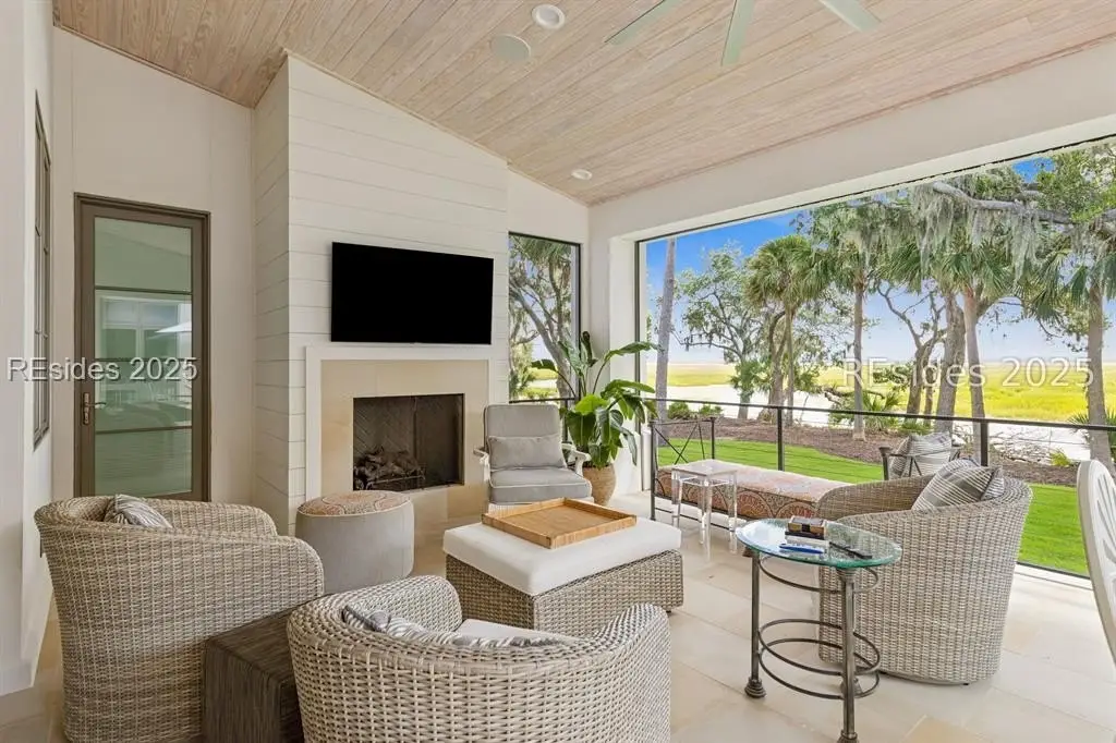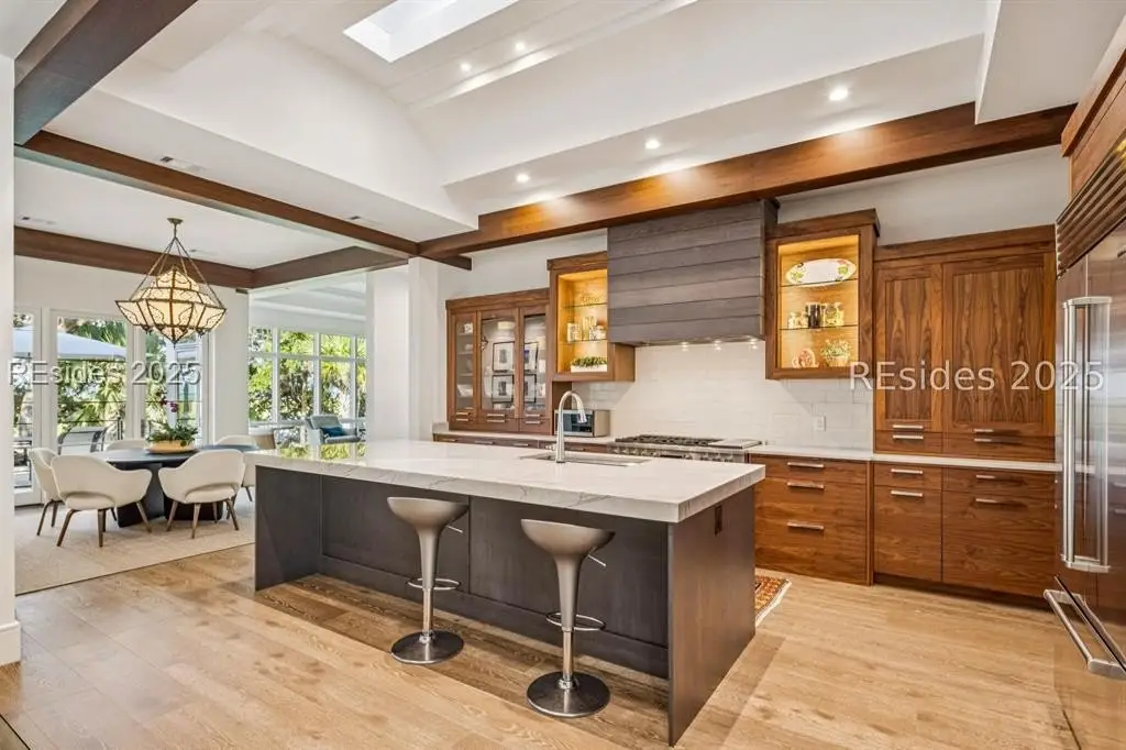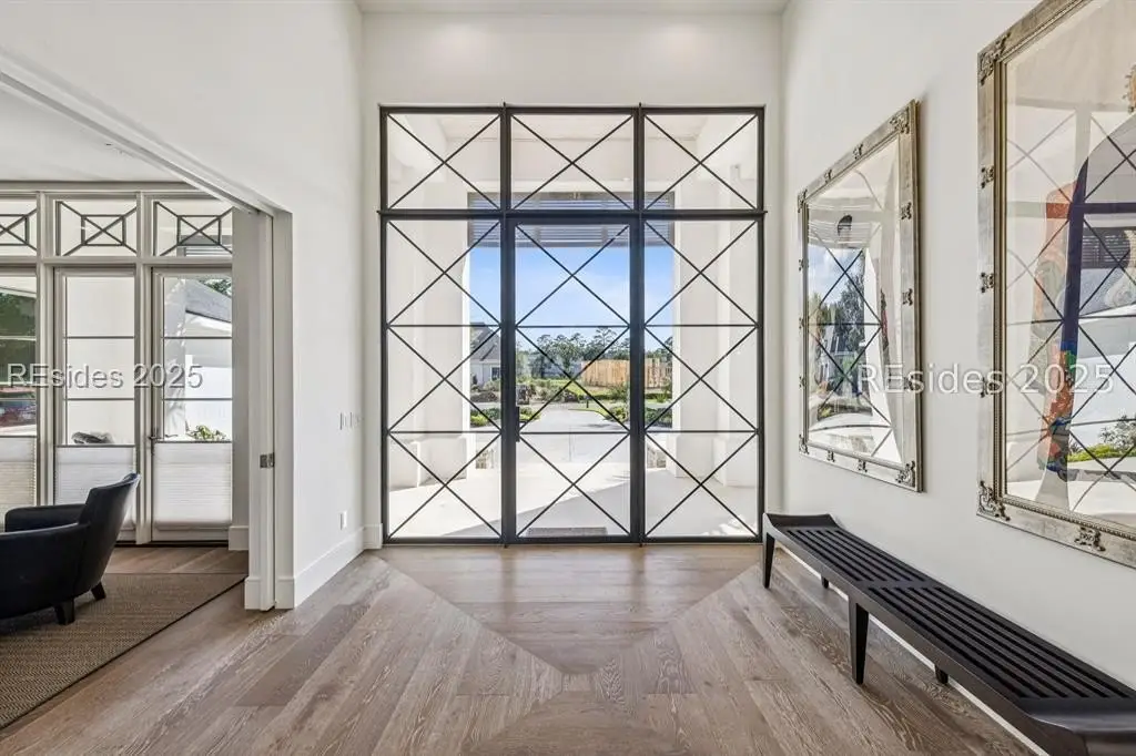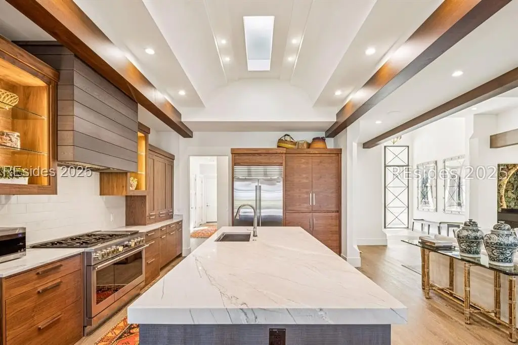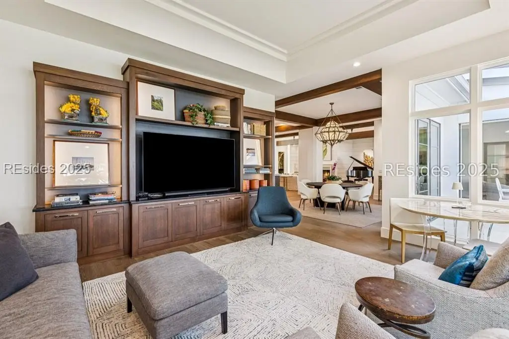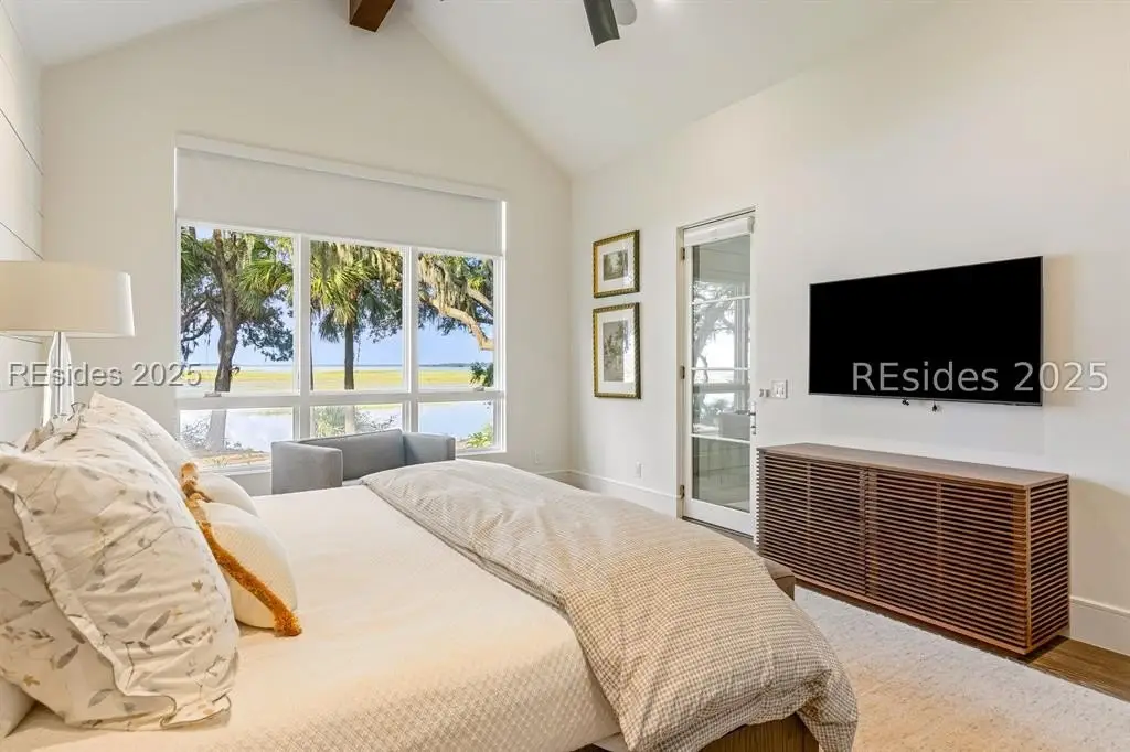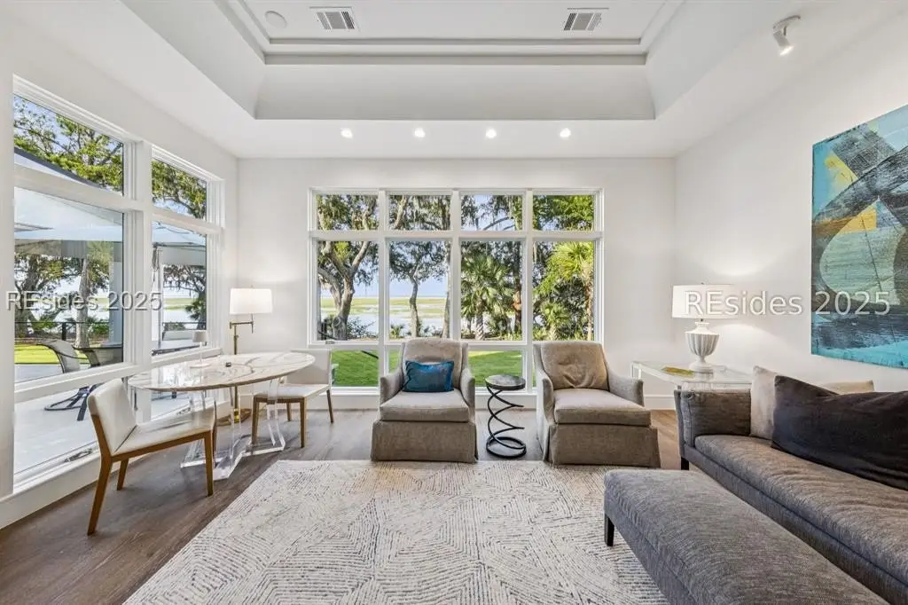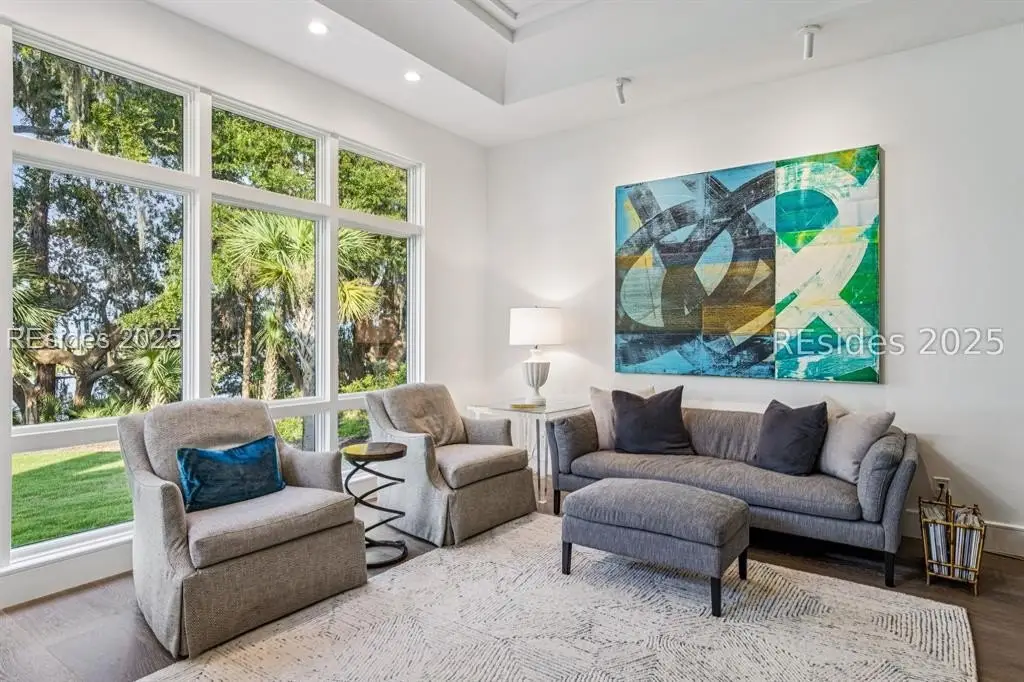 Experience refined Lowcountry living in this award-winning 2023 custom-built masterpiece, designed by a renowned Dallas architect and nestled amidst breathtaking marsh and river views. Showcasing exceptional craftsmanship with bespoke black walnut and white oak cabinetry and beams, this home earned the 2023 Light House Award for Best Kitchen, Best Bathroom, Best Exterior, and Best Overall. Every detail speaks to luxury--from the architect-designed entry door and three ensuite bedrooms to two elegant wood-burning fireplaces with gas options, custom cast stone surrounds, and dual private offices. Entertain effortlessly on limestone patios, a screened rear porch with electric screens, and enjoy the oversized three-car garage with epoxy floors, Sonos sound system, art lighting, and stunning ceiling designs. This is coastal elegance at its finest.