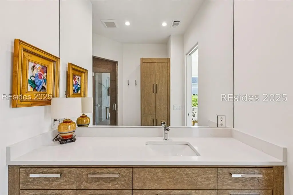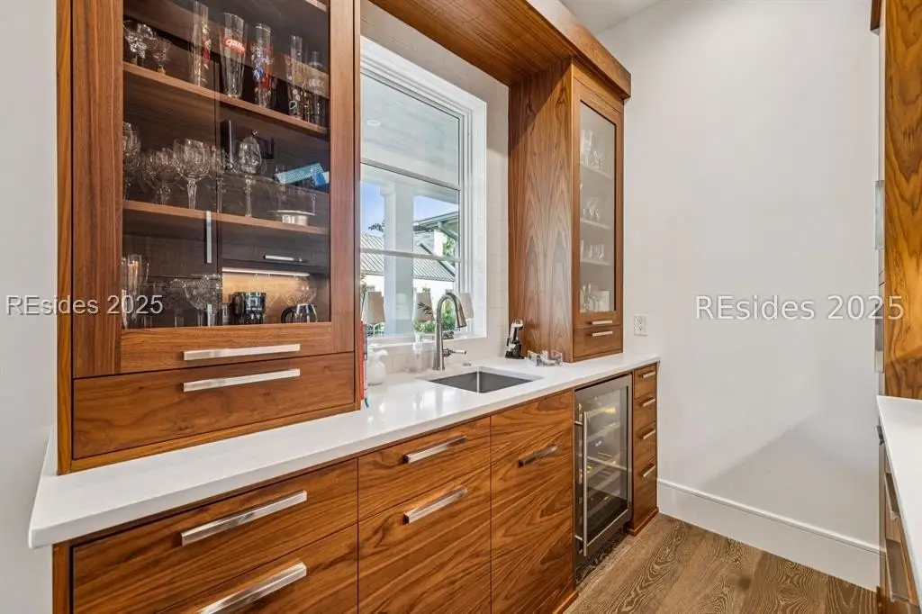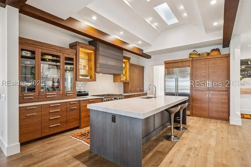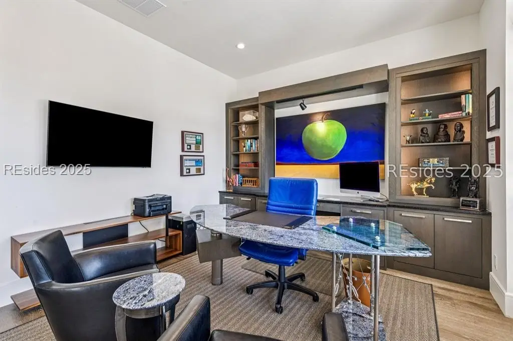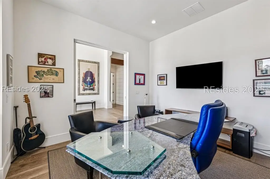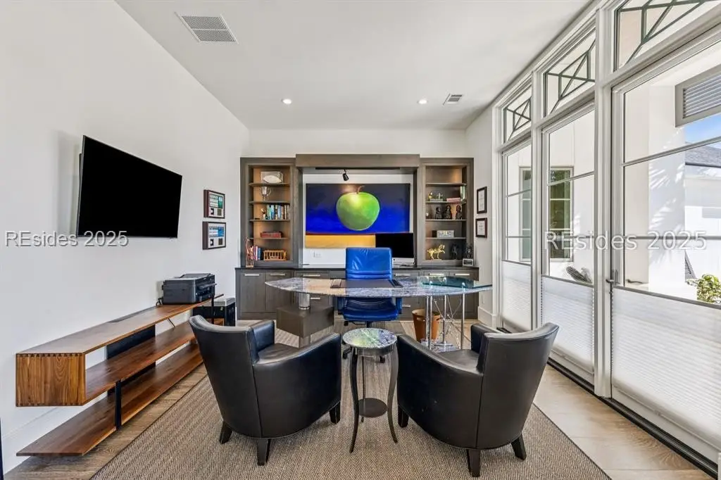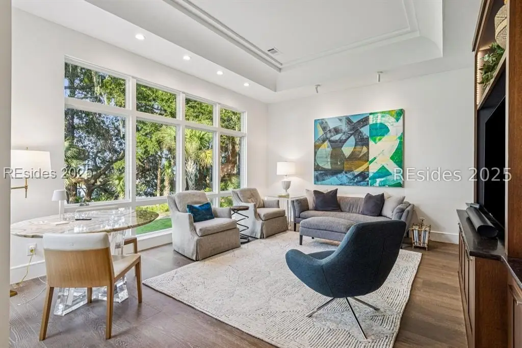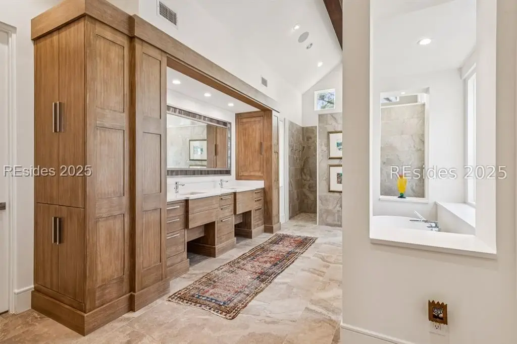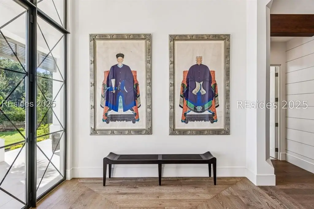 Experience refined Lowcountry living in this award-winning 2023 custom-built masterpiece, designed by a renowned Dallas architect and nestled amidst breathtaking marsh and river views. Showcasing exceptional craftsmanship with bespoke black walnut and white oak cabinetry and beams, this home earned the 2023 Light House Award for Best Kitchen, Best Bathroom, Best Exterior, and Best Overall. Every detail speaks to luxury--from the architect-designed entry door and three ensuite bedrooms to two elegant wood-burning fireplaces with gas options, custom cast stone surrounds, and dual private offices. Entertain effortlessly on limestone patios, a screened rear porch with electric screens, and enjoy the oversized three-car garage with epoxy floors, Sonos sound system, art lighting, and stunning ceiling designs. This is coastal elegance at its finest.