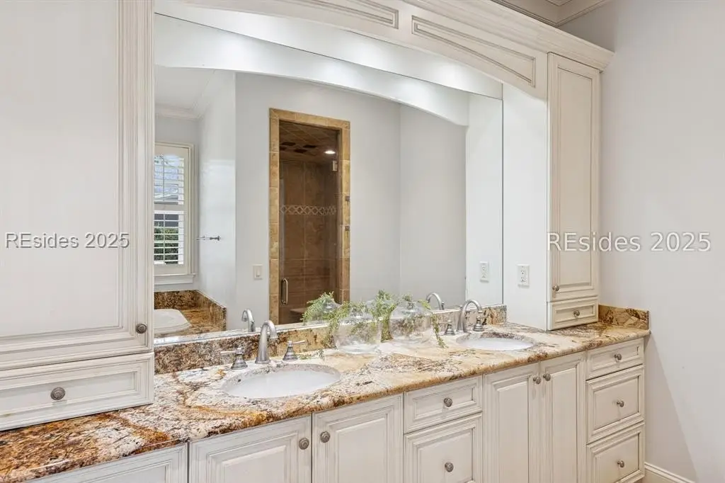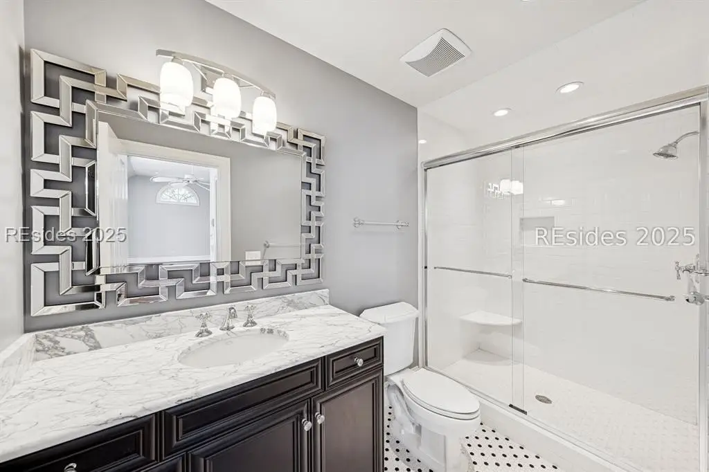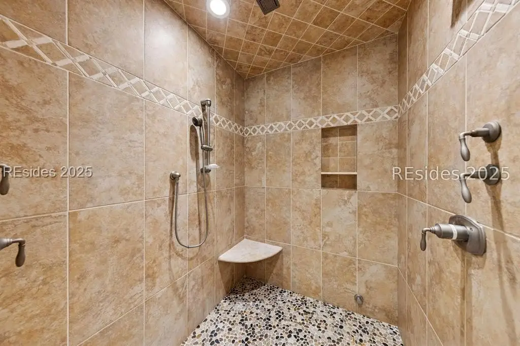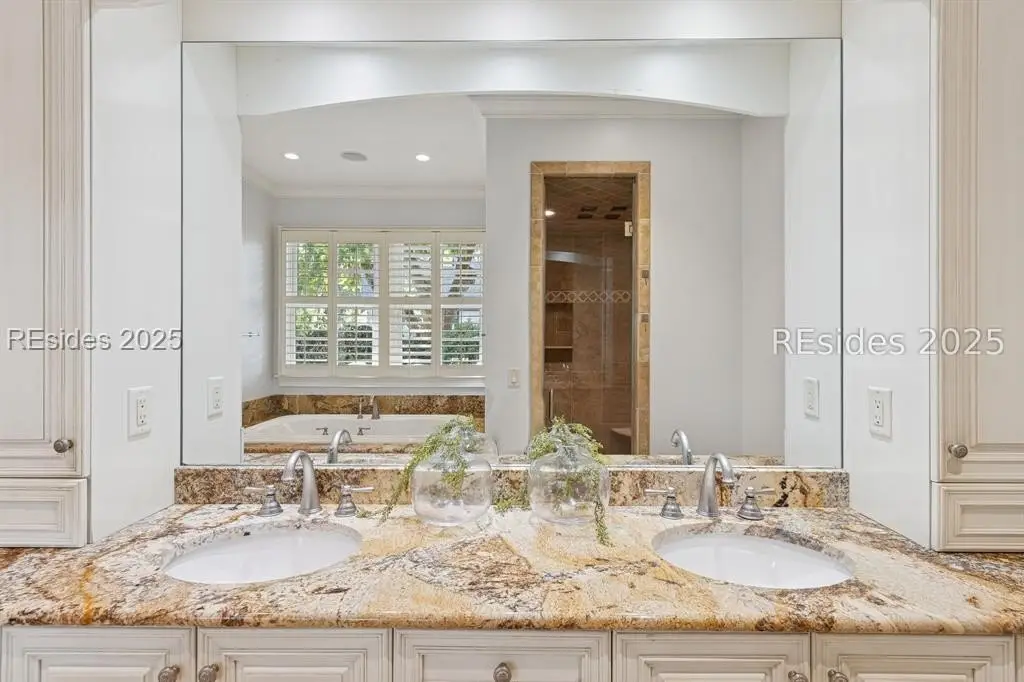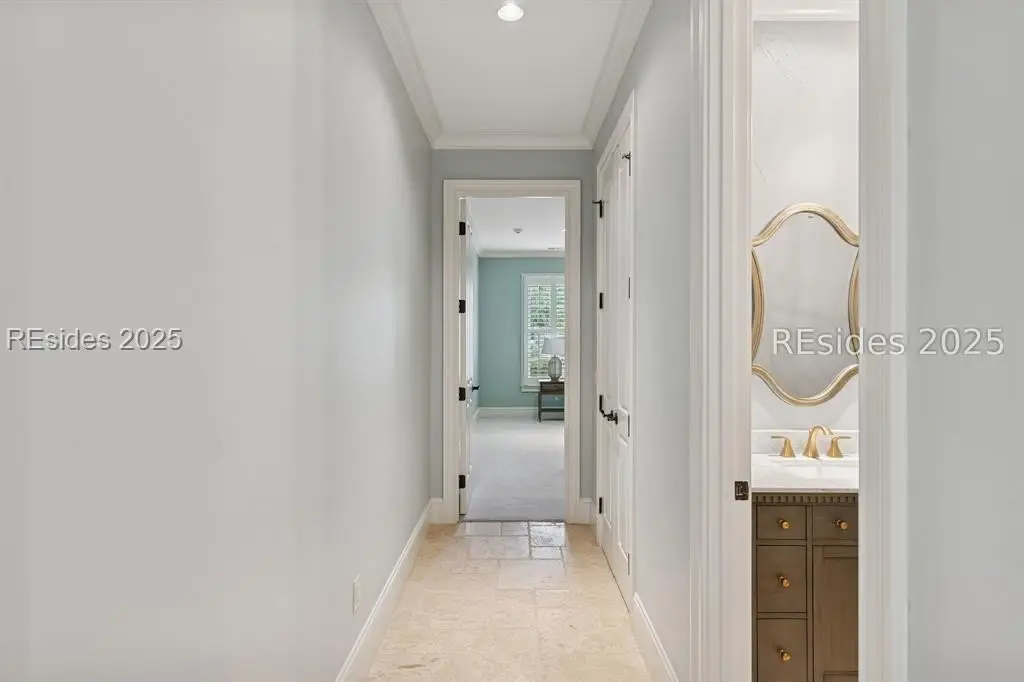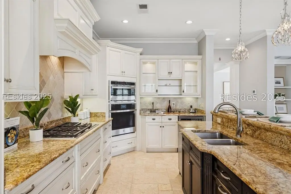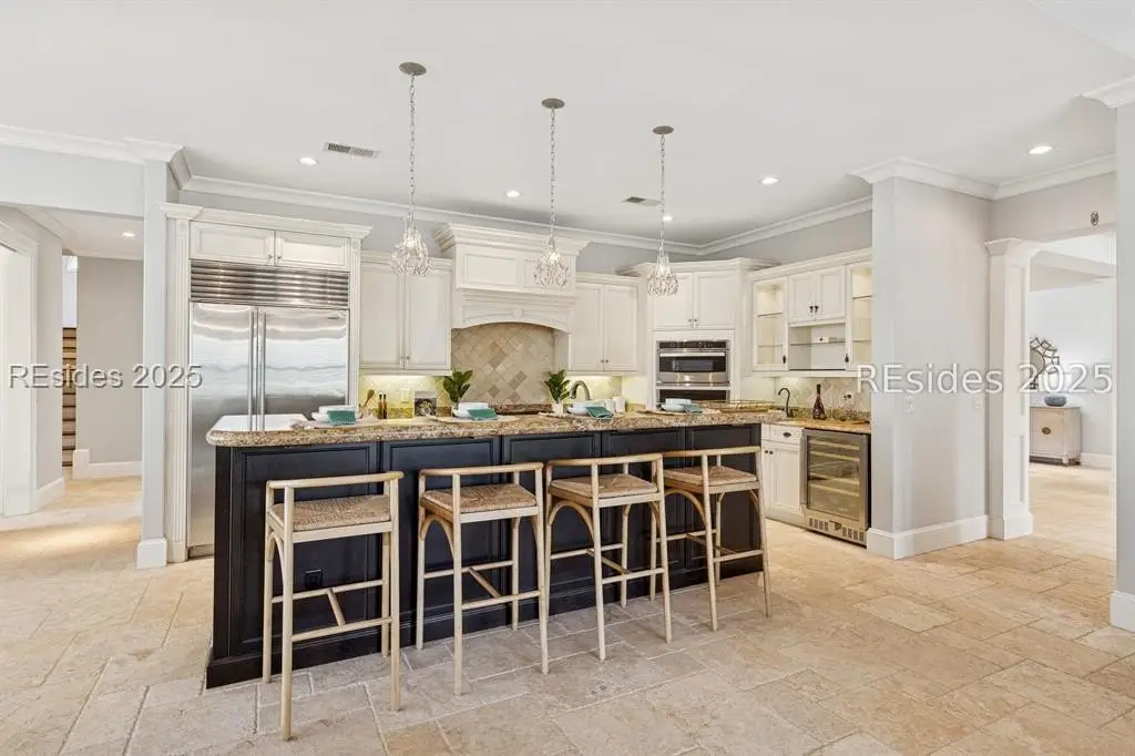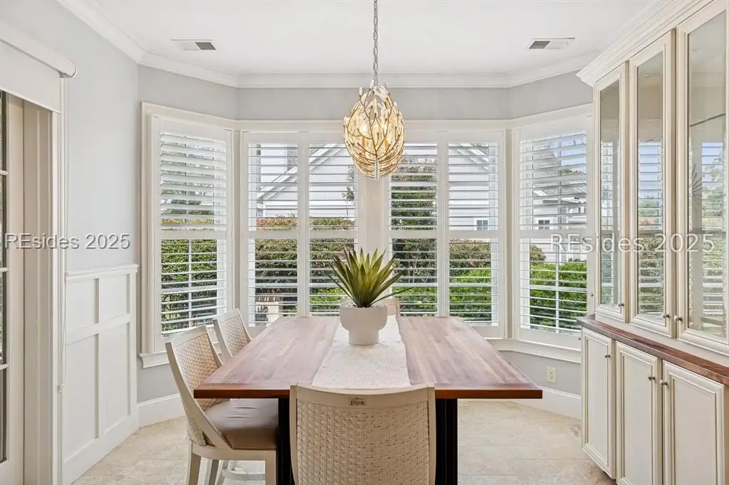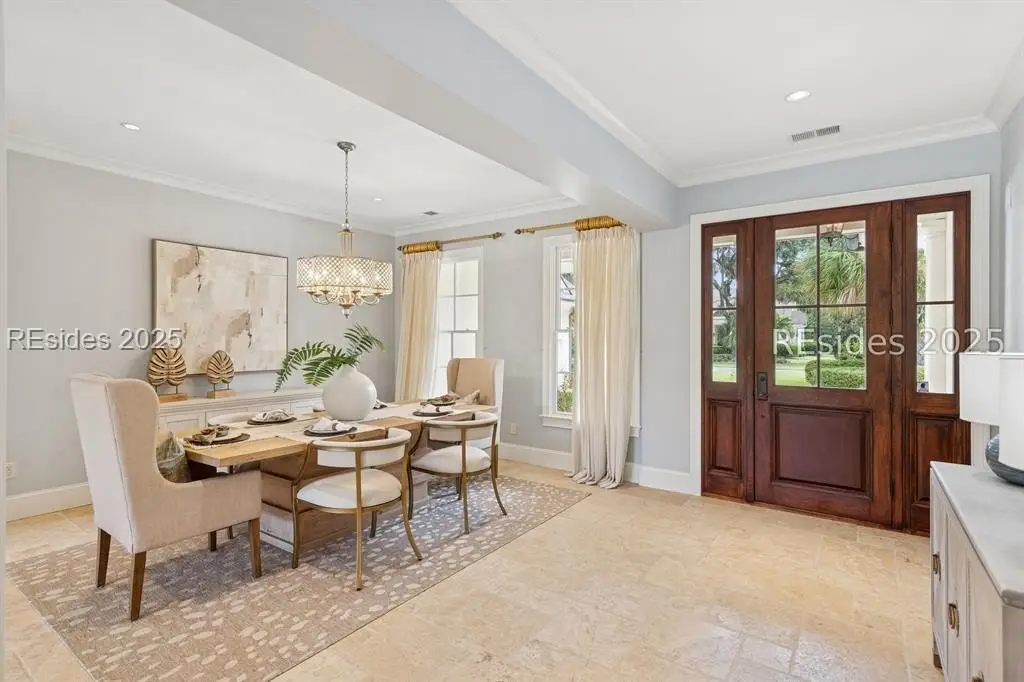 Set along Osprey Lake in Colleton River, this stunning residence offers over 5,000 sq. ft. of refined Southern living with 5 bedrooms and 5.5 baths. The thoughtful floor plan places three en suite bedrooms on the main level, complemented by spacious living areas finished with limestone and heart pine floors, exquisite moldings, and timeless architectural detail. The chef's kitchen is a true centerpiece, showcasing a Sub-Zero refrigerator, Wolf cooktop, and granite and slate counters throughout. Just beyond, a screened porch extends the living space outdoors, where a private pool, covered poolside bar with grill and TV, and a fully fenced backyard create an ideal entertaining retreat, perfect for gatherings or simply enjoying the Lowcountry lifestyle. Two separate stairwells lead to private upstairs retreats, each with a bedroom and full bath. These versatile spaces provide endless possibilities, serving as guest suites, home offices, media rooms, gyms, or even a golf simulator. A walk-in attic with 1,500+ sq. ft. of storage and an oversized three-car garage add everyday practicality. Every detail of this home has been designed with intention, offering a rare combination of craftsmanship, comfort, and livability. From formal entertaining to casual gatherings by the pool, this Colleton River residence is as versatile as it is timeless.