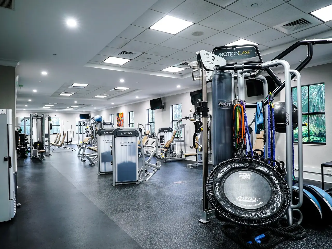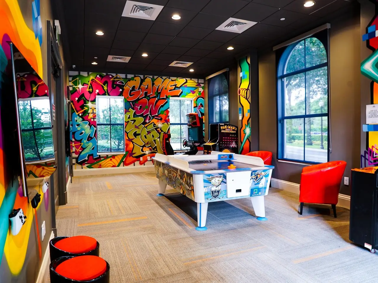 • Window-wall of glass overlooking pool