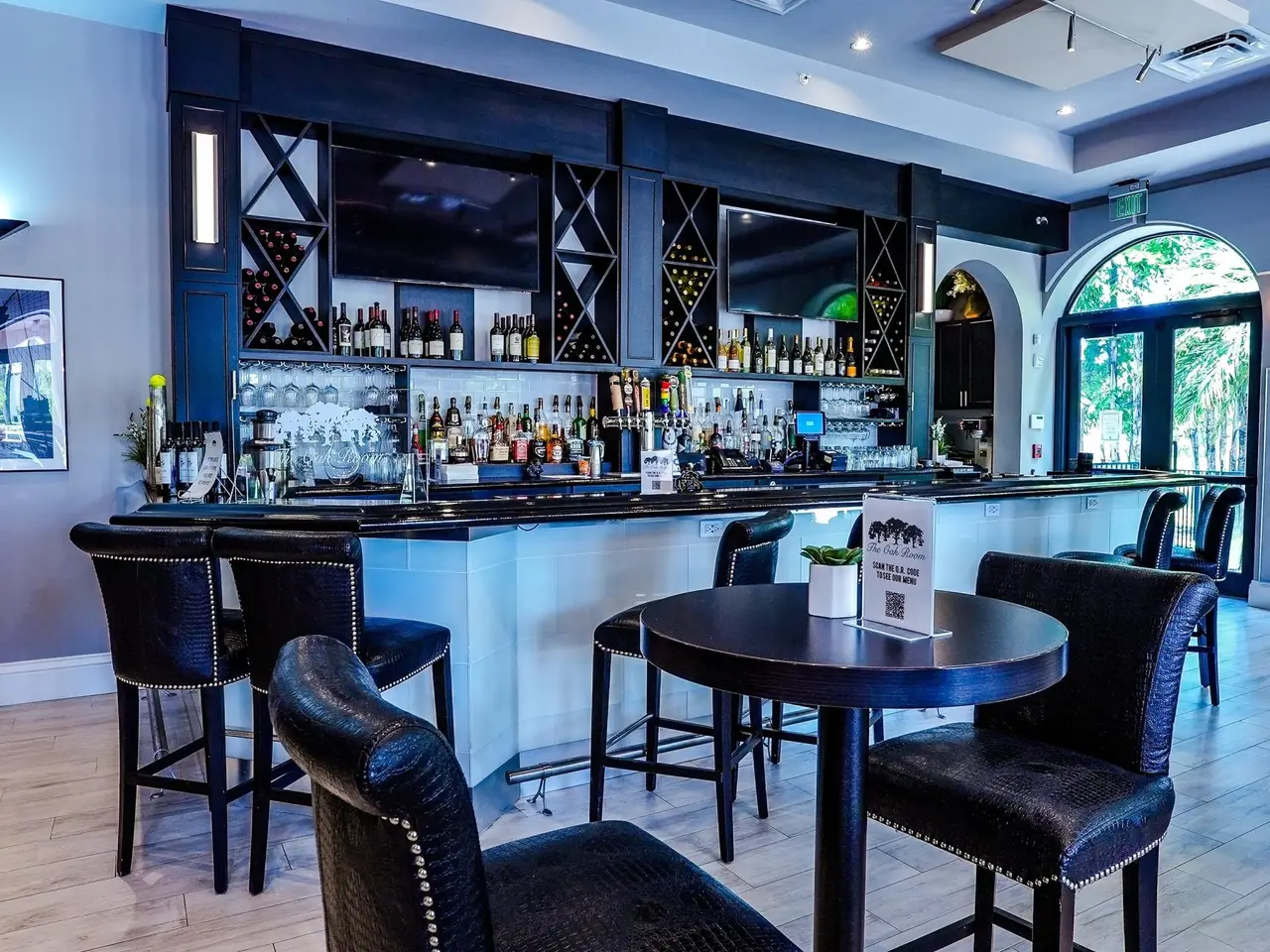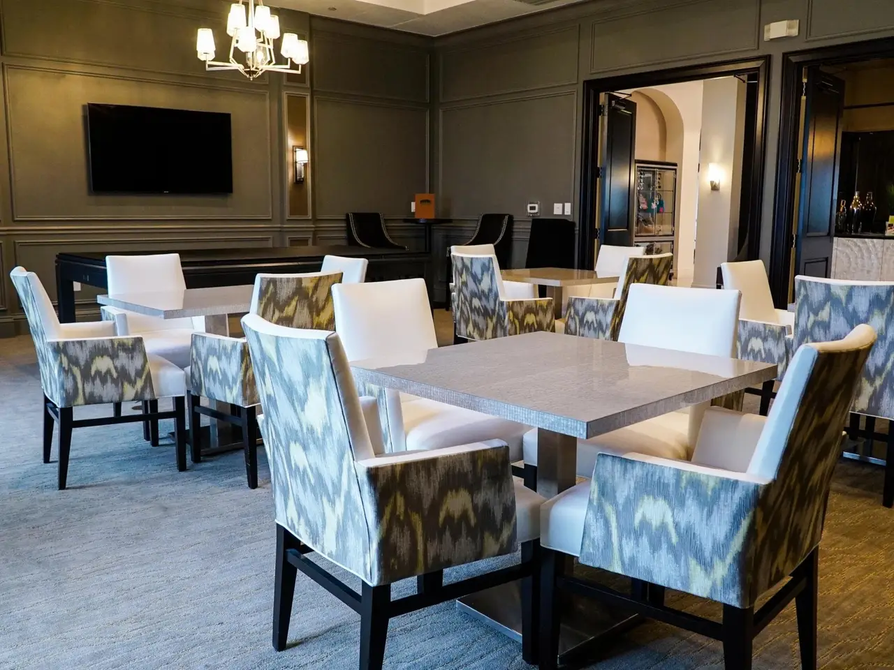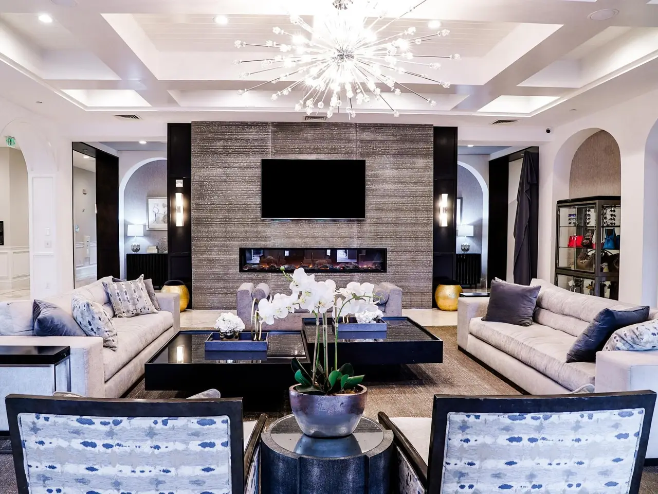 • Soaring two-story coffered ceiling