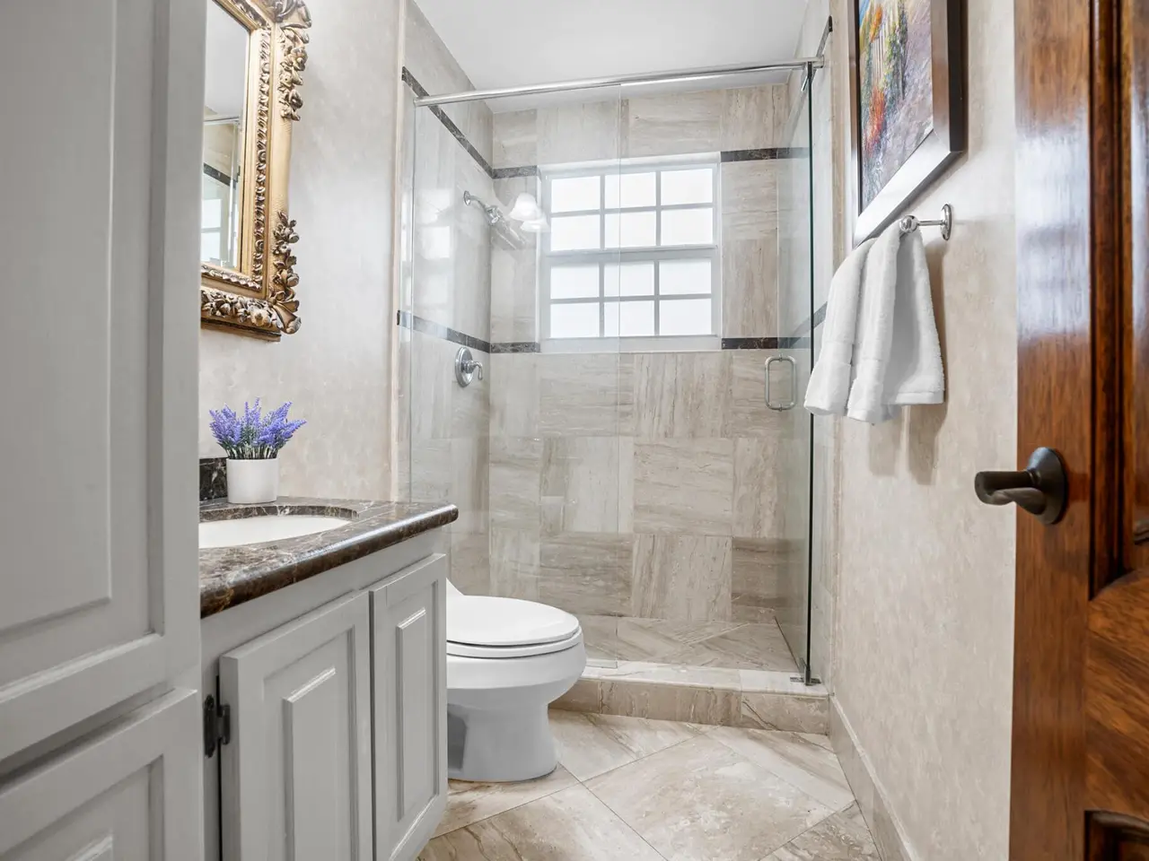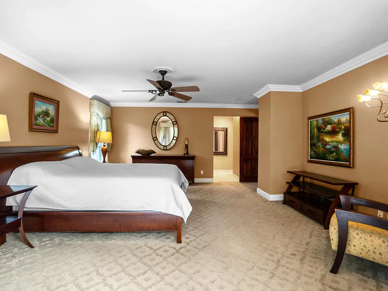 Expansive primary suite with balcony