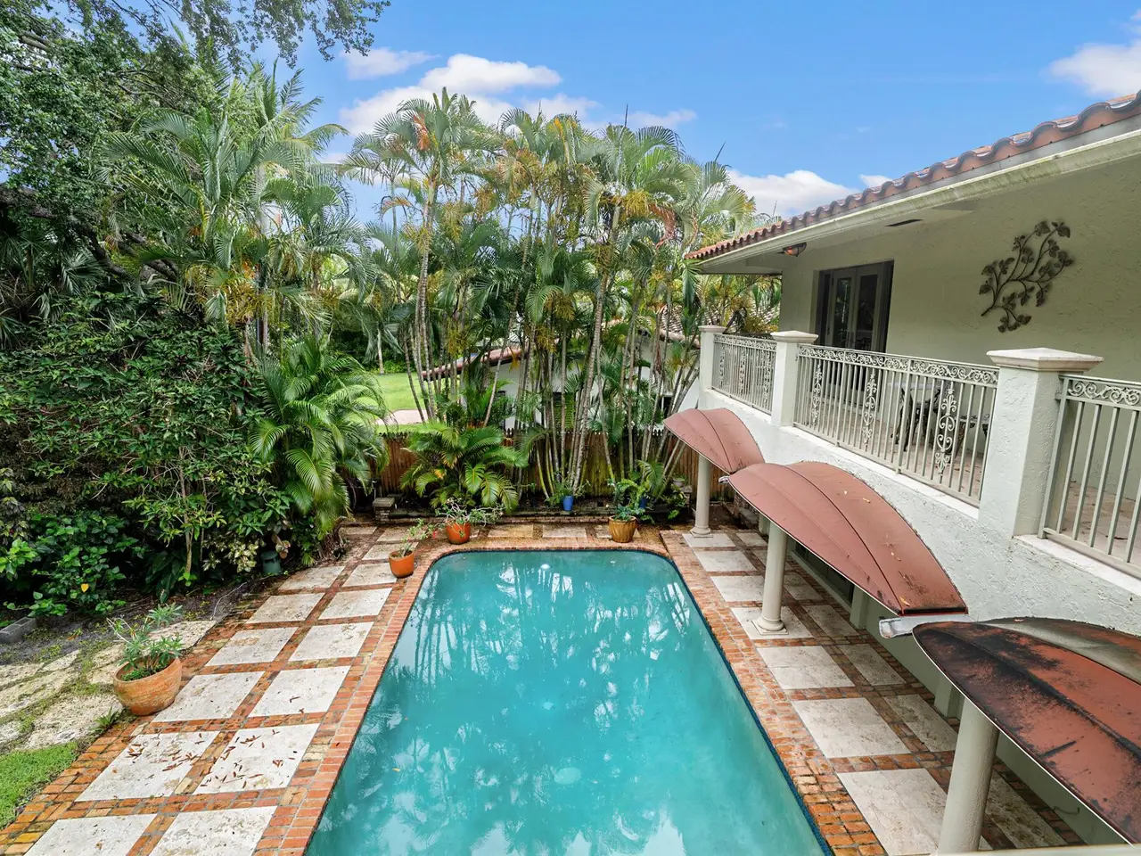 Exquisite Waterfront Estate with Private Dock in The Historic Old Floresta Area. Welcome to this one-of-a-kind custom-built estate nestled in Boca Raton's historic Old Floresta neighborhood. Located on the El Rio Canal with ocean access and a 30 ft. private dock, this home epitomizes the South Florida lifestyle. Sail into the Boca Inlet and the Atlantic Ocean or simply relax and watch the manatees swim by from your own backyard sanctuary. This magnificent residence seamlessly blends timeless elegance with contemporary luxury. Classic marble and rosewood flooring set the stage for a grand spiral staircase, a coral stone fireplace, and a gorgeous chef's kitchen designed for both everyday living and lavish entertaining. A custom-built office provides the perfect space for productivity and inspiration. Upstairs, retreat to the expansive primary suite featuring French doors that open to a balcony overlooking the heated pool and gardens. Enjoy the spa-like ensuite bath complete with an enormous jetted tub, dual sinks, a separate shower, and a water closet with a bidet. Three additional upstairs guest rooms each offer ensuite baths and walk-in closets, with one granting access to the outdoor balcony and featuring a space saving Murphy bed. Just outside are the lushly landscaped grounds and the pathway to your private dock. A garden shed offers space for your paddleboard, kayaks, canoes, and tools. Additional features include impact windows and doors, three A/C units, and nearly 3,500 square feet of living space designed for modern living. Zoned for top-rated schools: Addison Mizner, Boca Raton Middle, and Boca Raton High, this home is within 3 miles of the beach, downtown Boca, and the vibrant Mizner Park. Skip the parking hassle and cost by taking BocaCONNECT, all electric shuttles powered by Circuit, to Mizner Park, the Brightline Station, the beaches, and more! With many homes in the Old Floresta/Tunison Palms area being transformed into new construction, seize this opportunity to own a piece of Boca Raton's rich history. Schedule your private showing today and experience true South Florida luxury.