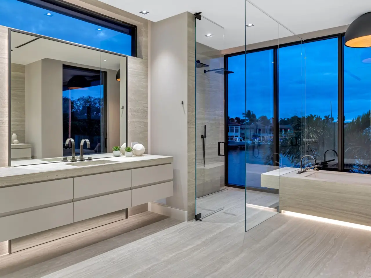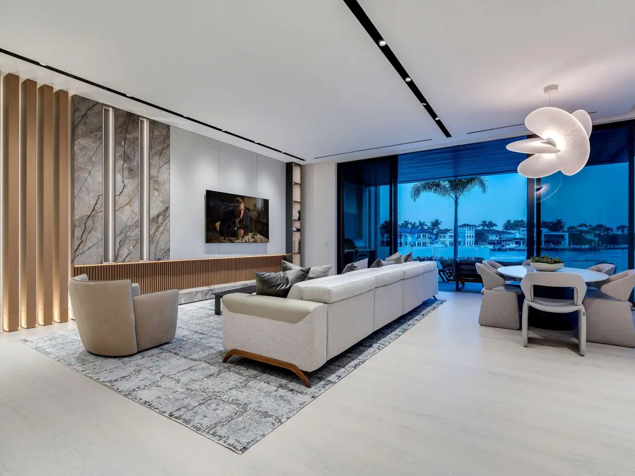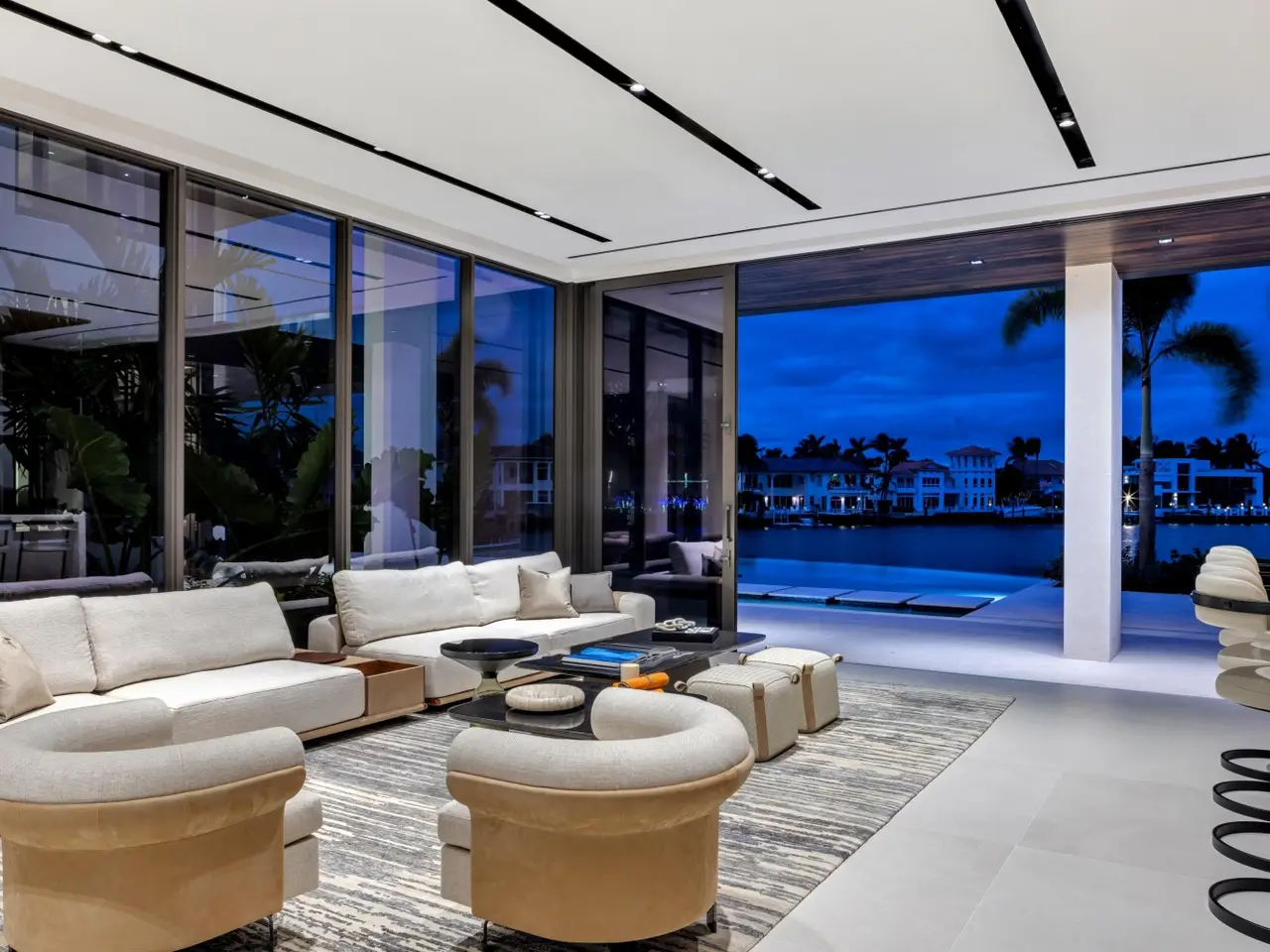 New Orchid Point Intracoastal estate sited on 230 +/- feet of waterfrontage with side protected yacht dockage in a ''no wake zone'' capturing stunning panoramic views by Jag Development, In-Site Design Group & interiors by Farache Bromberg Design Studio. Front Row views blend with modern architecture from all major rooms include floor/ceiling window walls, bleached oak flooring and organic wood detailing. Primary suite boasts a sitting room, Spa-like bath, dual boutique closest and waterfront covered balcony. Resort-like entertainment patio with infinity-edge pool/spa, sun shelf and lanai with summer kitchen. Other amenities include a new home built above required FEMA elevation. 230'+/- of newly constructed seawall & cap with new 80'+/- concrete dock. an expansive auto plaza and three-bay garage.