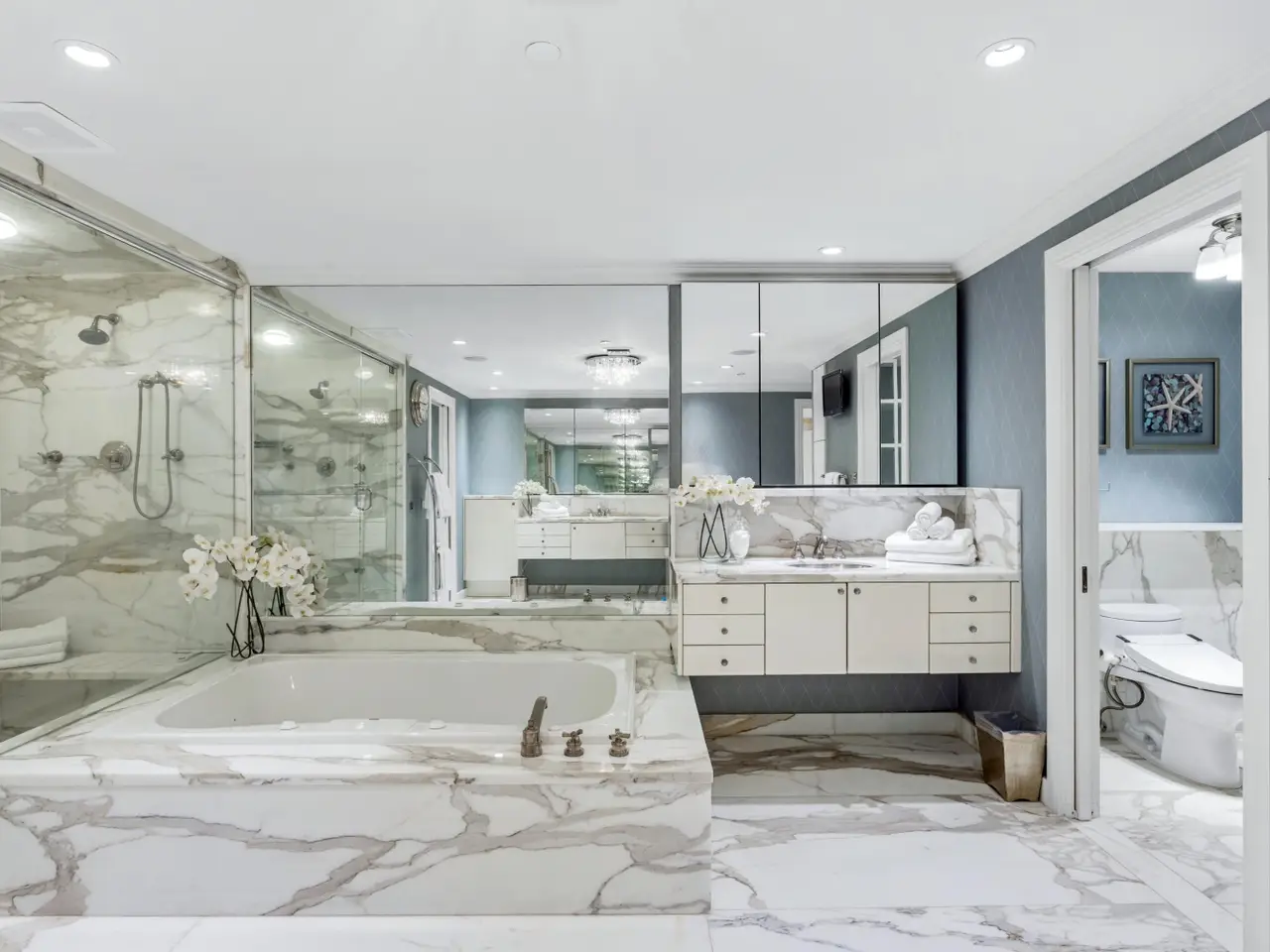 • Well-appointed kitchen with marble counters and top-tier appliances