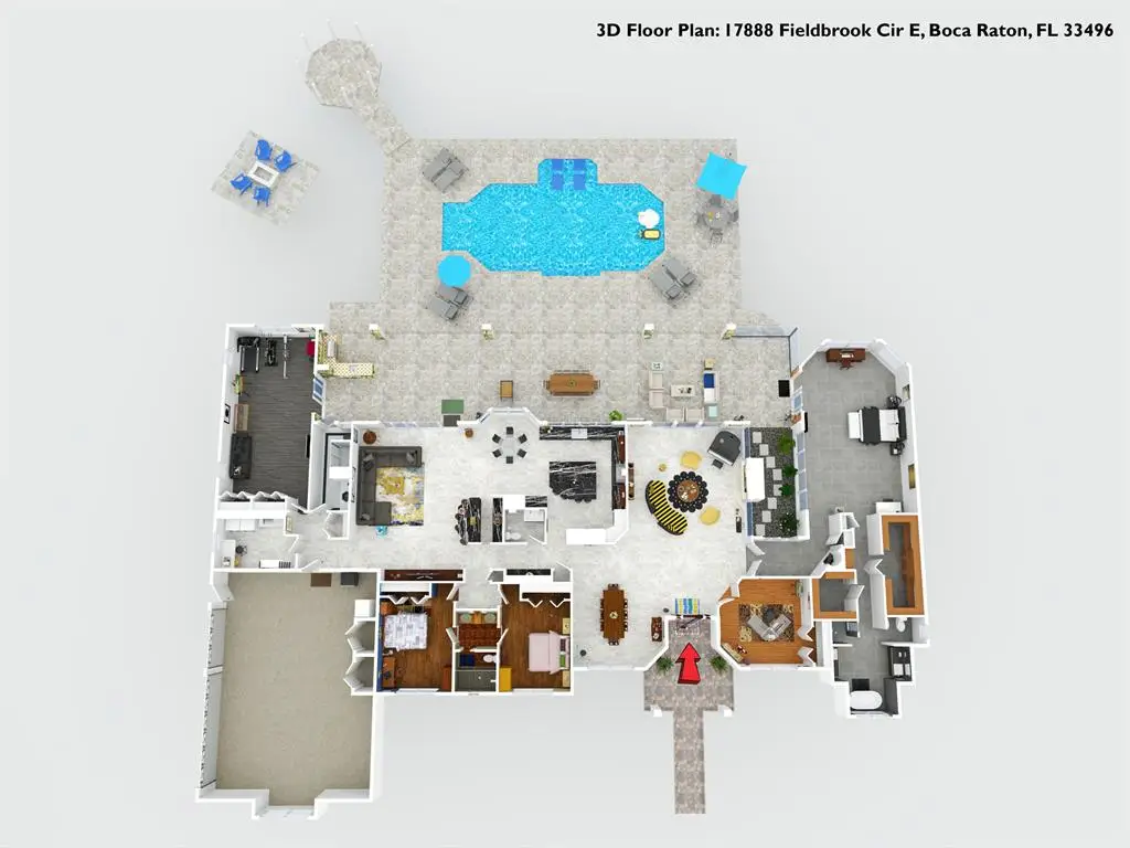Experience luxury living in the prestigious Fieldbrook community. Nestled on a meticulously landscaped one-acre lot, this stunning estate features a remodeled kitchen, a spacious game room, and beautifully updated bedrooms and bathrooms. Elegant 4 x 4 porcelain tile and wood flooring flow throughout the home. The outdoor oasis includes a sparkling pool and a cabana bath with a steam shower, perfect for relaxation. The property offers storm protection and a new whole house generator. The air-conditioned, three-car garage adds extra functionality and comfort. Located in a private enclave of just 54 estate homes, this central Boca Raton gem provides convenient access to top-tier amenities.