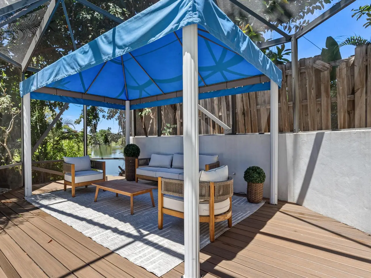 Covered lakeside gazebo