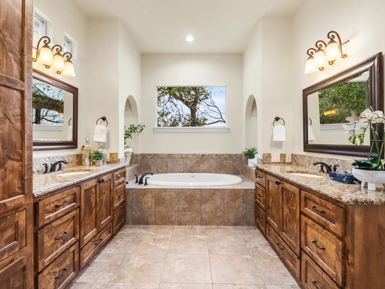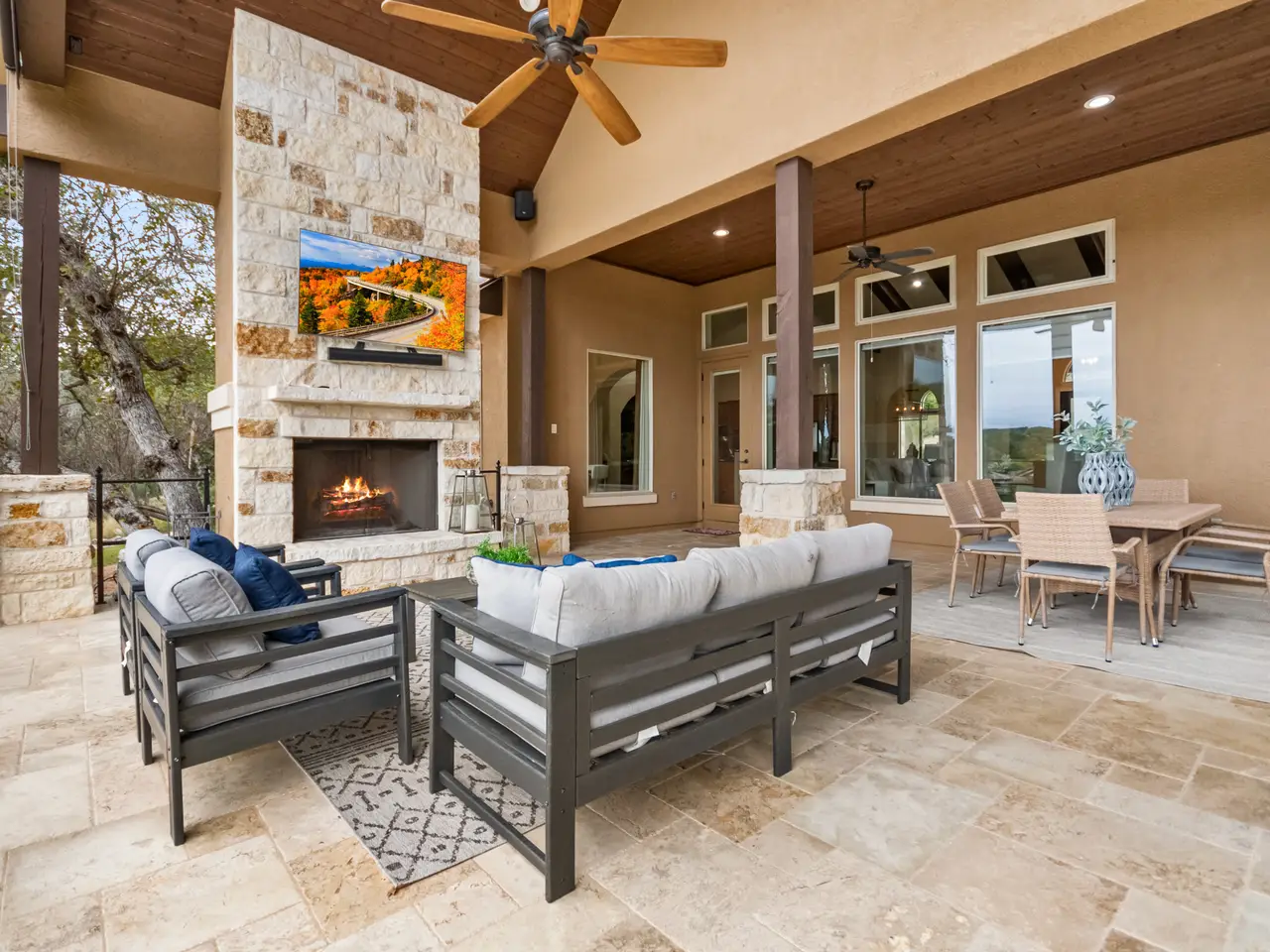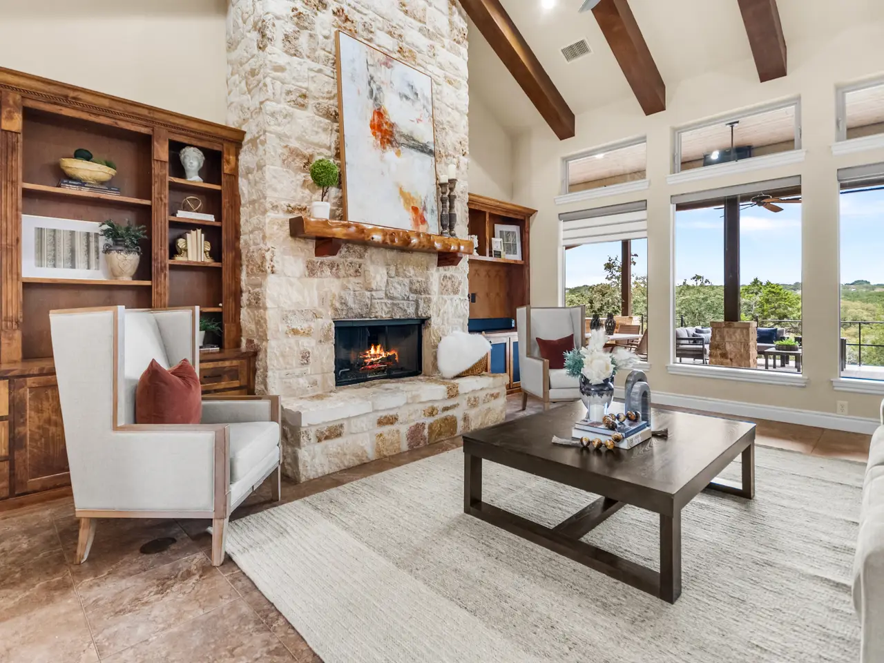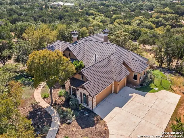 Experience all that Cordillera Ranch has to offer and enjoy the beautiful views at this exquisite one story ranch style home located close to the Guadalupe River Park. This property sits on just over 2 acres and has 4 nice size bedrooms and 2.5 bathrooms and a 3 car garage. As you walk in the home you are greeted with a wall of windows to take in the spectacular hill country views, a floor to ceiling stone fireplace with built in cabinets on each side, central vacuum, a large entertainer's kitchen with gas cooking, double ovens, an island, and eat in bar top. The enlarged outdoor covered patio is impressive. Equipped with an outdoor fireplace, misting system, designated kitchen for grilling, and plenty of room to create an additional outdoor cozy living space. The location of this property is equipped with city water and sewer. Come and make this house your home.