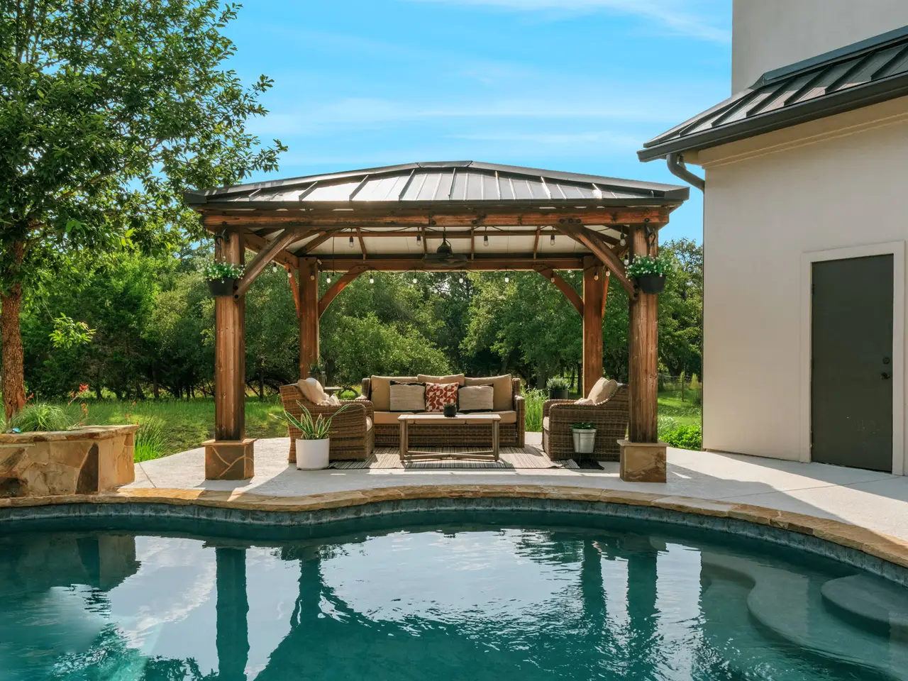 Pretty Hill Country Style home with modern touches lives as a one story with four Bedrooms on Main Level. The second story offers a game room and flex room with large closet plus a powder bath. Home has recently been remodeled to offer light wide-plank wood floors and upgraded neutral counters and backsplashes. The floorplan was thoughtfully designed with two bedrooms sharing a jack and jill bath, one guest suite and the Primary suite with recently remodeled luxe bath offering a slipper tub, dual sinks, large closet and walk-in shower. Working and creating from home is easy with the private study/office. Built for outdoor living, 157 Fair Springs offers a refreshing pool, gazebo, firepit and covered back patio for entertaining. There is plenty of yard to run and play and the home is situated on the Hill country side of Menger Springs! Menger Springs is a desirable, gated neighborhood and offers easy access to Downtown Boerne, shopping, restaurants, schools and San Antonio. - 8/14/2025 8:00:54 AM