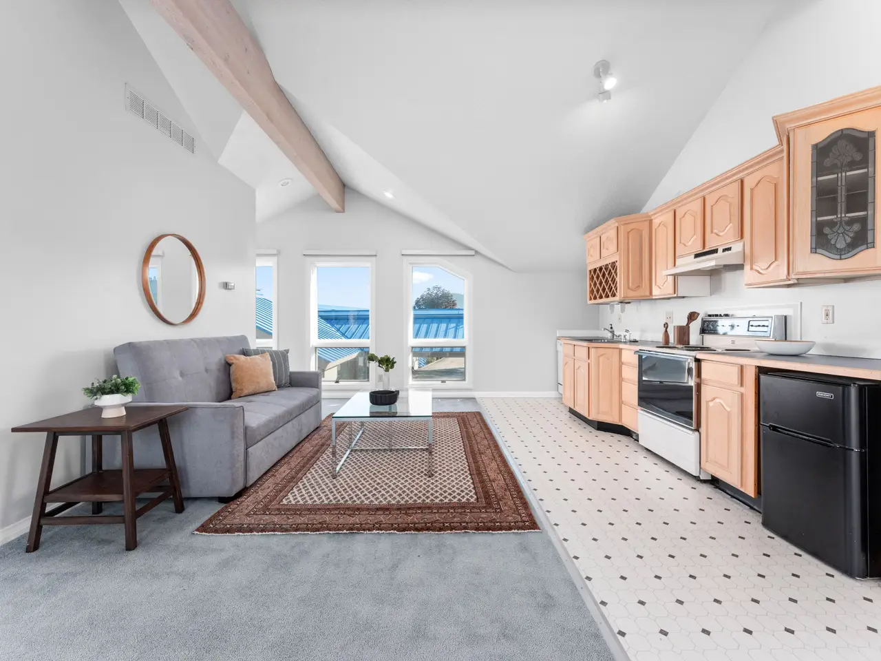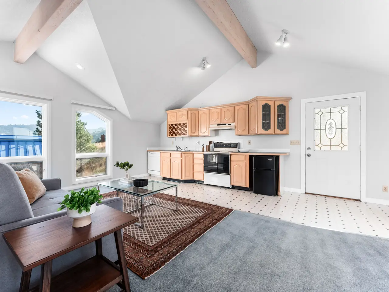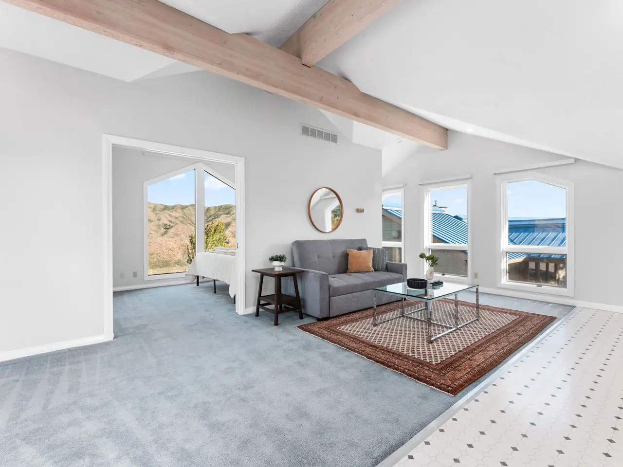 Cathedral ceilings with wood beams