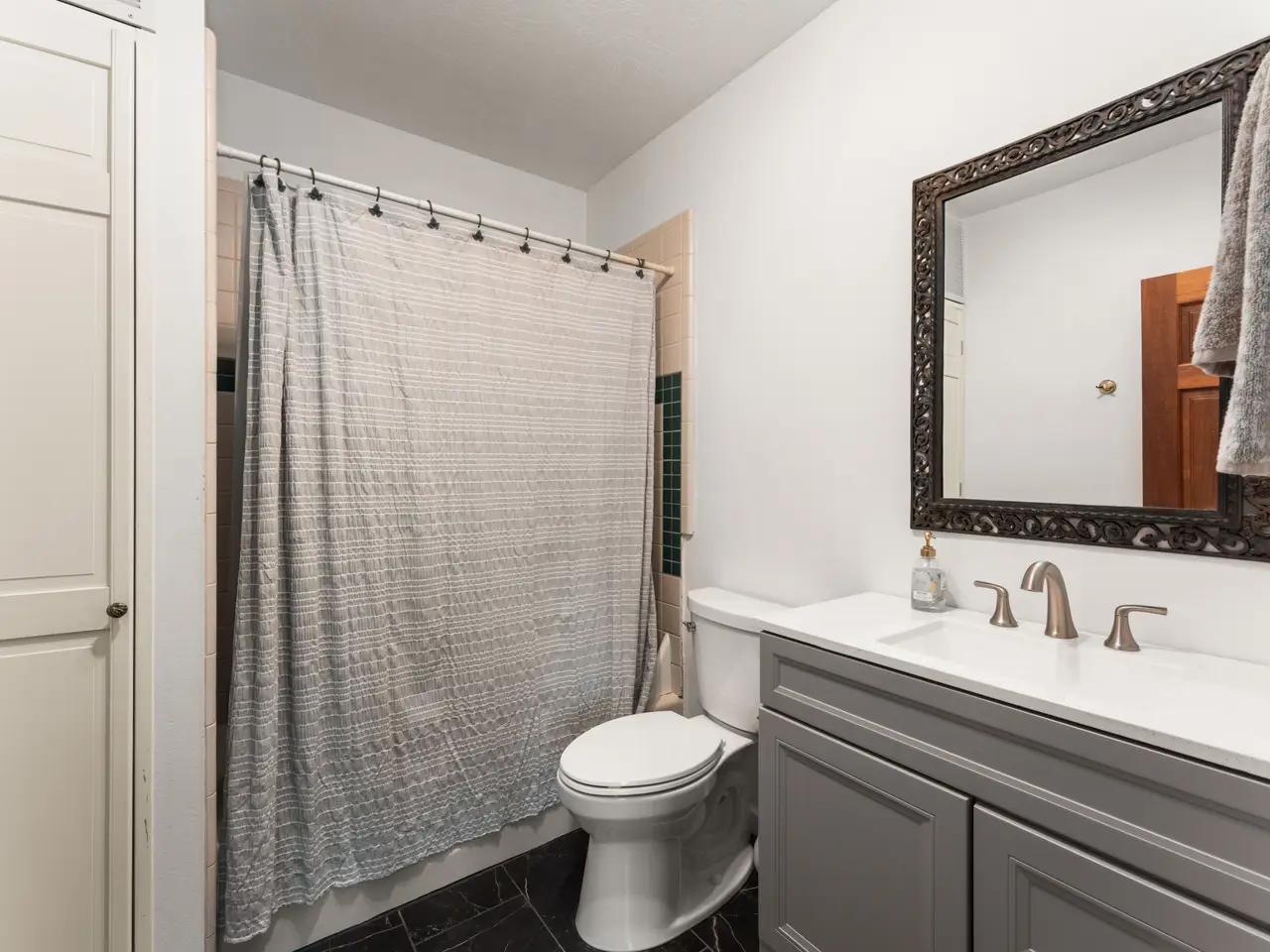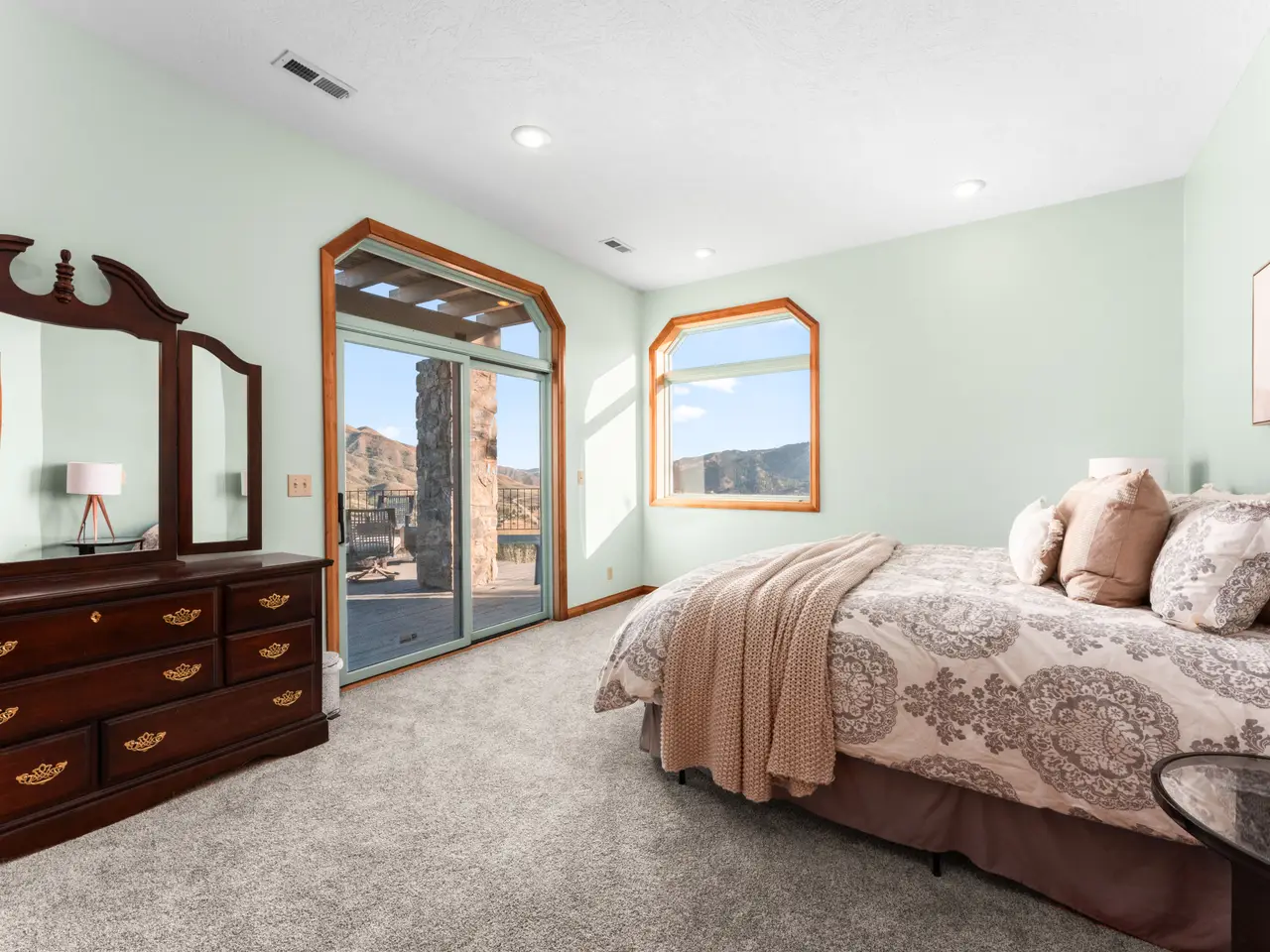 Main-level master suite with balcony