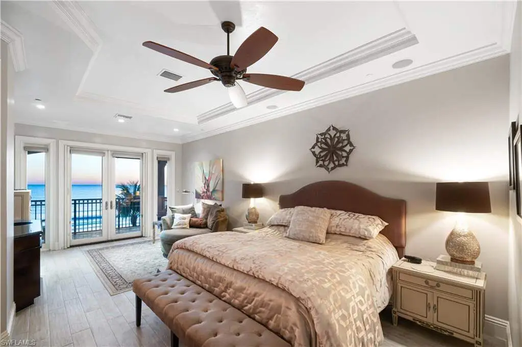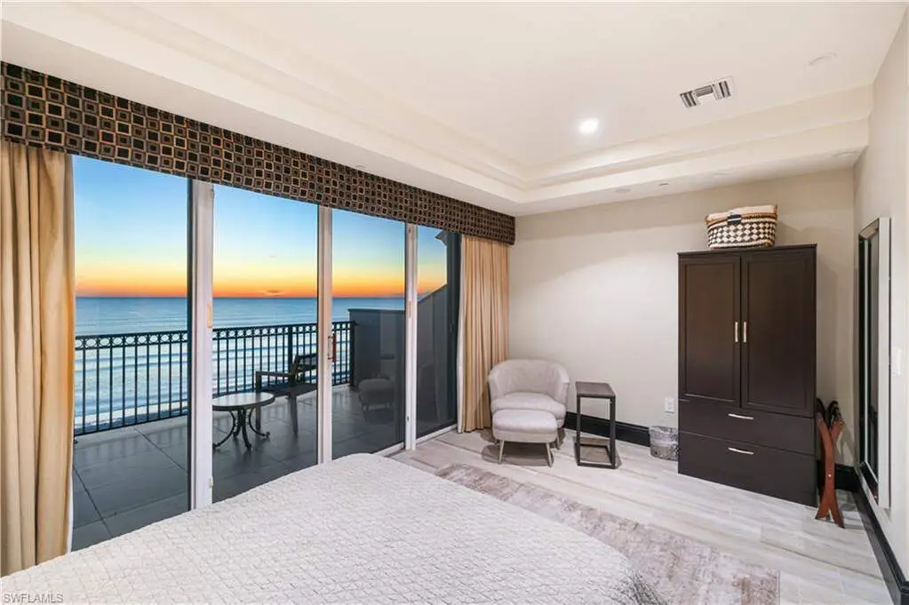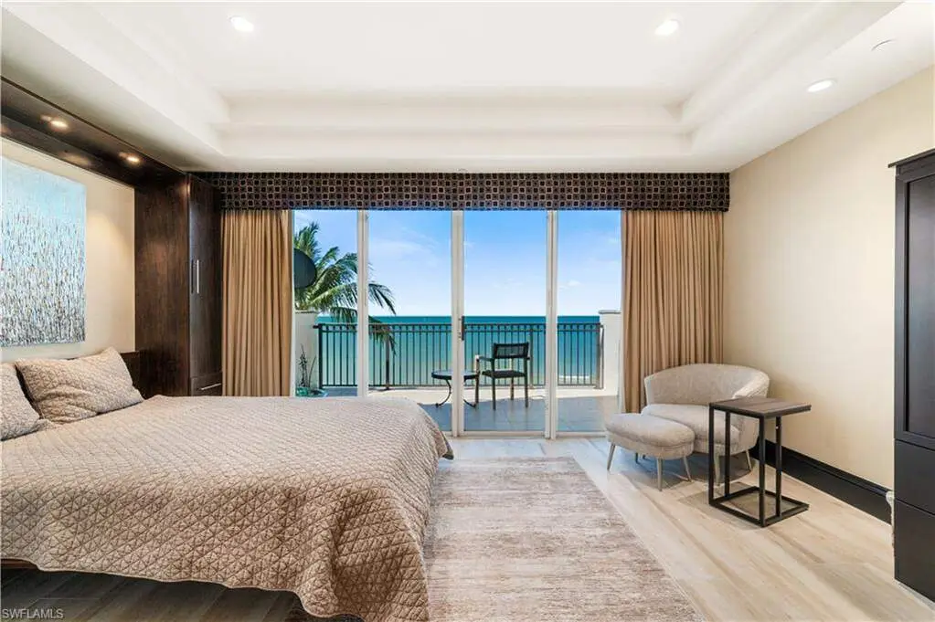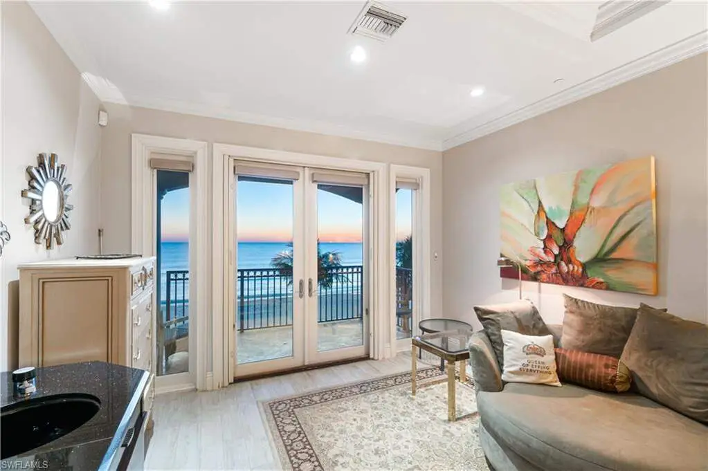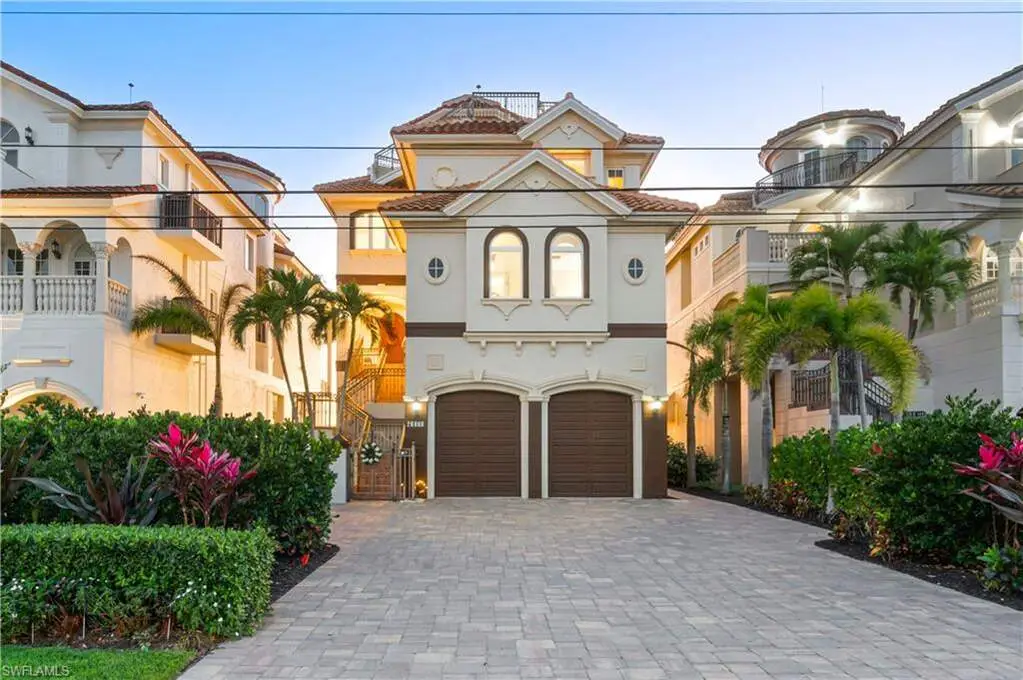 Beautiful direct beachfront home on Bonita Beach! Boasts spectacular Gulf views from nearly every window. This 4618 sq. ft. fortress is crafted with marble floors, tray ceilings, hurricane impact windows/sliders, HURRICANE SHUTTERS, NEWLY REPLACED PRIVATE ELEVATOR, NEW WATER HEATER & NEW GARAGE DOORS. This residence is an entertainer's dream with 4 bedrooms + den & a bonus room, 5.5 bathrooms & a pool/spa with a new pool heater & a water feature. Enjoy easy access to the beach, while also having a RARE fenced-in backyard that is perfect for pets or extra privacy! The main level offers an expansive lanai, 2 guest bedrooms with en-suite bathrooms, formal dining area with spectacular Gulf views, a wet bar with wine cabinet & a spacious kitchen. Chef's kitchen offers granite counters, double oven & a gas cooktop. The 3rd level includes a guest bed/bath, den & expansive primary bedroom with a sitting area, wet bar & private balcony to enjoy the spectacular sunsets. The 4th floor is perfect for a private guest wing with a media room, bonus room/bath, sundeck with phenomenal Gulf views & a sunrise balcony to perfectly capture both the Gulf & Bay views. Close to several fantastic restaurants and only a 10-minute drive to Mercato and the Promenade, with Waterside Shops, Coconut Point, Naples 5th Ave, and the International Airport nearby.