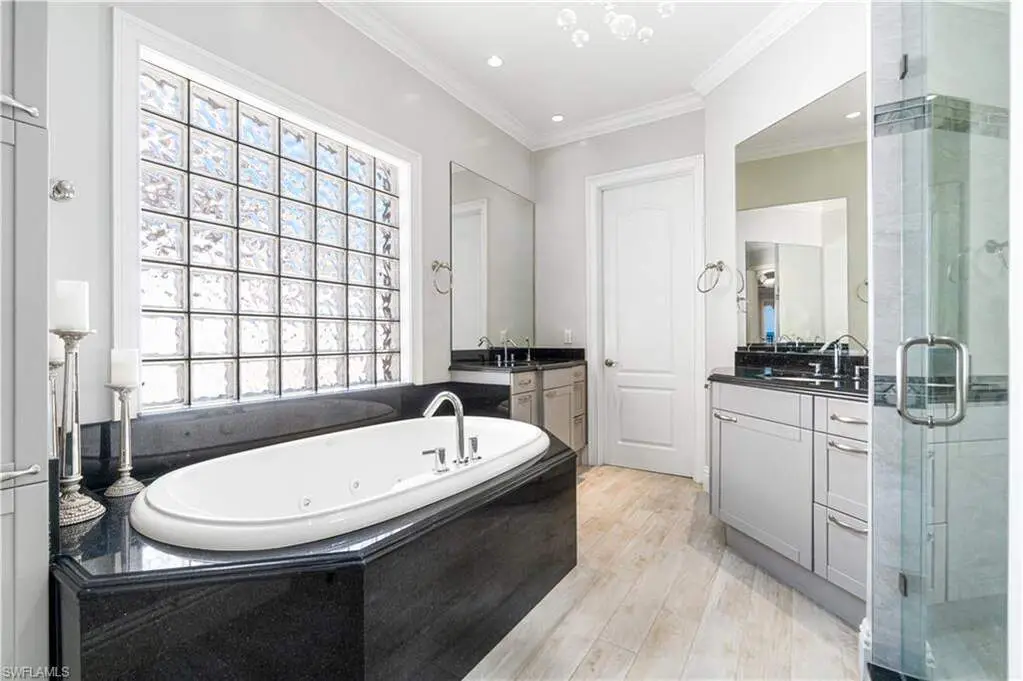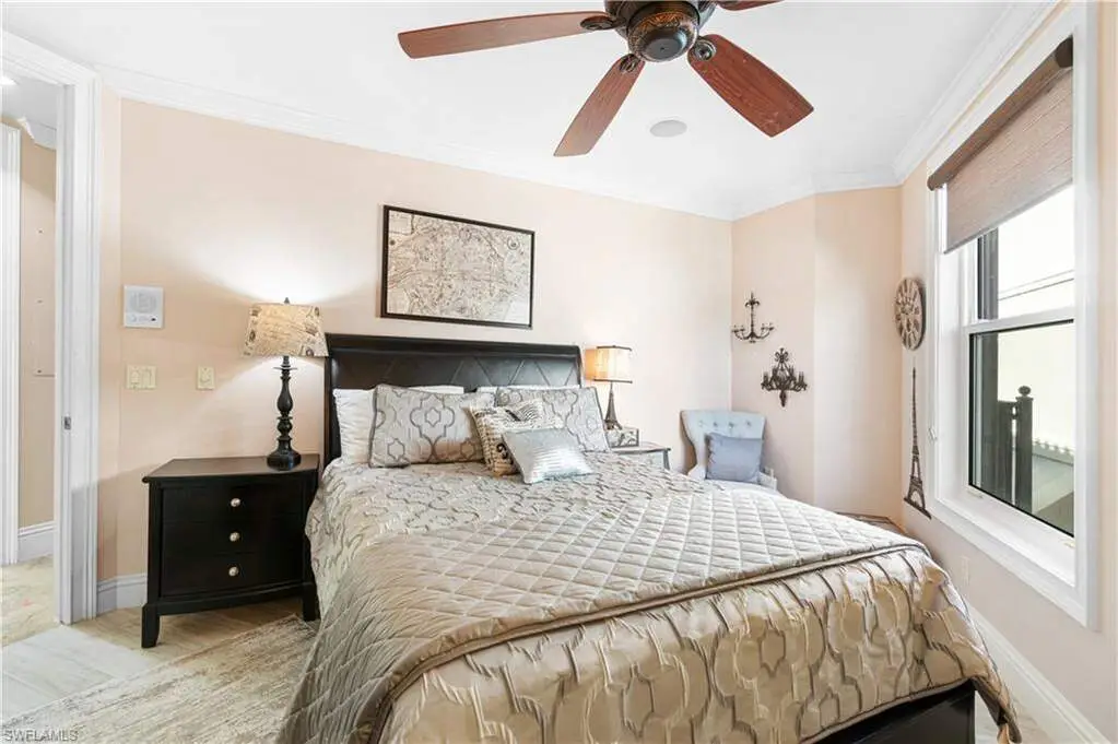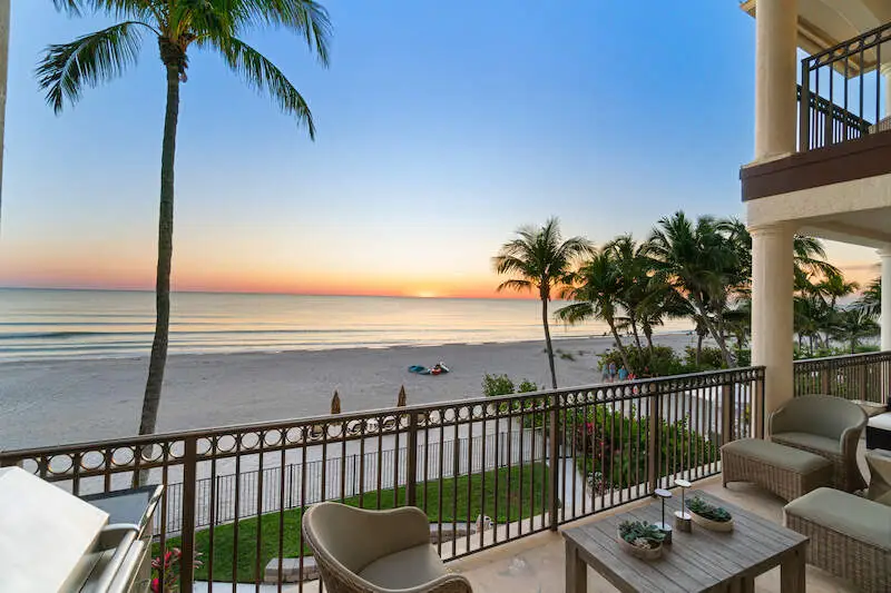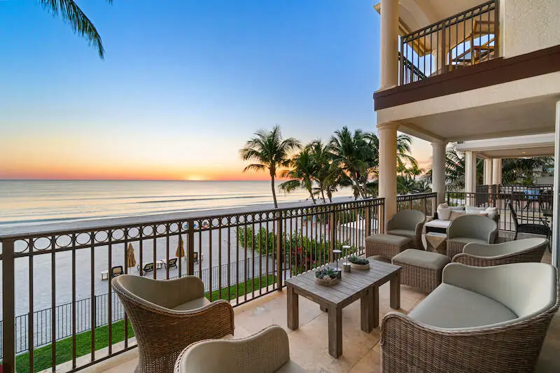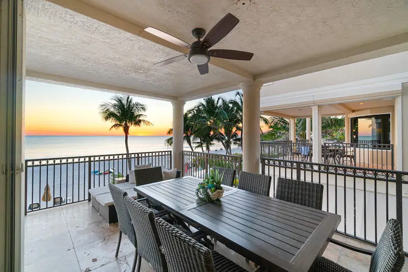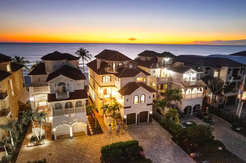 Beautiful direct beachfront home on Bonita Beach! Boasts spectacular Gulf views from nearly every window. This 4618 sq. ft. fortress is crafted with marble floors, tray ceilings, hurricane impact windows/sliders, HURRICANE SHUTTERS, NEWLY REPLACED PRIVATE ELEVATOR, NEW WATER HEATER & NEW GARAGE DOORS. This residence is an entertainer's dream with 4 bedrooms + den & a bonus room, 5.5 bathrooms & a pool/spa with a new pool heater & a water feature. Enjoy easy access to the beach, while also having a RARE fenced-in backyard that is perfect for pets or extra privacy! The main level offers an expansive lanai, 2 guest bedrooms with en-suite bathrooms, formal dining area with spectacular Gulf views, a wet bar with wine cabinet & a spacious kitchen. Chef's kitchen offers granite counters, double oven & a gas cooktop. The 3rd level includes a guest bed/bath, den & expansive primary bedroom with a sitting area, wet bar & private balcony to enjoy the spectacular sunsets. The 4th floor is perfect for a private guest wing with a media room, bonus room/bath, sundeck with phenomenal Gulf views & a sunrise balcony to perfectly capture both the Gulf & Bay views. Close to several fantastic restaurants and only a 10-minute drive to Mercato and the Promenade, with Waterside Shops, Coconut Point, Naples 5th Ave, and the International Airport nearby.