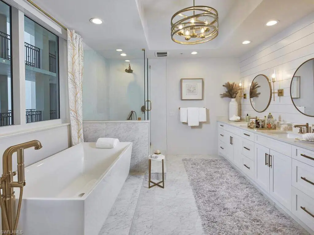 Experience Elevated Living in This Designer-Renovated Condominium with Unmatched Style and Panoramic Views If you're in search of a sophisticated, turnkey residence that effortlessly blends modern design with timeless elegance-your search ends here. This impeccably renovated condominium, professionally curated and furnished by Clive Daniel Interiors, was proudly featured in Design & Decor magazine for its extraordinary style and attention to detail. Reimagined by the acclaimed luxury builder Imperial Homes of Naples, every element of this home reflects quality and refinement. The interior showcases wide-plank wood-look tile flooring, bespoke designer lighting, and custom window treatments throughout, creating a warm yet contemporary ambiance. The expanded, chef-inspired kitchen is the heart of the home-designed for both entertaining and everyday living. It features custom cabinetry with elegant glass-paneled doors, a generous center island, a counter-height bar, and premium, built-in appliances. Flowing seamlessly from the kitchen, the open-concept living and dining areas invite you to relax or host in style. Expansive sliding doors open to a wraparound lanai with new hurricane-rated screens, offering unobstructed sunset views and a tranquil backdrop of lush tropical surroundings. The serene primary suite offers a true retreat, complete with a luxurious, spa-like bathroom, a fully customized walk-in closet, and private access to the lanai. Each detail has been thoughtfully designed to enhance comfort and functionality. Set within the exclusive Castella enclave, nestled across 11 acres of tropical landscaping, you're just steps away from the resort-style pool and spa. Additional recent upgrades include a newer HVAC system, a new water heater, and more. This residence is move-in ready-meticulously finished, professionally designed, and waiting for you to make it your own.