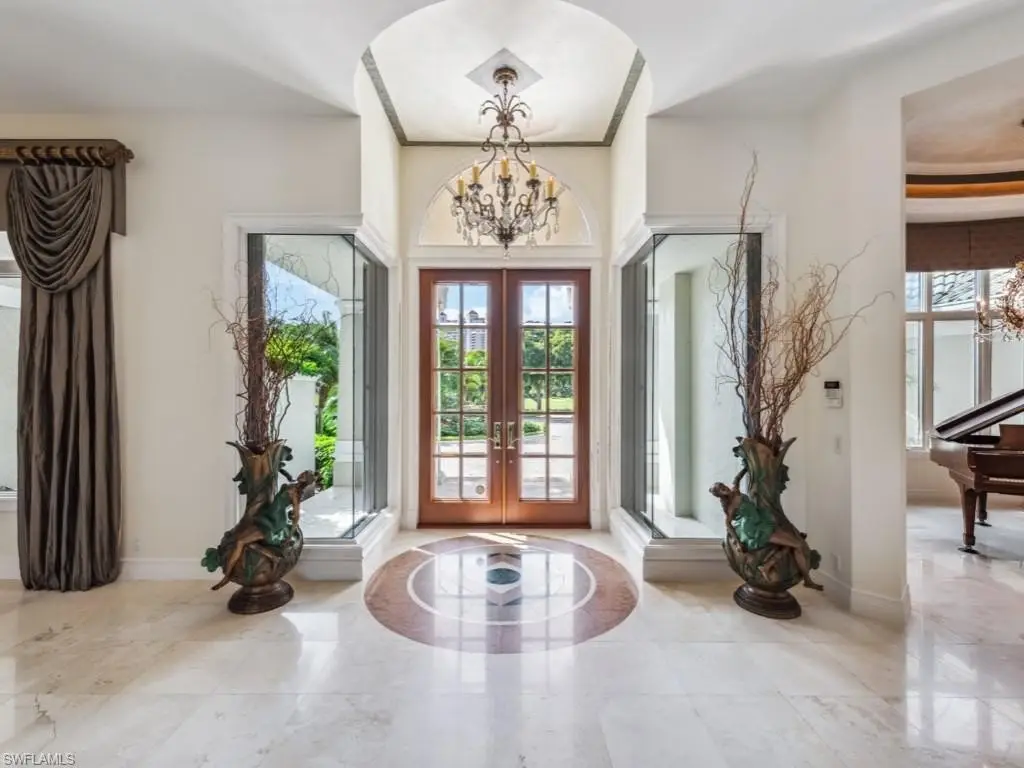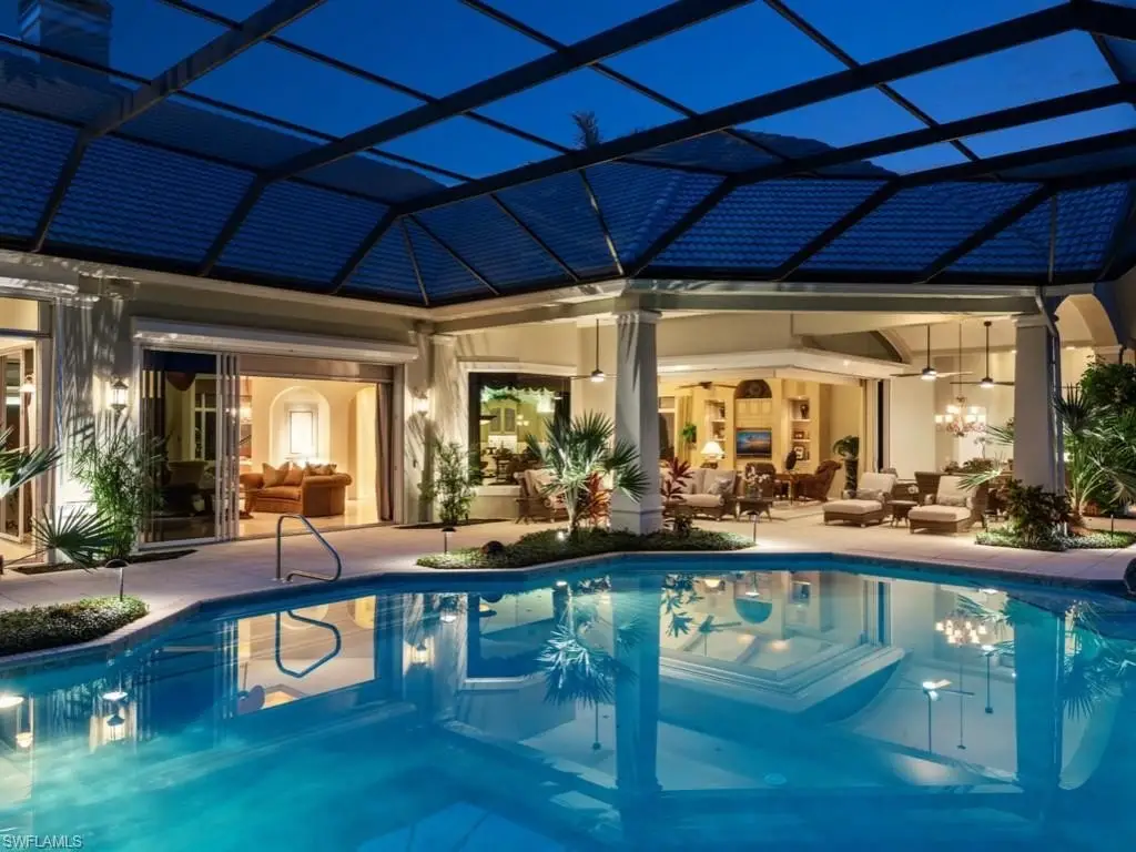 Welcome to this magnificent estate home in the highly desirable Baywoods neighborhood of Bonita Bay, where stunning water views surround you. The expansive infinity pool seamlessly disappears into the serene lake and nature preserve at the rear of the property. This exceptional home boasts 6,700 sq. ft. of air-conditioned living space, featuring an oversized circular driveway and a spacious three-car garage. Inside, you’ll find four generous bedrooms, four full bathrooms, and one half bath. The formal office offers panoramic views, complemented by a second, smaller office in the primary suite. Enjoy entertaining in the billiard/Florida room with a large wet bar also overlooking the pool and lake beyond. The first-floor primary suite is a true retreat, complete with a cozy sitting area and breathtaking lake views. The primary bath features a luxurious soaking tub, his and her vanities, and ample closet space. The fourth bedroom/loft area is ideal for guests complete with a sitting area, kitchenette and private en-suite bath. Step outside to discover expansive outdoor living areas, perfect for dining and lounging, including an outdoor kitchen and bar area, all under a spacious screened lanai. Safety is paramount with full hurricane protection for all windows and doors. NEW ROOF in June 2024. As a resident of Bonita Bay, you'll enjoy exclusive access to a wealth of amenities including a private beach park, the popular Backwater Jack's Restaurant, and several community parks. Riverwalk Park offers a kayak, canoe, and boat launch, along with pickleball and tennis courts for active living. For golf enthusiasts, there’s an opportunity to join the Country Club, which boasts five championship golf courses, a sports/racquet center with a resort-style pool, and a state-of-the-art fitness facility, along with a luxury spa and salon. Don't miss your chance to own this exceptional property in one of Bonita Bay's most sought-after neighborhoods, where luxury living meets nature’s beauty. Schedule your private tour today!