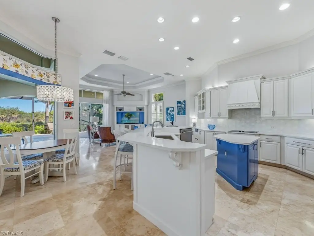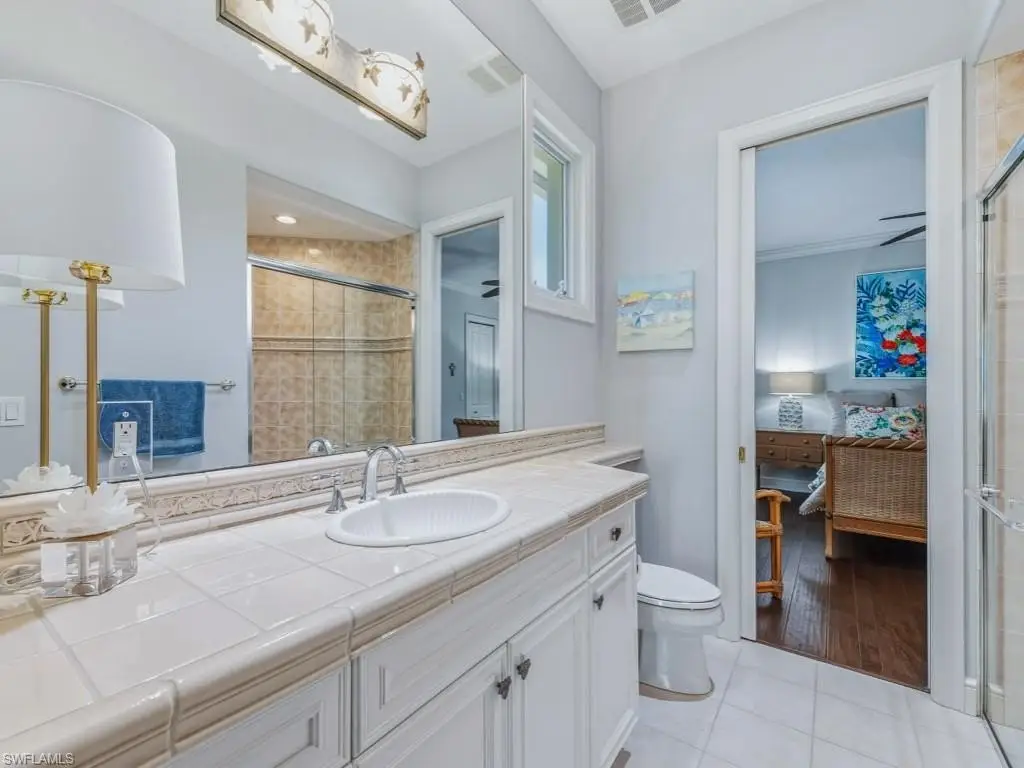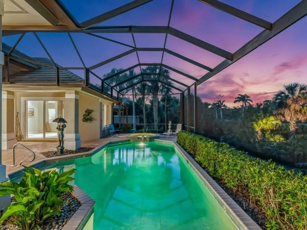 Experience the very best of the Bonita Bay lifestyle in this beautifully appointed 4-bedroom plus den, 4-bath residence in the highly sought-after Creekside at Bonita Bay. This home's sweeping golf-course views frame your daily life in natural beauty. Step inside to volume tray ceilings, crown molding, and picture windows and grand sliders that blur the line between indoors and out. The chef-ready kitchen features newer appliances. A family room with a cozy fireplace overlooks the pool and fairways, an inviting spot for relaxed gatherings or quiet evenings. Wake up to the serenity of golf-course vistas from the primary suite, offering private lanai access, a custom walk-in closet, and a spa-inspired bath complete with jetted tub, walk-in shower, and dual vanities. A second-floor private bedroom with its own ensuite bath is perfect for visiting guests. The dedicated den with built-in desk provides an ideal home office, or a flexible space for guests. Florida living unfolds effortlessly outdoors with a spacious screened lanai, expansive covered seating area, outdoor kitchen, and sparkling private pool. A full pool bath adds convenience for both owners and guests. Enjoy peace of mind with a 2020 roof, manual hurricane shutters, and a 2-car attached garage. As a resident of Bonita Bay, you'll enjoy exclusive access to a wealth of amenities including a private beach park, the popular Backwater Jack's Restaurant, and several community parks. Riverwalk Park offers a kayak, canoe, and boat launch, along with pickleball and tennis courts for active living. For golf enthusiasts, there’s an opportunity to join the Country Club, which boasts five championship golf courses, a sports/racquet center with a resort-style pool, and a state-of-the-art fitness facility, along with a luxury spa and salon. Your Bonita Bay beauty awaits. Whether hosting lively gatherings, enjoying quiet mornings by the pool, or savoring fairway views, this home delivers an unmatched lifestyle.