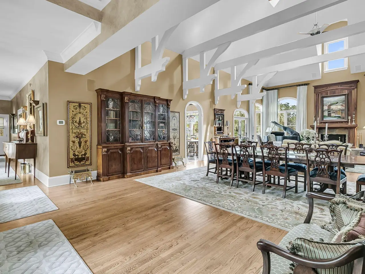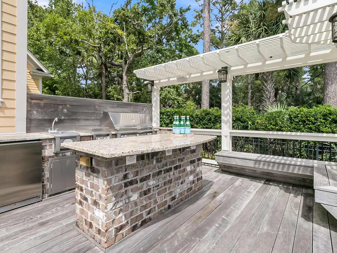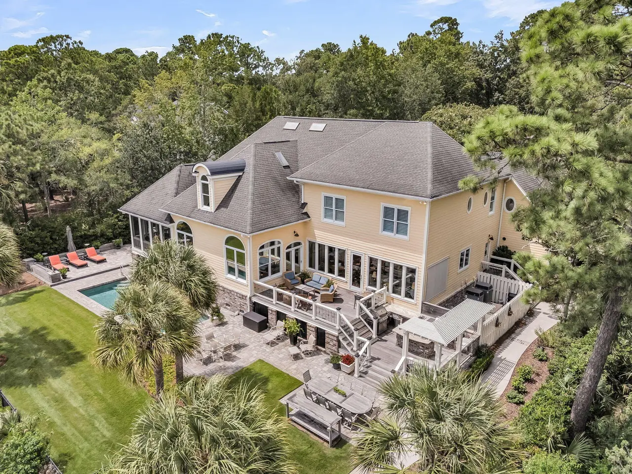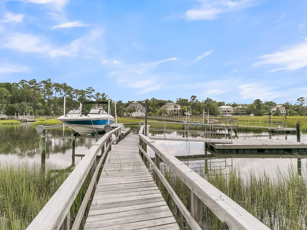 Welcome home to Mount Pleasant's prestigious gated community of Dunes West. This meticulously maintained custom-built waterfront home on over an acre of land offers 6,075 square feet of living space, and is thoughtfully set back from the street for enhanced privacy and panoramic views. Enjoy direct creek access from your private dock, complete with a 7,000-pound boat lift and floating dock - ideal for boating, fishing, or simply soaking in the serene Lowcountry lifestyle. The main level features an oversized open concept living room and dining room, a home office perfect for the work at home couple, and a sun-drenched sunroom/porch with marsh and creek views. Speciality window coverings allow for the sunroom to be used year round with the windows open or closed. The gourmet kitchen is functional and inviting with views of Toomer Creek from every window and features a large kitchen island, stainless steel Wolf and Sub-Zero appliances, a copper sink, a built-in TV, an eat-in area, and a cozy area to watch TV - with outdoor access to the deck, the outdoor kitchen, the backyard, the pool and the dock. The butler's pantry, which features a sink, a second dishwasher, and a wine fridge, also serves as the laundry room with plenty of extra storage, including pull out drawers in the cabinets. The large first-floor primary suite features a gas fireplace, "his" and "hers" walk-in closets with custom built-ins, and motorized shades and blackout shades to ensure a good night's sleep. The primary bathroom features two separate vanities, a jetted soaking tub, a separate walk-in shower, a private water closet and outside access to the pool and backyard. A spacious "bonus room" with a separate staircase is located over the primary bedroom and provides tons of storage or could easily be converted to a second home office, home gym or hobby space. Upstairs, you will find three additional bedrooms - two at the back of the home with views of the marsh and creek. The attached FROG serves as the 5th bedroom/media room and features a vaulted ceiling, a large walk-in closet, a wet bar and a full bathroom. A full bath and a half bath complete the second floor living space. The 2-car attached garage features epoxy flooring, plenty of built-in storage and access to both the driveway and the backyard. The backyard is an outdoor oasis complete with a saltwater pool, several seating & lounging areas, (including patio and deck space), an outdoor shower, and an outdoor kitchen - all overlooking the creek and marsh. The fenced in yard is perfect for your four legged friends. Dunes West offers an exceptional lifestyle with tree-lined walking and jogging trails, a play park, a boat launch, and community docks. Optional membership to the Dunes West Golf and Racquet Club includes access to an Arthur Hills-designed 18-hole golf course, three pools, tennis courts, a fitness center, and more. Don't miss your chance to own this extraordinary property in Dunes West!