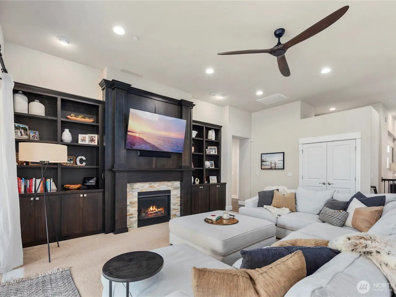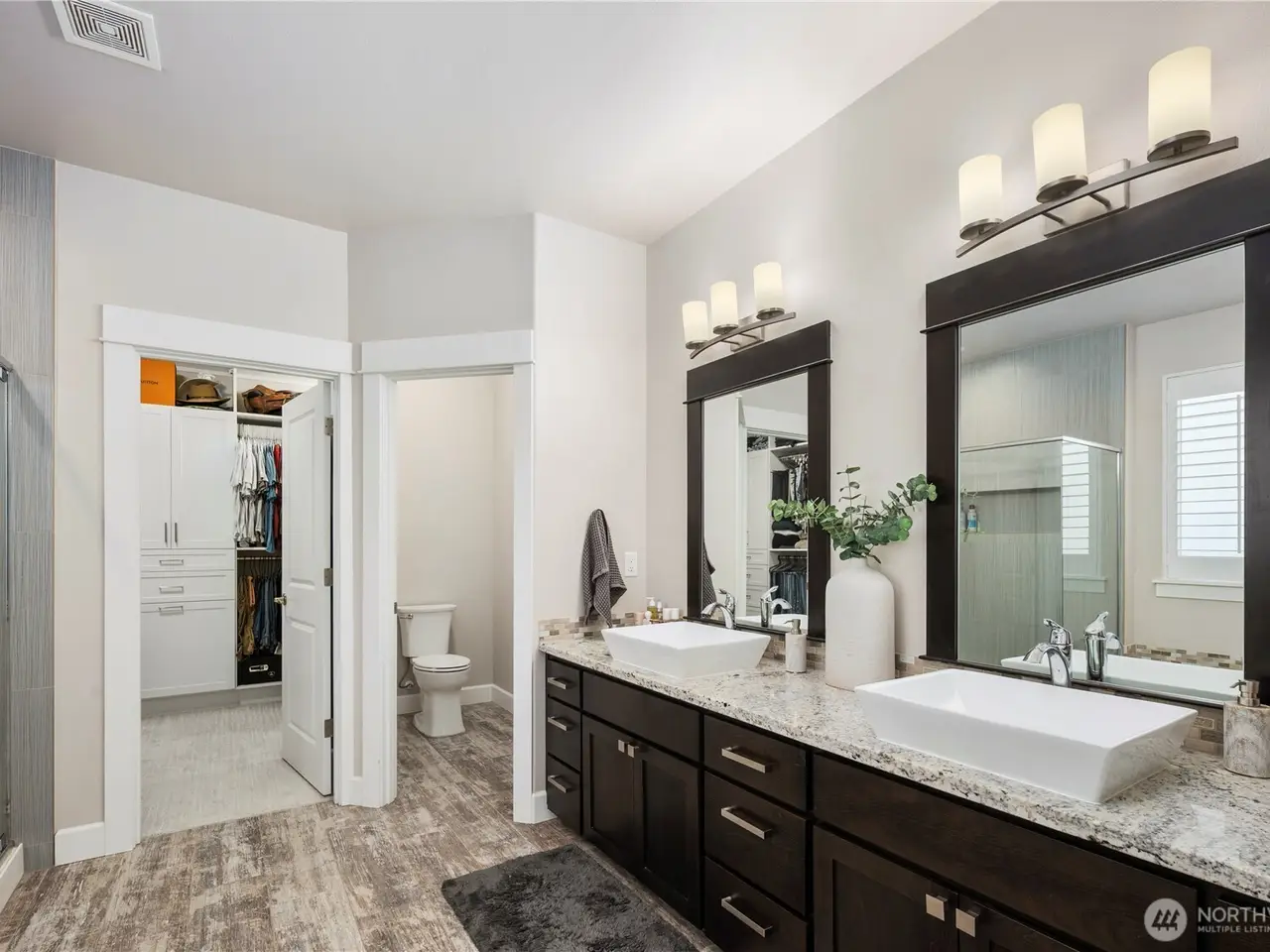 Experience refined living in this stunning Rambler-Style home w/ a Finished Basement, tucked away in a quiet cul-de-sac & backing to a greenbelt for exceptional privacy. Step inside to soaring vaulted ceilings & extensive millwork that create a warm, elegant atmosphere. The open-concept layout seamlessly connects the living, dining & kitchen areas--perfect for both everyday living & entertaining. Main Floor features Well-Appointed Primary Suite, Laundry Rm & Office Space. Downstairs, you'll find 4 additional bedrooms, mini kitchenette & Rec Rm - ideal for guests or multi-gen-living. Enjoy the comfort of A/C, Tankless WH, Plantation Shutters, Custom Closet Organizers, New Exterior Paint, SBLSD, Tehaleh Amenities, Parks, Trails & More!