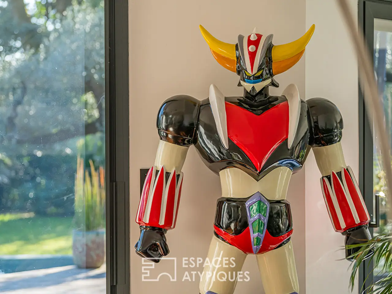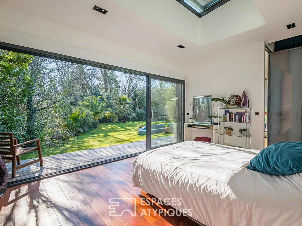 Nestled in the heart of a preserved oasis, hidden from view, this timeless haven of peace invites you to a unique experience. Designed in 2017 by a talented architect, who put all his soul and inspiration into the creation of this unique place, this contemporary house is a true architectural feat where every detail has been thought out to enhance space and light. With a surface area of 320 sqm, it extends over a vast plot of 1,800 sqm, offering an exceptional living environment. From the entrance, nature invites itself inside thanks to the large bay windows that open onto a landscaped garden decorated with a swimming pool, featuring a majestic olive tree and a soothing atmosphere conducive to serenity. In the evening, let yourself be transported by the magic of the starry sky, visible through an opening specially designed to contemplate infinity. This single-storey house consists of a large living room with fireplace, a dining room bathed in light, ideal for convivial meals facing the garden, and an open kitchen designed to combine aesthetics and functionality. The sleeping area includes a master suite with adjoining bathroom, a child's bedroom and two large rooms to be arranged according to your wishes: additional bedrooms, office or relaxation area. A converted basement accommodates a bedroom with bathroom, ideal for preserving privacy and comfort. In winter, enjoy the warmth of the fireplace. In summer, relax in a Balinese-inspired garden, with your feet in the water, lulled by the murmur of the wind in the leaves. A house with a unique character, where well-being and the sweetness of life reign. Only 20 minutes from Bordeaux and 40 minutes from the sea, this exceptional property benefits from an ideal location. ENERGY CLASS: A / CLIMATE CLASS: A Estimated average amount of annual energy expenditure for standard use, established from 2021 energy prices: between EUR1,020 and EUR1,430/year. Laura Gaillard (EI) Sales Agent: 07 87 38 57 87 / RSAC number: 952 560 753 Bordeaux. REF. BORDEAUX-1956EABX Additional information * 7 rooms * 5 bedrooms * 2 bathrooms * 1 bathroom * Outdoor space : 1892 SQM * Parking : 2 parking spaces * Property tax : 4 438 € Energy Performance Certificate Primary energy consumption a : 52 kWh/m2.an High performance housing