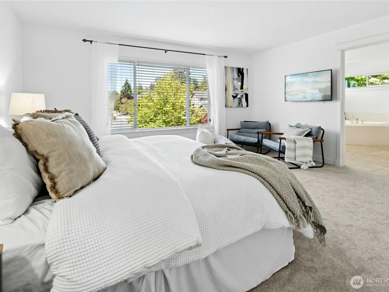 With a thoughtful price improvement, this updated Murray Franklin resale in Carriage Park at Tambark Creek is an incredible & rare opportunity! Offering 5 beds/2.75 baths--including a main floor bedroom/office w/ full bath--this home is as versatile as it is beautiful. Fresh interior paint, brand new carpet, central A/C & an EV charging outlet bring comfort & convenience to this beautiful home. The chef's kitchen features granite counters, SS appliances & plenty of space to gather. Upstairs, the expansive primary suite includes a WIC & spa-like 5-piece bath. Nestled in a quiet cul-de-sac in a top-rated school district & just minutes to Mill Creek Town Center, shopping, parks & I-5/405, this home blends style, updates AND location! Don't wait!