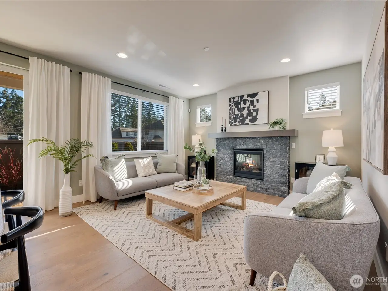 *North-Facing Lot Backing to Open Space* Coyote Ridge is Harbour Homes' newest community located in the North Creek area of Bothell offering 27 modern farmhouse-style homes. Served by the Edmonds School District and centrally located to Alderwood shopping & dining, Mill Creek Town Center, and easy access to both I-5 and I-405 make this location one you'll love. Plan 2330 features 5 beds, 2.75 baths, bonus room & patio. The interior is styled with quartz countertops, modern wide plank flooring & white cabinetry. Smart home technology like EV charger pre-wire, heating & cooling heat pump, keyless door entry and more are all included! Site Registration Policy. No minors in homes under construction.