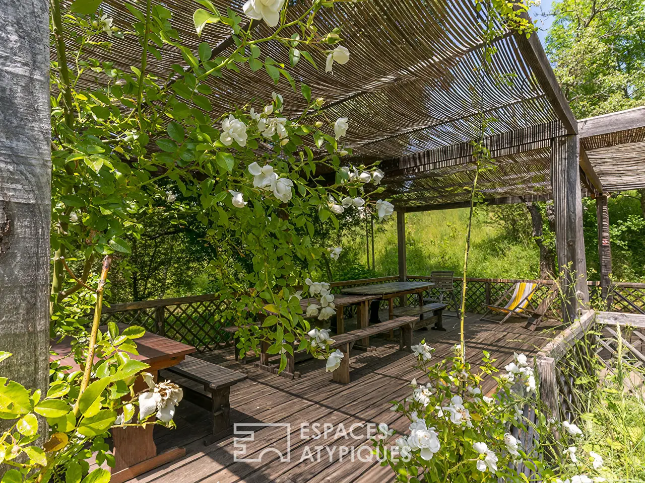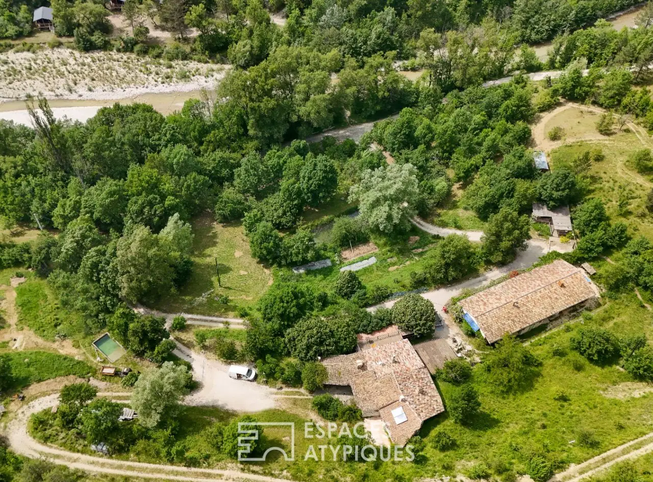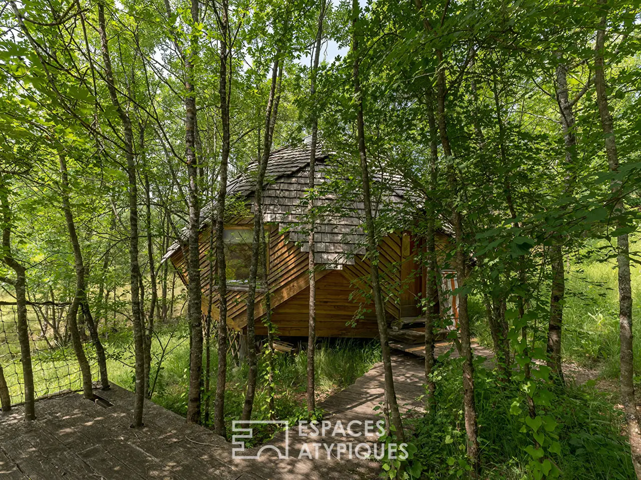 It's a unique place, both intimate and welcoming. Ideally located in the immediate vicinity of the Pas des Ondes lake, this property is built around a charming main house. This family home offers comfortable living spaces, including two bedrooms and a bright workshop upstairs that opens onto several beautiful terraces. It is complemented by an adjoining studio, perfect for entertaining family and friends or considering a self-employed activity. For optimal comfort and a gentle, enveloping warmth, the main house is heated by a masonry stove, ensuring a pleasant atmosphere and good energy efficiency. In addition, solar panels supply the hot water, highlighting an environmentally friendly approach and optimized energy management. The soul of this property also lies in its facilities dedicated to well-being and the art of living, while a professional kitchen paves the way for exceptional culinary experiences, for hosting training courses or seminars. A detached building proves to be a real gem: it houses a studio designed for accessibility for people with reduced mobility (PRM), a valuable asset for a quality welcome. Adjacent, a vast reception room, bathed in natural light, is ideal for practices such as yoga, dance, or any other activity requiring an inspiring and modular space. A lounge with an insert invites conviviality and evenings by the fire, adding a warm touch to the whole. To top it all off, the property is distinguished by the presence of a group of six atypical cabins and typies. True cocoons of charm, they offer an unusual and exotic accommodation experience, promising unforgettable moments in the heart of nature. These cabins, imbued with a singular poetry, open up beautiful prospects for a high-end tourist activity or simply for the pleasure of hosting differently. The 5 hectares of land surrounding this property are just as exceptional, offering a natural setting of great richness. There's a spring that feeds the house, a rare and precious element, as well as a pond, contributing to the biodiversity of the place. Below the land, a river meanders, adding a bucolic and soothing touch to the whole. This property offers a thousand and one possibilities, where calm combines with authenticity and serenity. It's an ideal place to develop a refined hospitality project, or a space to express your creativity. REF. 541DA Additional information * 15 rooms * 4 bedrooms * 4 shower rooms * 1 floor in the building * Outdoor space : 50000 SQM * Parking : 12 parking spaces * Property tax : 1 100 € Energy Performance Certificate Primary energy consumption f : 373 kWh/m2.year High performance housing