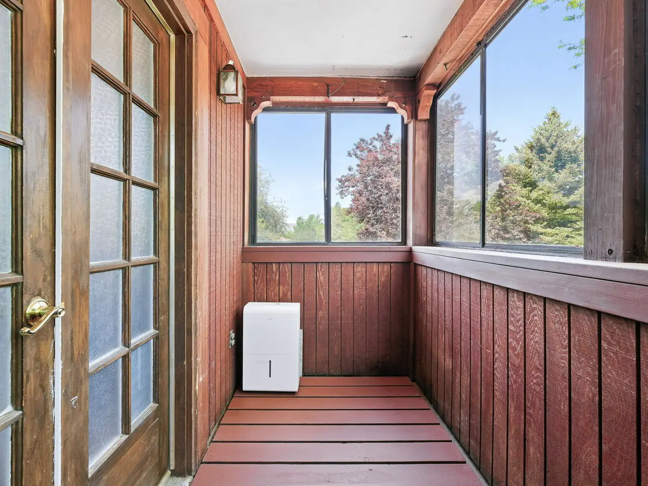 Bay window with backyard views