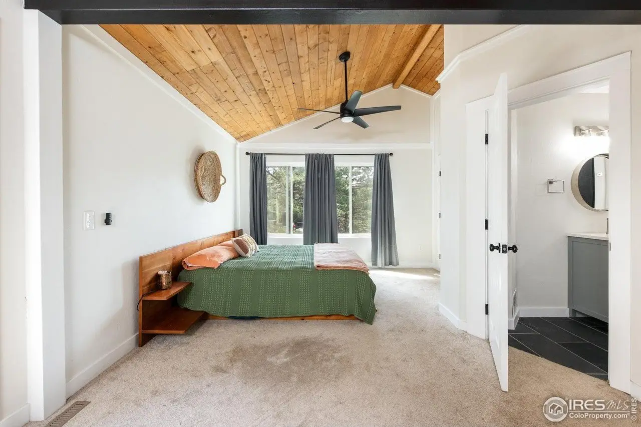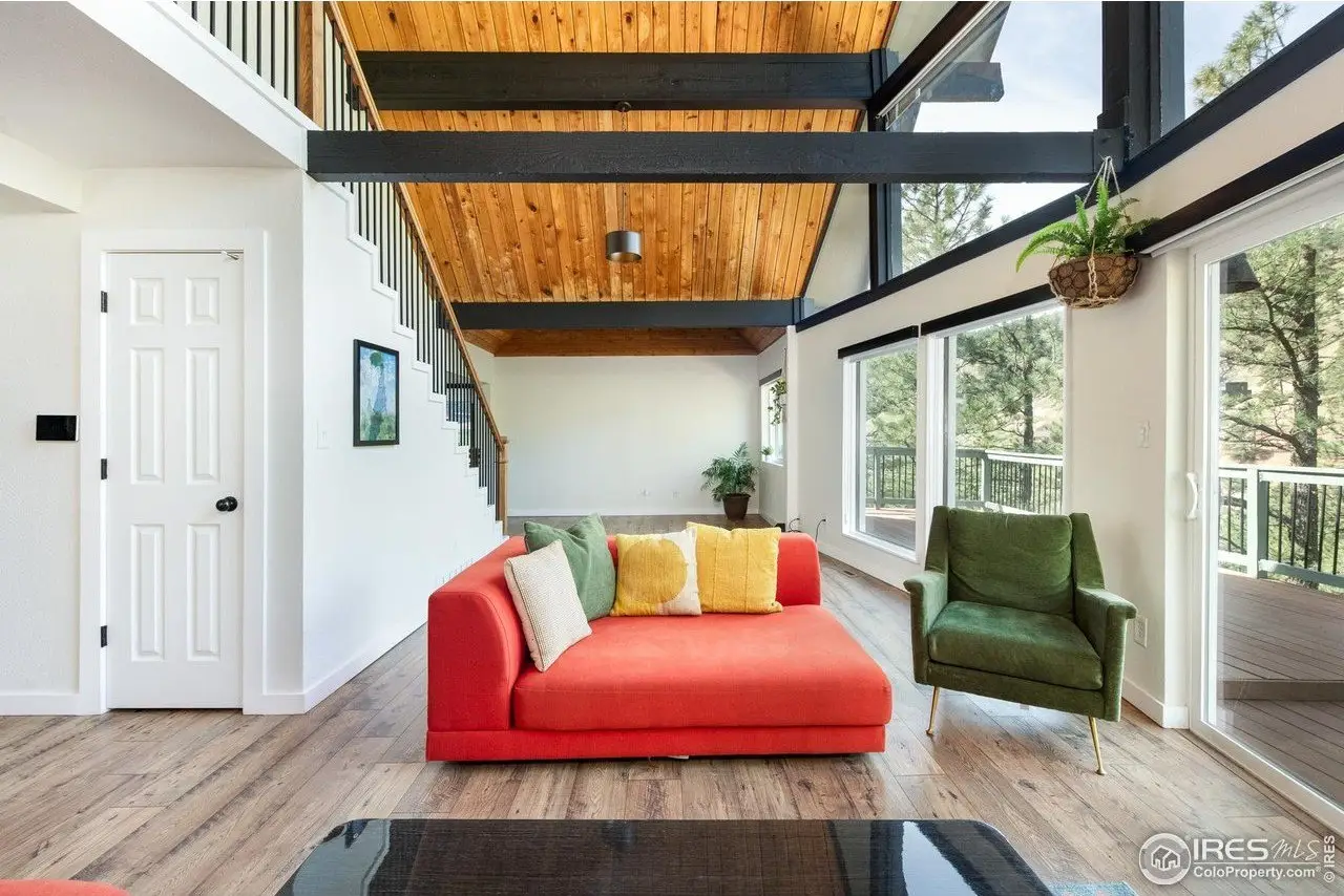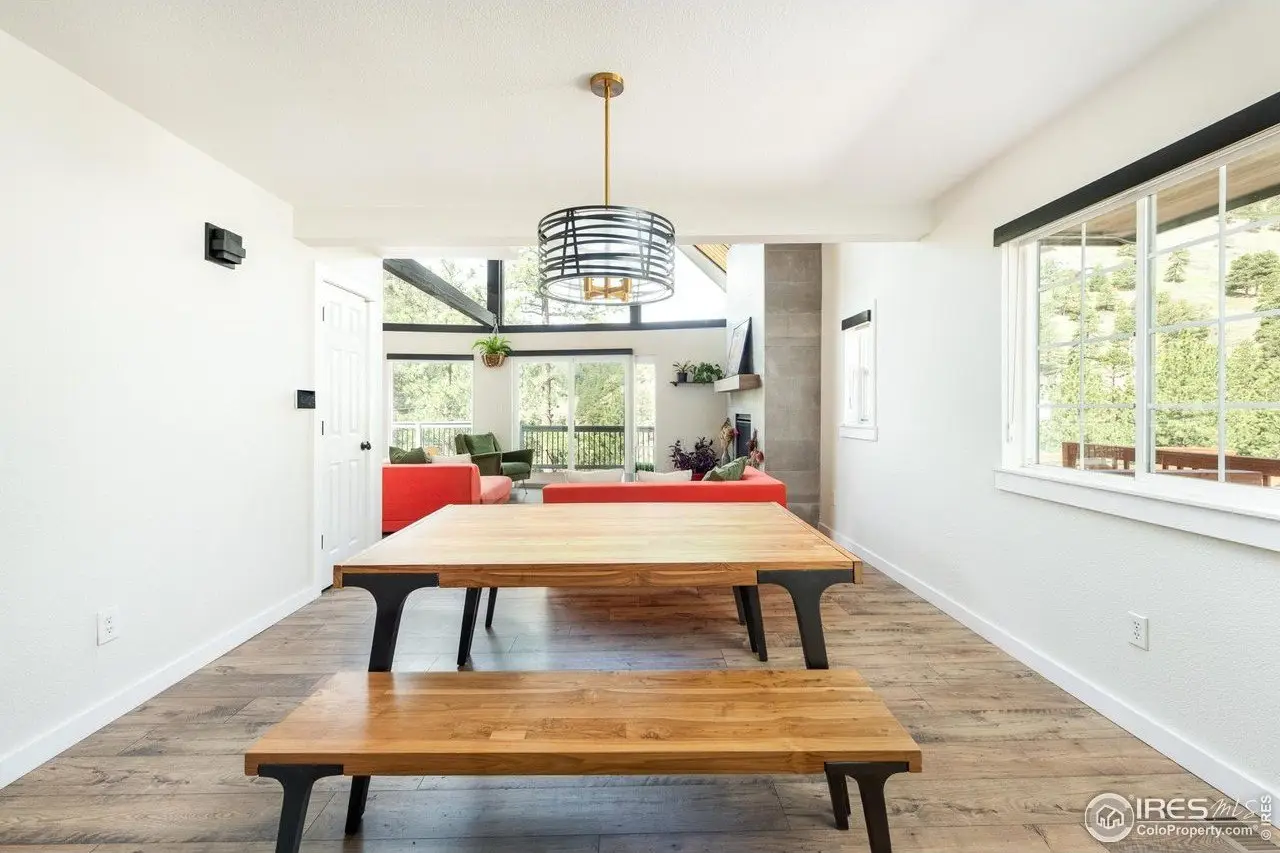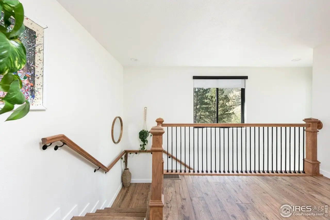 Located in the sought-after Pine Brook Hills community, this beautifully remodeled home offers the best of mountain living just 10 minutes from downtown Boulder and steps from scenic hiking trails. Soaring 20-foot ceilings brighten the living room, leading to an inviting main floor with a spacious living area, dining room, updated kitchen, bedroom, and full bath. Upstairs, the primary suite features a private patio alongside an additional bedroom and bath. The low-maintenance backyard includes crisp white rock landscaping and a flat side yard perfect for relaxing or entertaining. With thoughtful updates throughout the last two years-including solar panels, a new electrical panel, motorized blinds, a new furnace and water heater, induction stove, lower-level ADU entrance, added shelving, radon mitigation, enhanced HVAC ventilation, new ceiling fans, Ring doorbell, and updated front-yard lighting-this move-in-ready home pairs comfort and style in one of Boulder's most desirable neighborhoods.