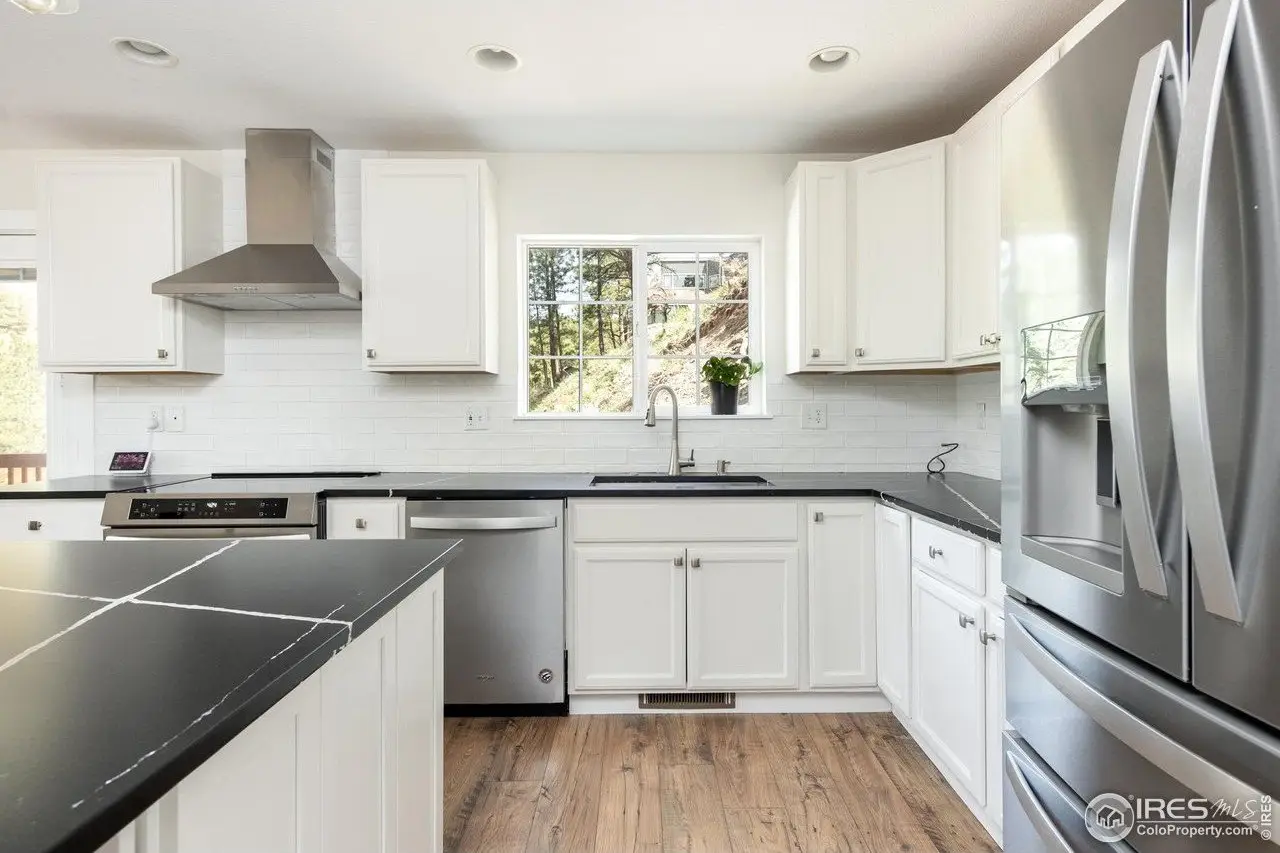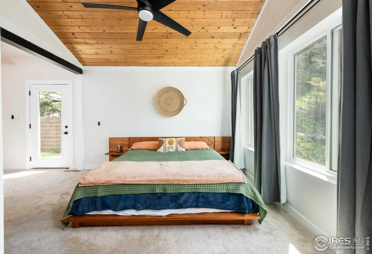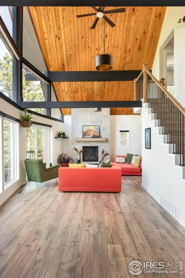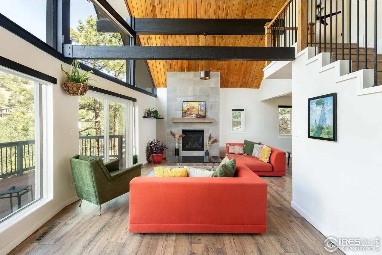 Located in the sought-after Pine Brook Hills community, this beautifully remodeled home offers the best of mountain living just 10 minutes from downtown Boulder and steps from scenic hiking trails. Soaring 20-foot ceilings brighten the living room, leading to an inviting main floor with a spacious living area, dining room, updated kitchen, bedroom, and full bath. Upstairs, the primary suite features a private patio alongside an additional bedroom and bath. The low-maintenance backyard includes crisp white rock landscaping and a flat side yard perfect for relaxing or entertaining. With thoughtful updates throughout the last two years-including solar panels, a new electrical panel, motorized blinds, a new furnace and water heater, induction stove, lower-level ADU entrance, added shelving, radon mitigation, enhanced HVAC ventilation, new ceiling fans, Ring doorbell, and updated front-yard lighting-this move-in-ready home pairs comfort and style in one of Boulder's most desirable neighborhoods.