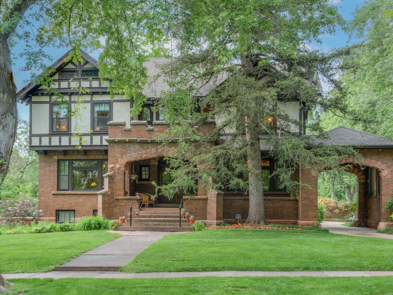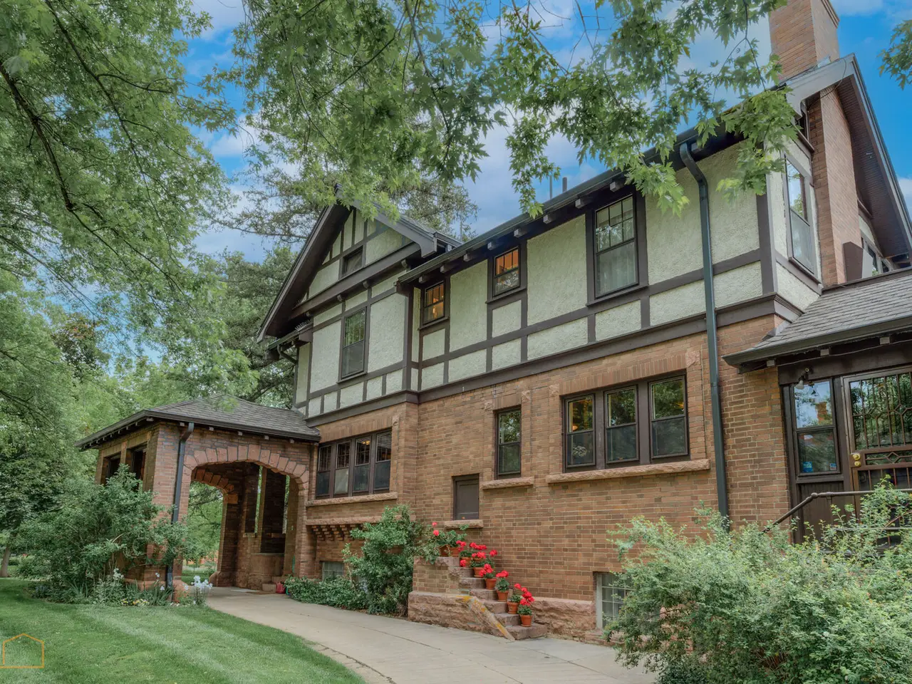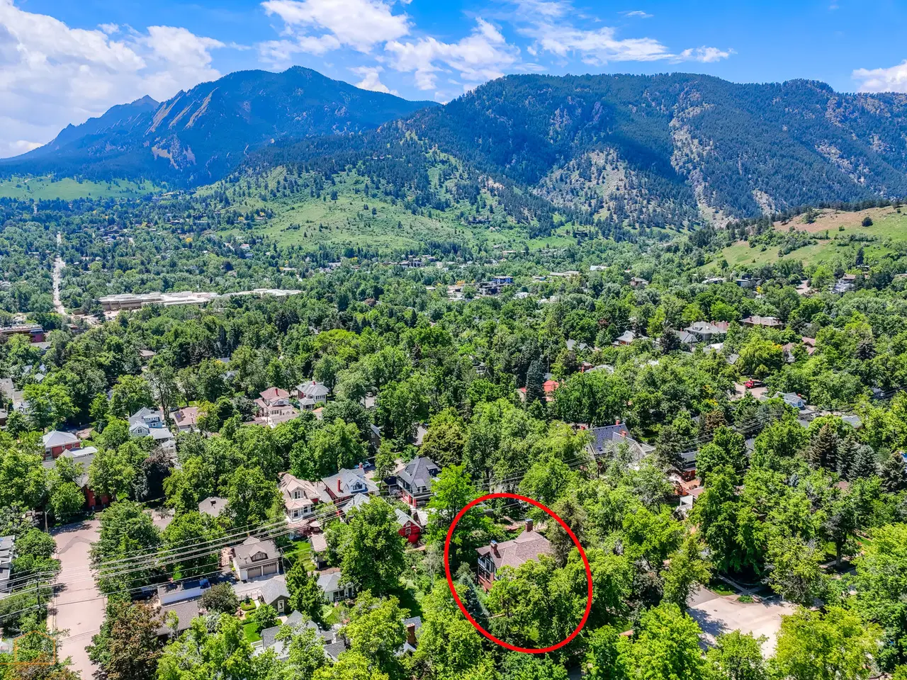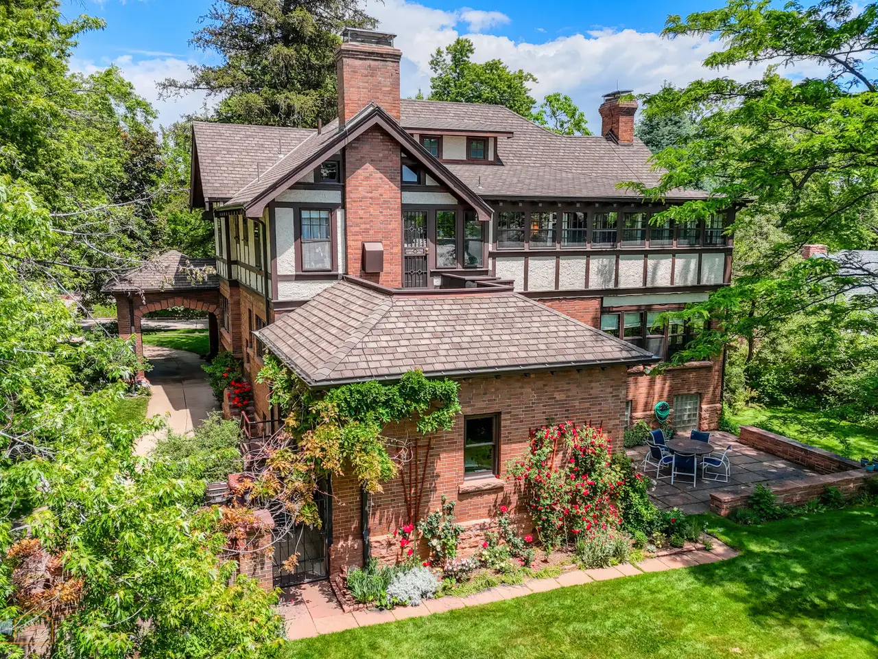 One of the most Iconic Homes on Mapleton Hill, the Eastman Reid Collins Home is an historic treasure on a rare 13,802 square foot corner lot. The stunning Tudor Revival style residence has been meticulously maintained by the same owners for 50 years. Now, this classic style home is ready for its next chapter. The appeal of the property is dramatic from the street, highlighted by the timeless brick, stone and stucco exterior details. A spacious covered front entry and porch welcome you to the home and connect to the porte cochere, perfect for arriving guests. Enter into the foyer and you'll immediately feel the warmth and charm of the perfectly designed and preserved woodworking. Both the spacious living and dining rooms have beautiful beamed ceilings, beveled glass, classic original lighting and built-in cabinetry. The living room opens to a delightful sunroom overlooking the back patio and yard. The dining room, with vintage tapestries and sideboard/serving area flows into the kitchen which has been remodeled with custom cherry cabinetry. A breakfast room is next to the kitchen. Upstairs, the central hallway accesses the 5 bedrooms and an upper level sunroom. The layout of the generous size bedrooms allows flexibly for new owner to use as they wish. The primary bedroom opens through french doors to a library/study with built in bookcases and many windows. The hallway connects to a back deck which can easily be enhanced to enjoy the views of the Flatirons. The large attic could be finished if additional space is needed. The lower level of the home is filled with light and includes a cozy family room with fireplace, 587 bottle capacity wine cellar, 3/4 bath and laundry. Outside, the expansive yard and gardens wrap around the home, encircled by a sandstone and brick wall making the entire area secluded and peaceful. In the spring, the many flowering plants and fruit trees come alive and make the yard and private patio a special place to enjoy this unique setting.
