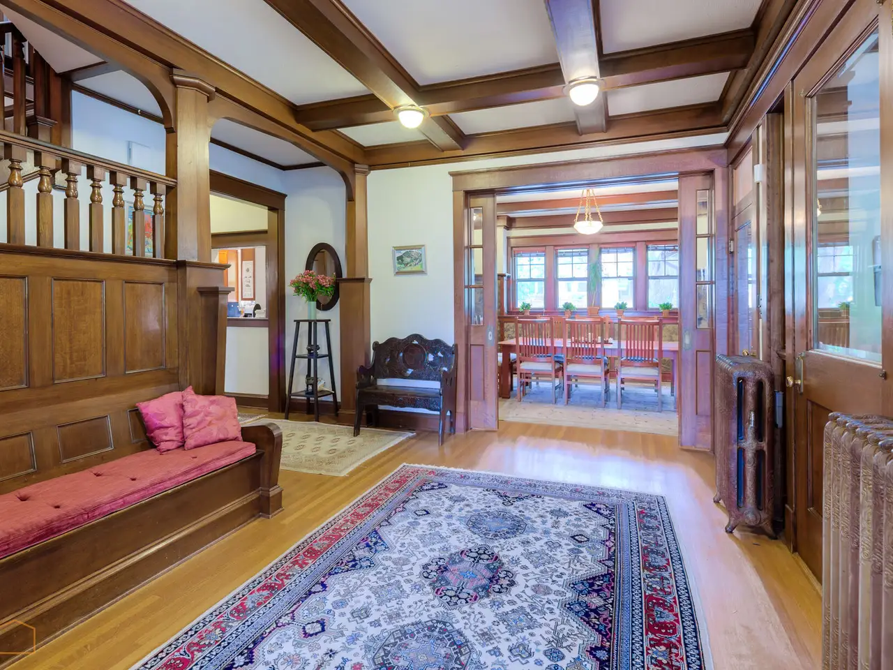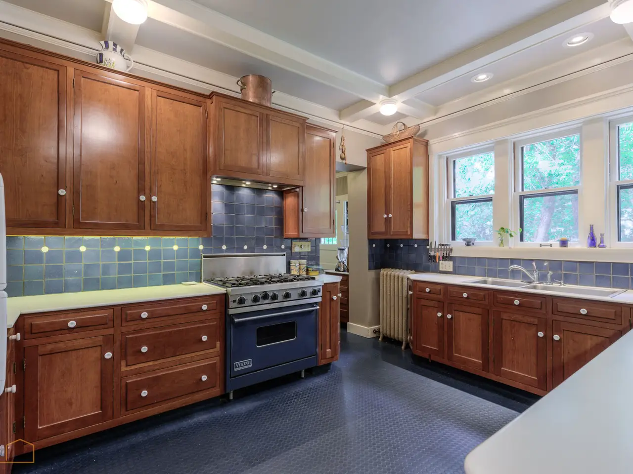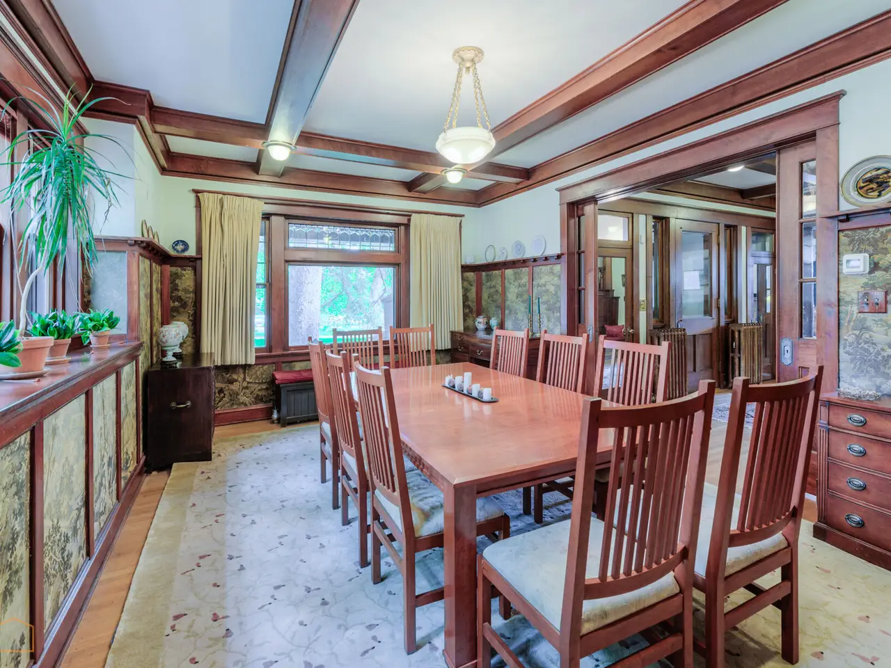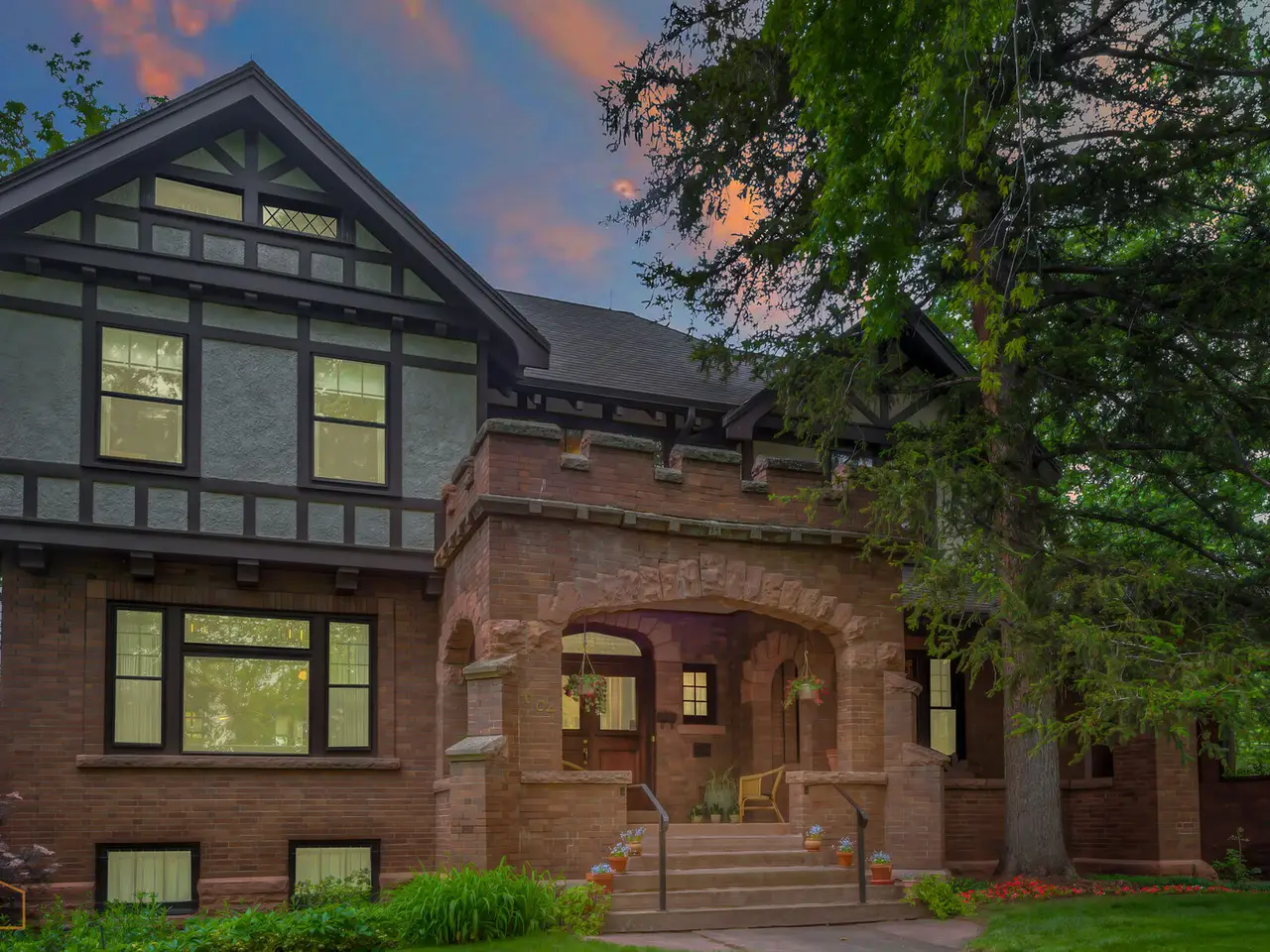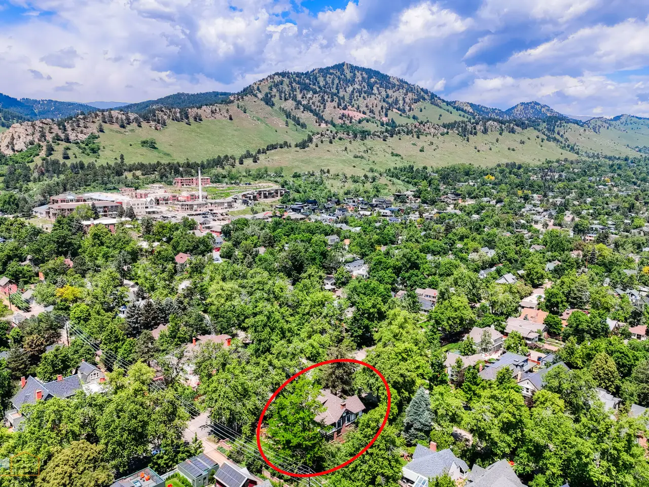One of the most Iconic Homes on Mapleton Hill, the Eastman Reid Collins Home is an historic treasure on a rare 13,802 square foot corner lot. The stunning Tudor Revival style residence has been meticulously maintained by the same owners for 50 years. Now, this classic style home is ready for its next chapter. The appeal of the property is dramatic from the street, highlighted by the timeless brick, stone and stucco exterior details. A spacious covered front entry and porch welcome you to the home and connect to the porte cochere, perfect for arriving guests. Enter into the foyer and you'll immediately feel the warmth and charm of the perfectly designed and preserved woodworking. Both the spacious living and dining rooms have beautiful beamed ceilings, beveled glass, classic original lighting and built-in cabinetry. The living room opens to a delightful sunroom overlooking the back patio and yard. The dining room, with vintage tapestries and sideboard/serving area flows into the kitchen which has been remodeled with custom cherry cabinetry. A breakfast room is next to the kitchen. Upstairs, the central hallway accesses the 5 bedrooms and an upper level sunroom. The layout of the generous size bedrooms allows flexibly for new owner to use as they wish. The primary bedroom opens through french doors to a library/study with built in bookcases and many windows. The hallway connects to a back deck which can easily be enhanced to enjoy the views of the Flatirons. The large attic could be finished if additional space is needed. The lower level of the home is filled with light and includes a cozy family room with fireplace, 587 bottle capacity wine cellar, 3/4 bath and laundry. Outside, the expansive yard and gardens wrap around the home, encircled by a sandstone and brick wall making the entire area secluded and peaceful. In the spring, the many flowering plants and fruit trees come alive and make the yard and private patio a special place to enjoy this unique setting.