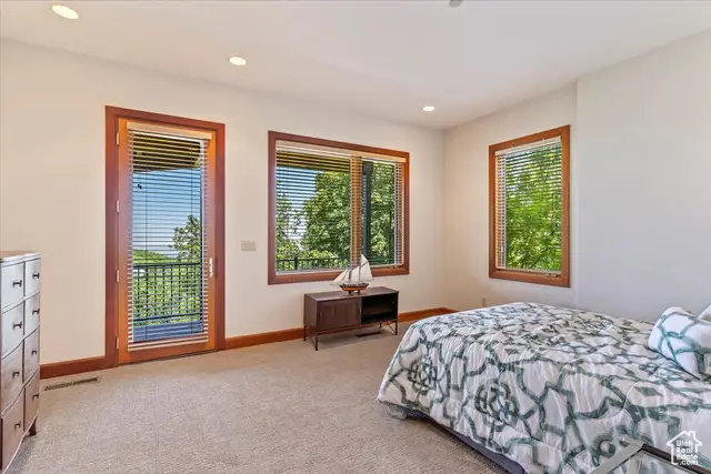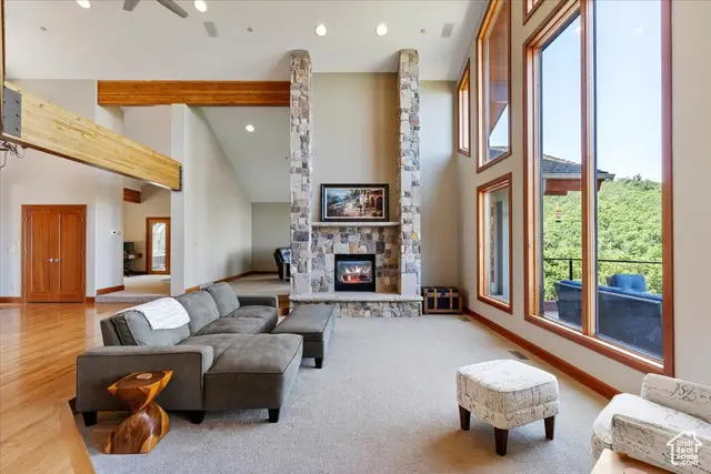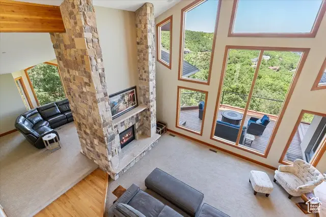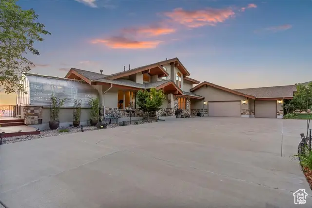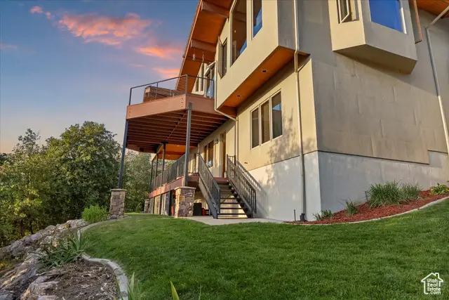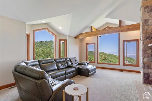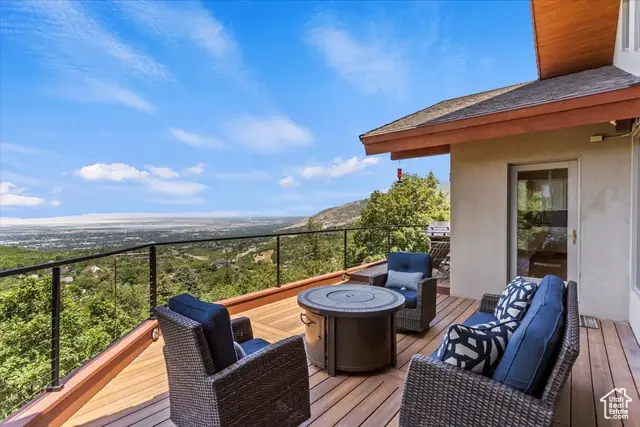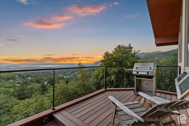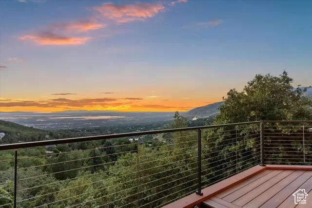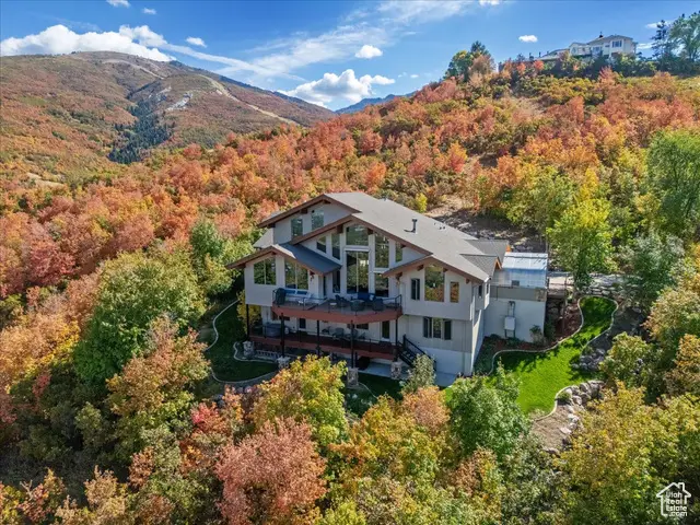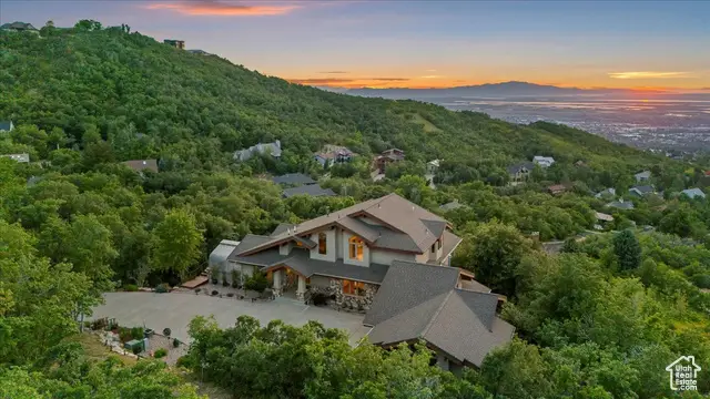 Welcome to what we affectionately refer to as Sunset Estates - a private sanctuary nestled on 6.13 wooded acres at the end of a quiet lane, just literal steps away from the trails of Mueller Park. This exceptional custom home offers unmatched serenity, breathtaking panoramic views of the valley and Great Salt Lake, and a level of privacy rarely found in Davis County. Designed to impress, the home features soaring windows that flood the living spaces with natural light and frame the incredible vistas. The gourmet kitchen has been beautifully updated with granite countertops, an expansive workspace, and top-tier appliances including WOLF double ovens, gas cooktop, Sub-Zero refrigerator, Bosch dishwasher, and a warming drawer. A large walk-in pantry and an open-concept design make it perfect for both everyday living and entertaining. The main floor offers a formal dining room, spacious office, mudroom, and a generous laundry room. The grand family room centers around a stunning floor-to-ceiling gas fireplace, creating a cozy yet elegant atmosphere. The entire top floor is dedicated to the luxurious primary suite-a true retreat with sweeping sunset views, a large walk-in closet, and a spa-like bath featuring a new soaking tub, double vanity, and dual-head shower. All of the bathrooms throughout the home have been thoughtfully updated with high-end finishes and modern style. Downstairs features 10-foot ceilings, a theater room with included equipment, a secure vault room, and three spacious bedrooms-two with walk-out access to a newly rebuilt upper deck that showcases even more of those stunning views. Additional highlights include a retractable-roof greenhouse, a comprehensive fire suppression system, updated HVAC systems, mature landscaping and ample space for outdoor enjoyment or future expansion. This is a rare opportunity to own a truly secluded estate in one of Davis County's most picturesque settings. Homes like this don't come along often-schedule your private showing today.